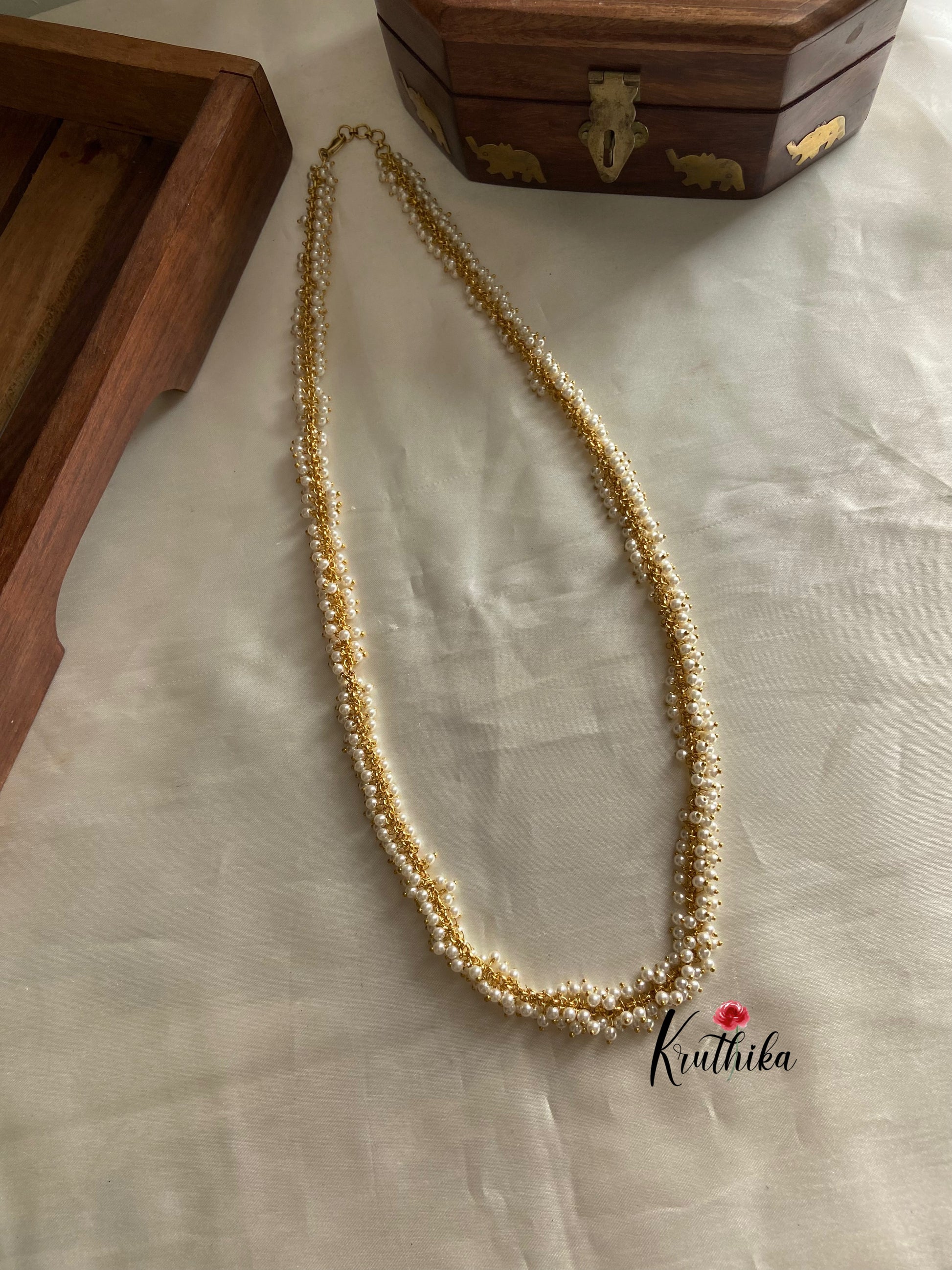 Enhance your style with our stunning Cluster Pearls chain (24 inches ), paired perfectly with matching earrings. Crafted with high-quality stones & beads, this set combines timeless elegance with a modern touch. Ideal for special occasions or adding a touch of glamour to your look.
