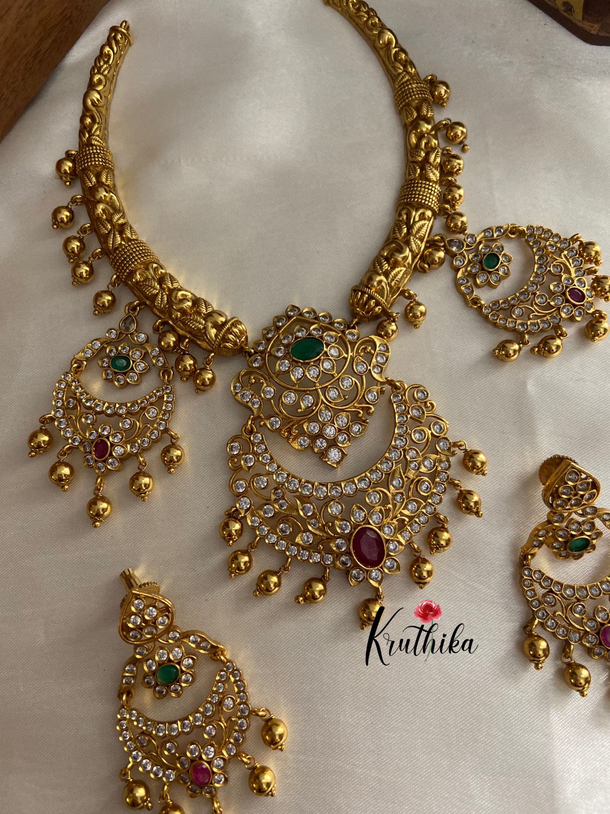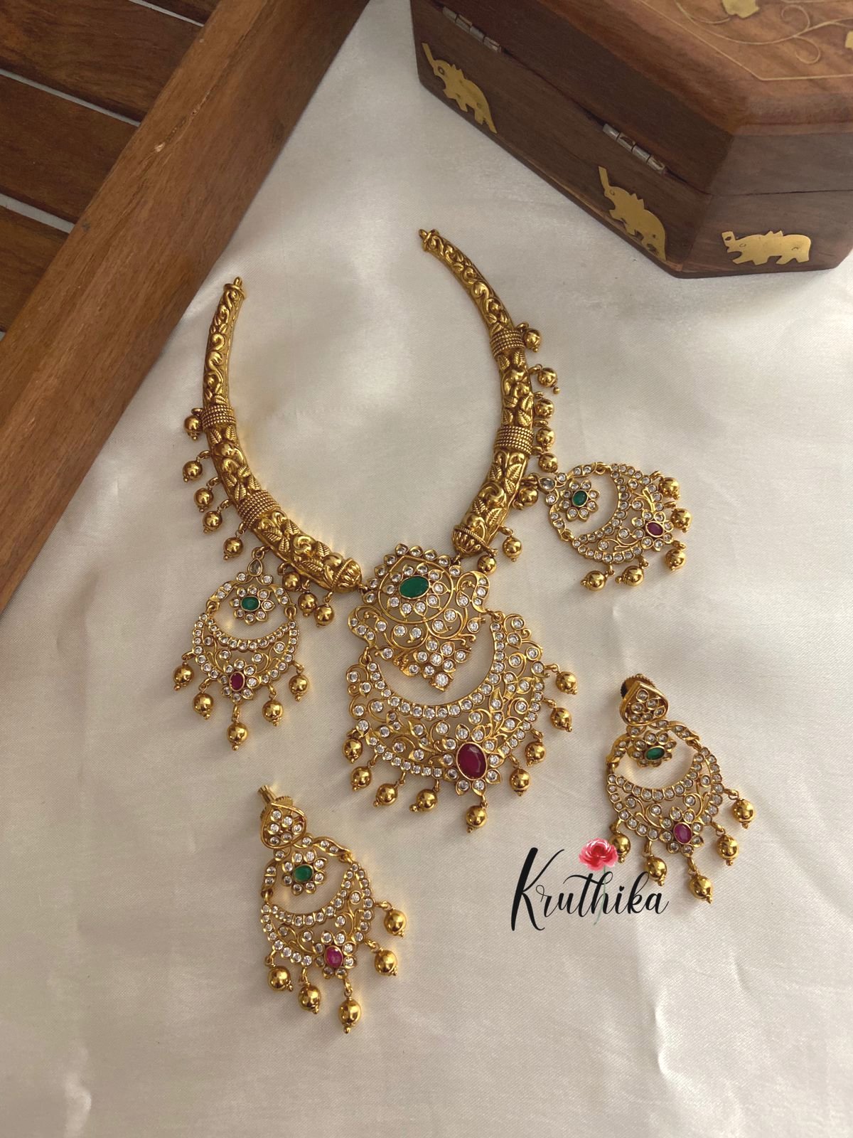 Enhance your style with our stunning Antique finish AD pipe necklace, paired perfectly with matching earrings. Crafted with high-quality stones & beads, this set combines timeless elegance with a modern touch. Ideal for special occasions or adding a touch of glamour to your look.