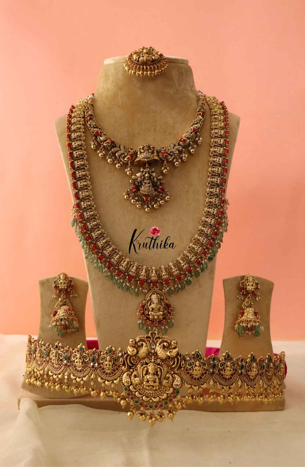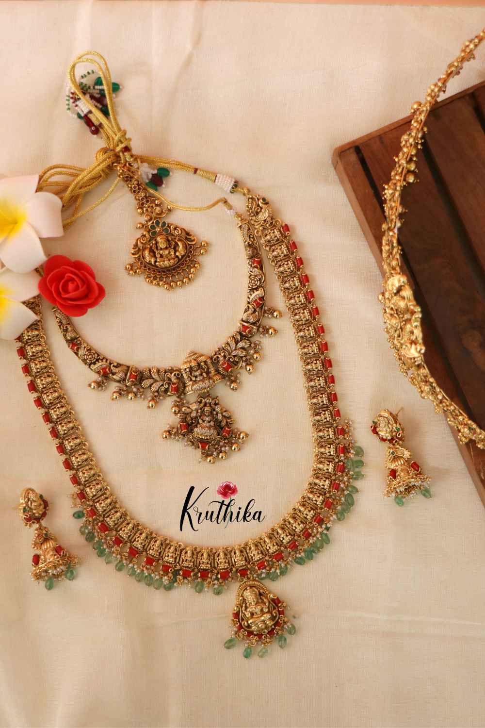 Antique Lakshmi Necklace with Coral Beads Haaram BS013