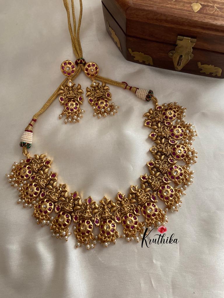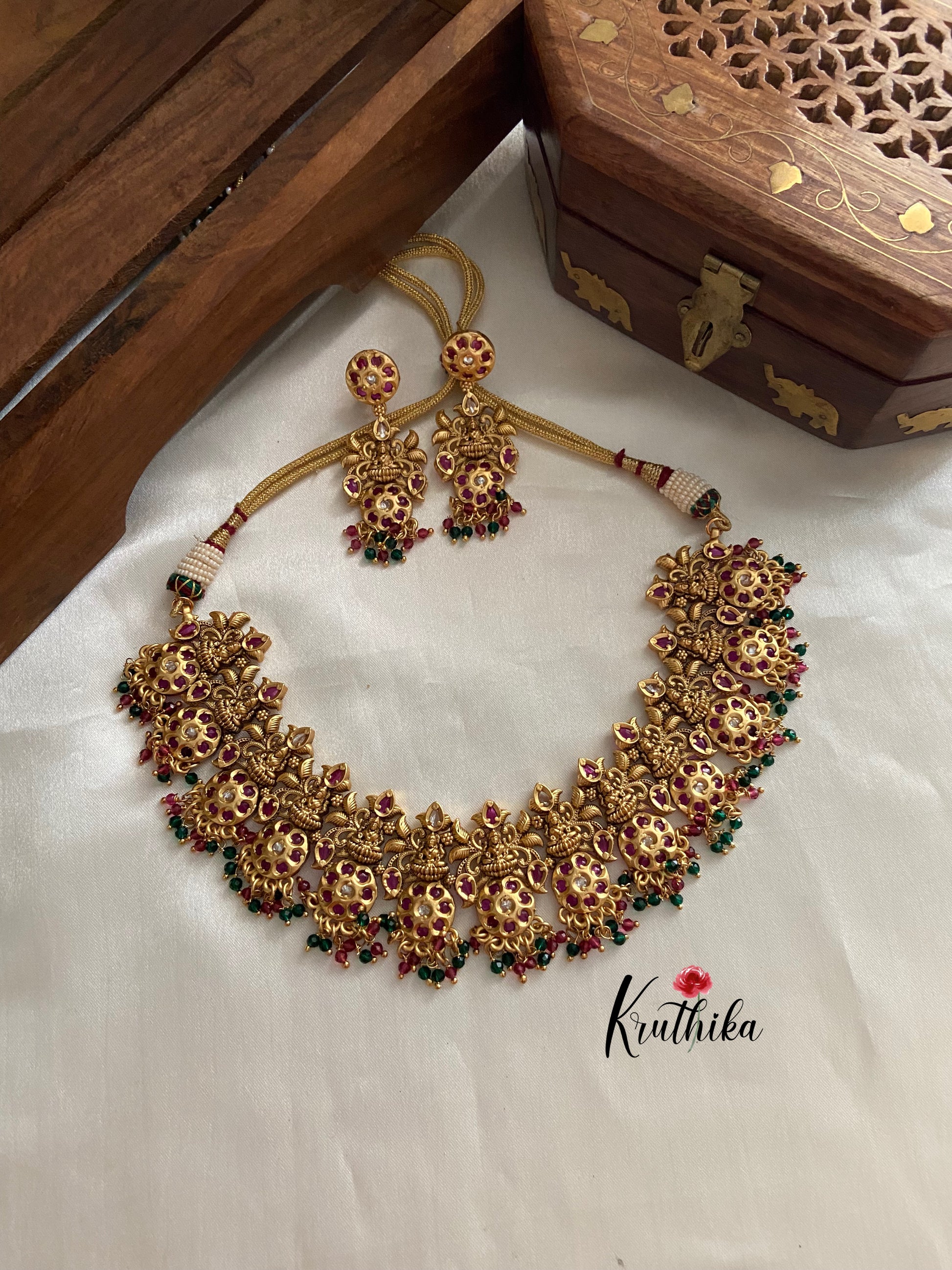 Enhance your style with our stunning Antique real kemp Lakshmi choker, paired perfectly