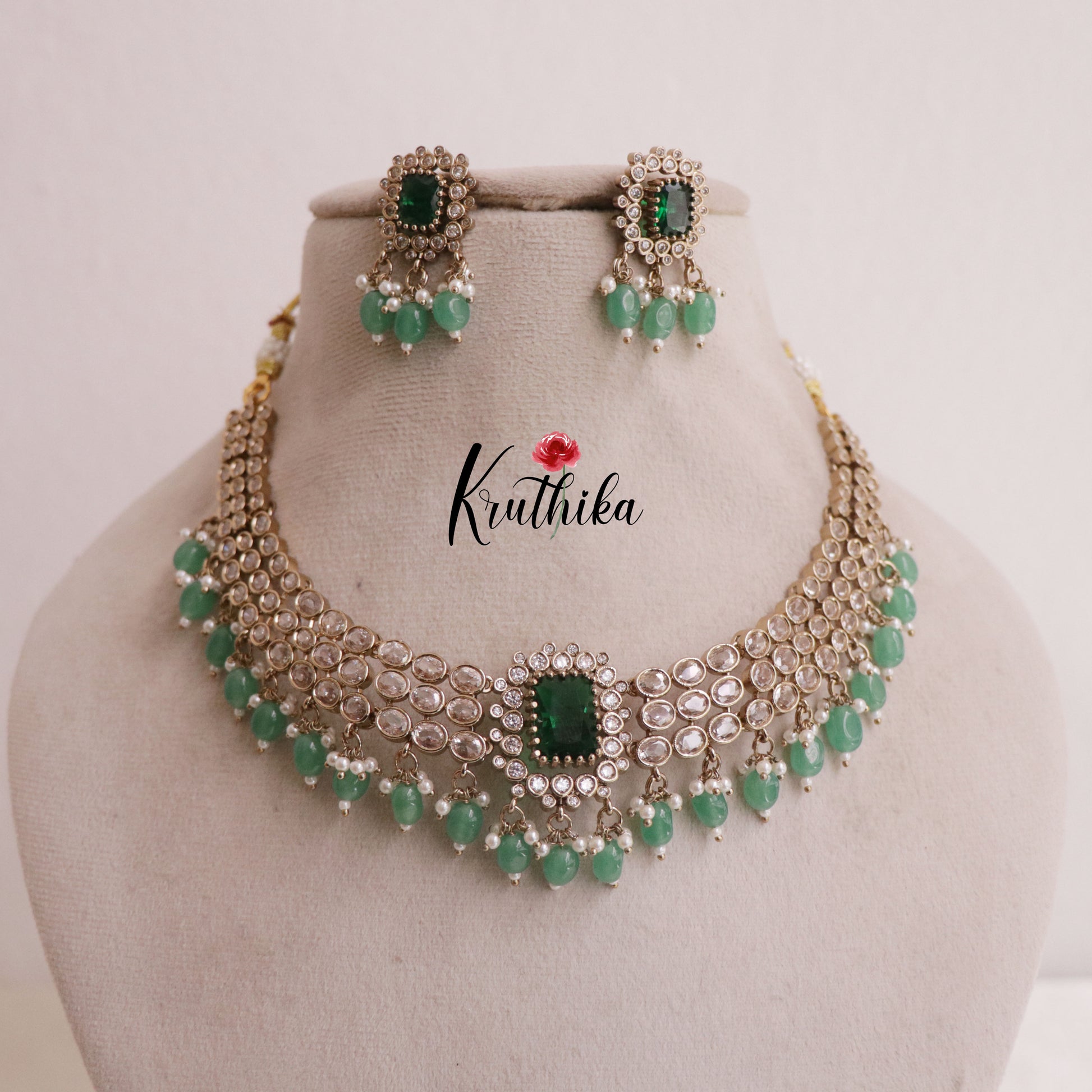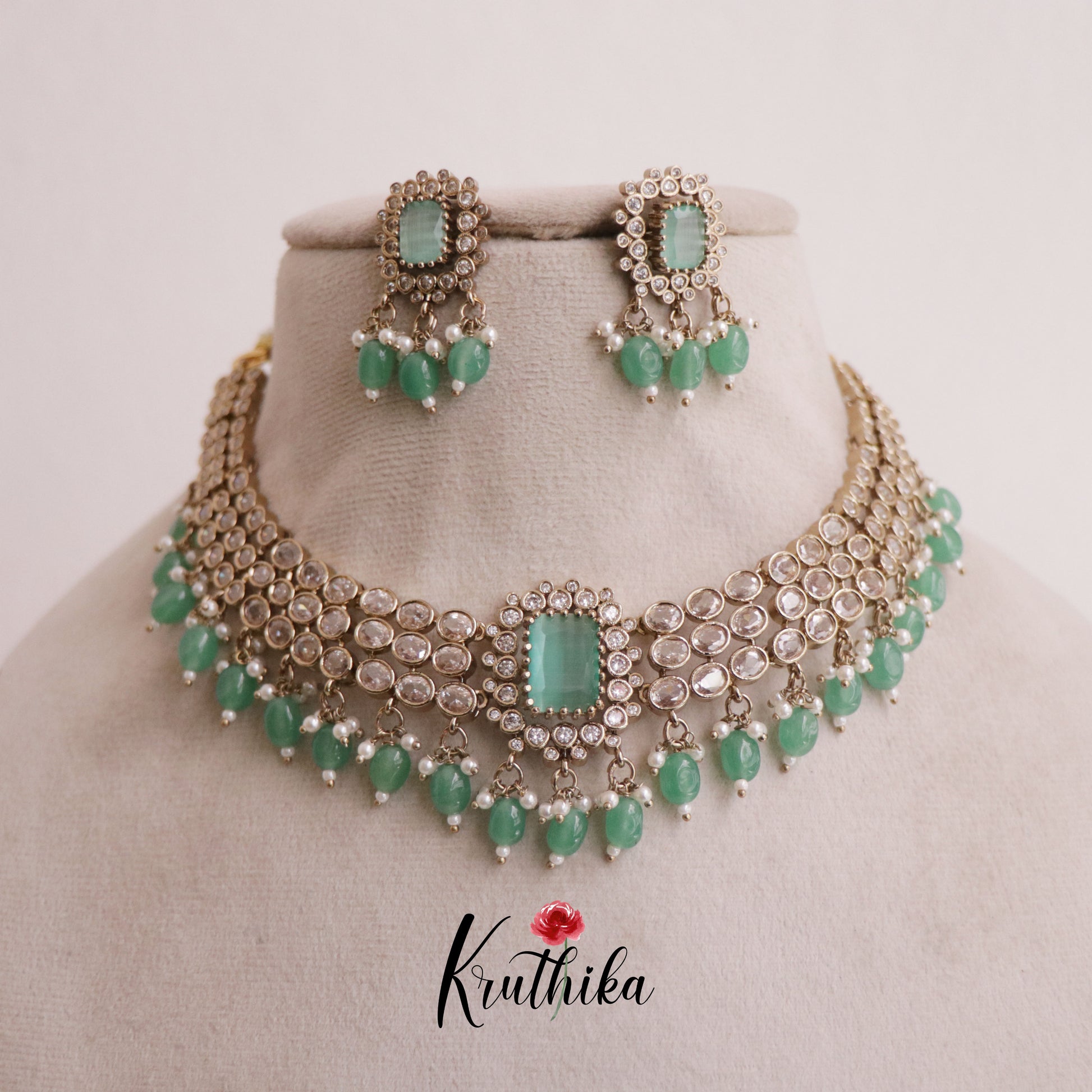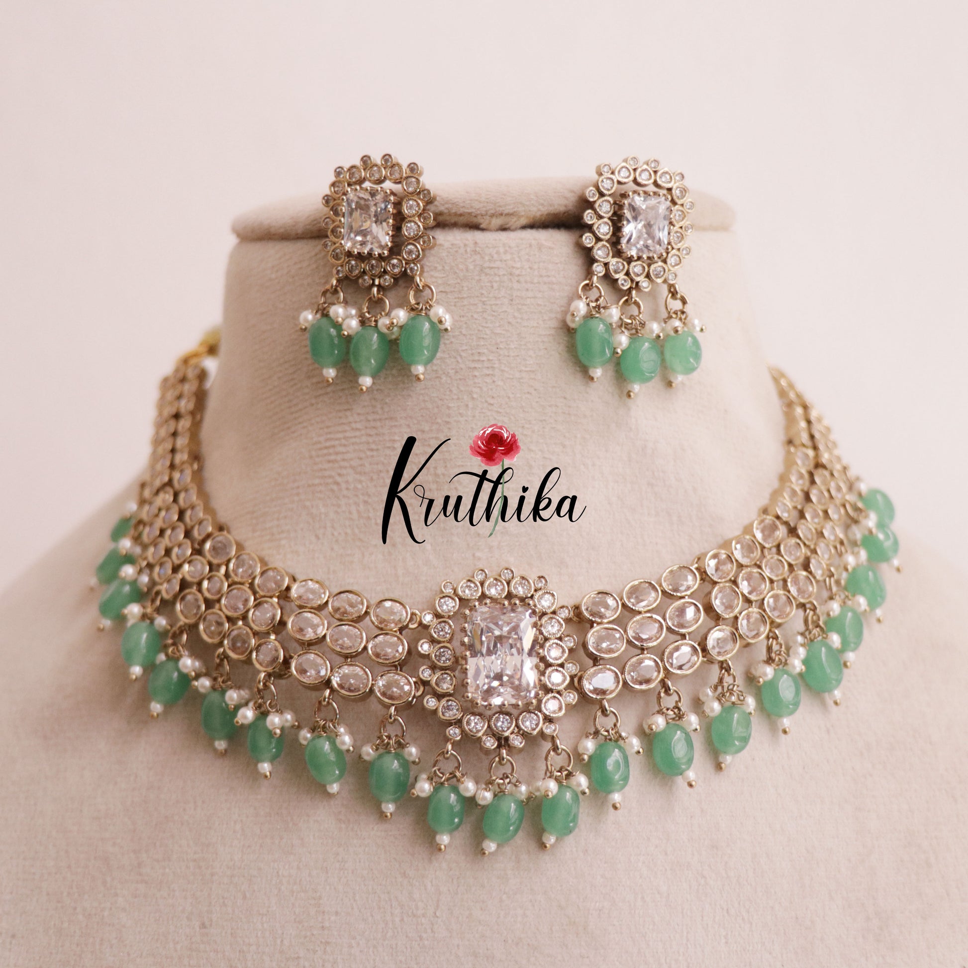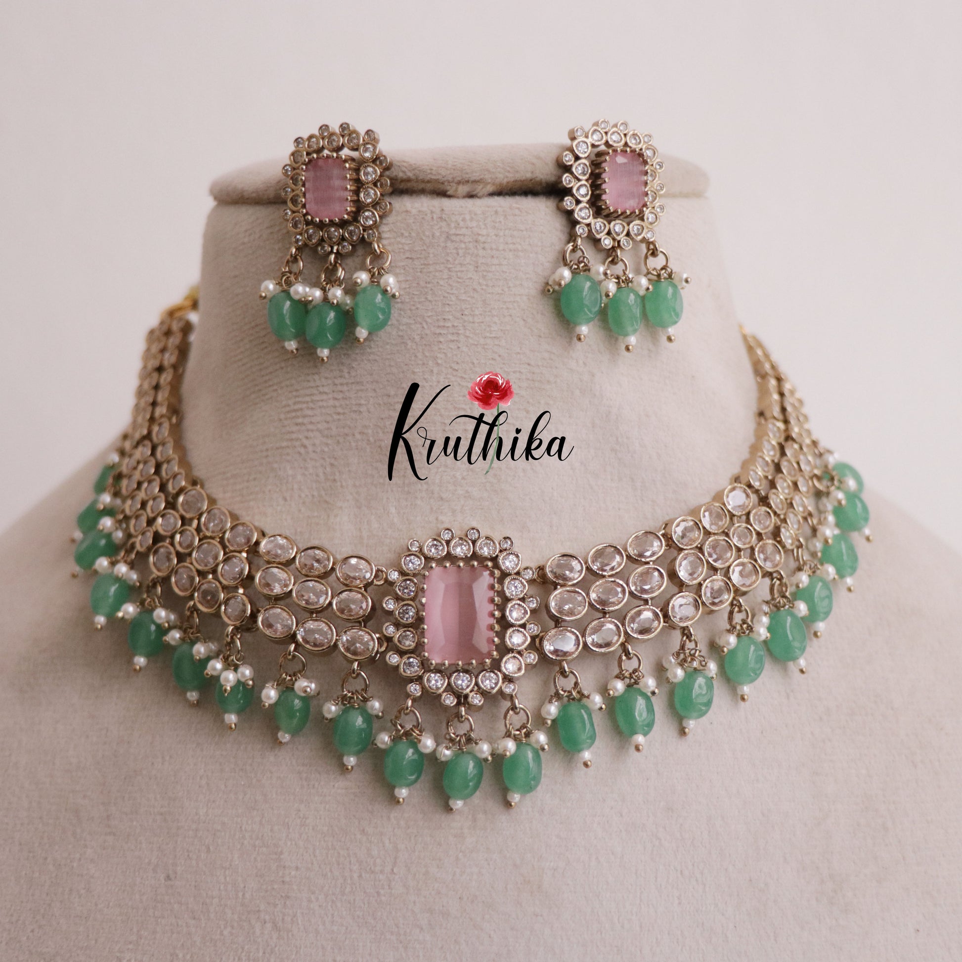 Enhance your style with our stunning, Beautiful AD/Victorian Changeable Stones Necklace, paired perfectly with matching earrings. Crafted with high-quality stones & beads, this set combines timeless elegance with a modern touch. Ideal for special occasions or adding a touch of glamour to your look.