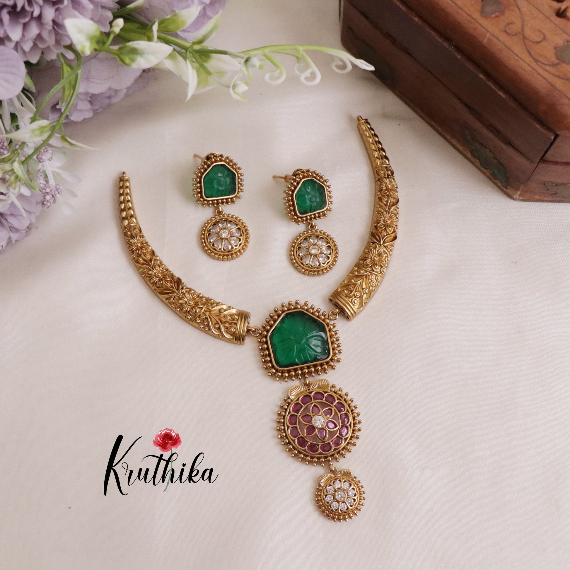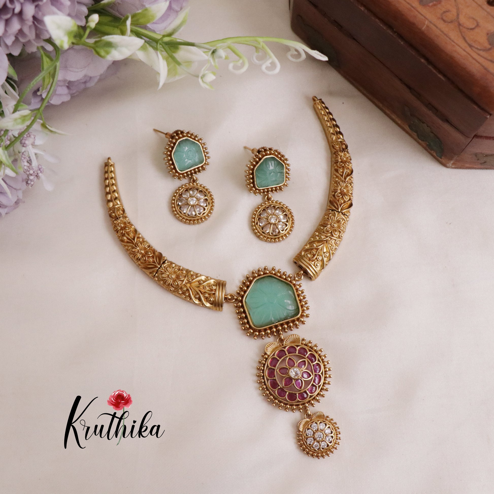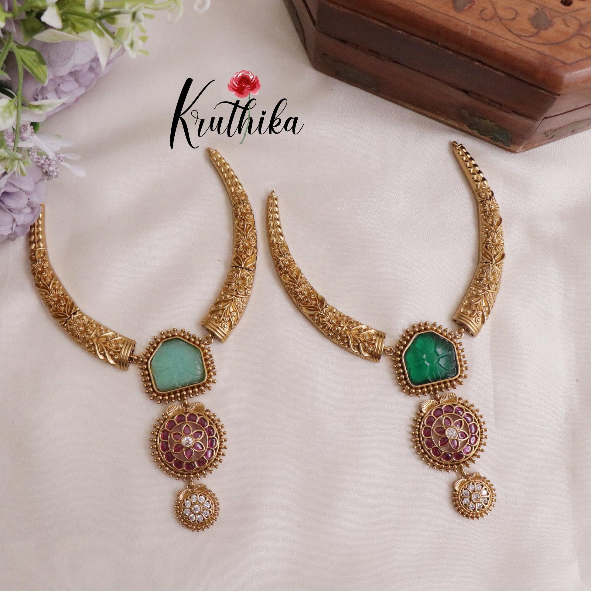 Beautiful AD Victorian Hasli Necklace Sets NC2019 (Available in 2 colours)