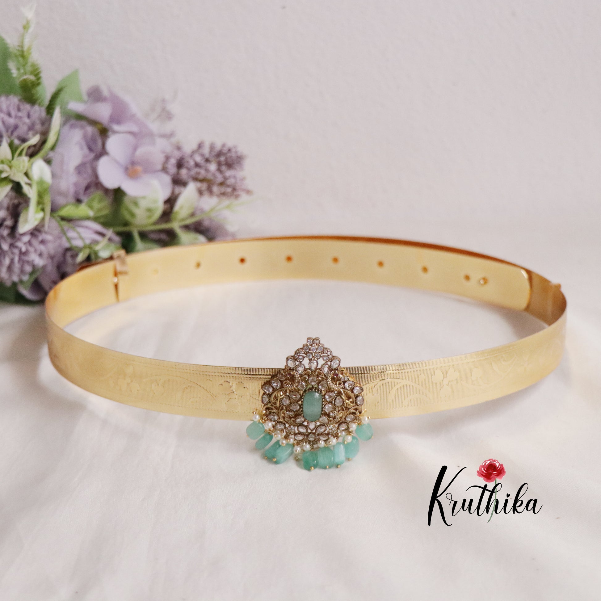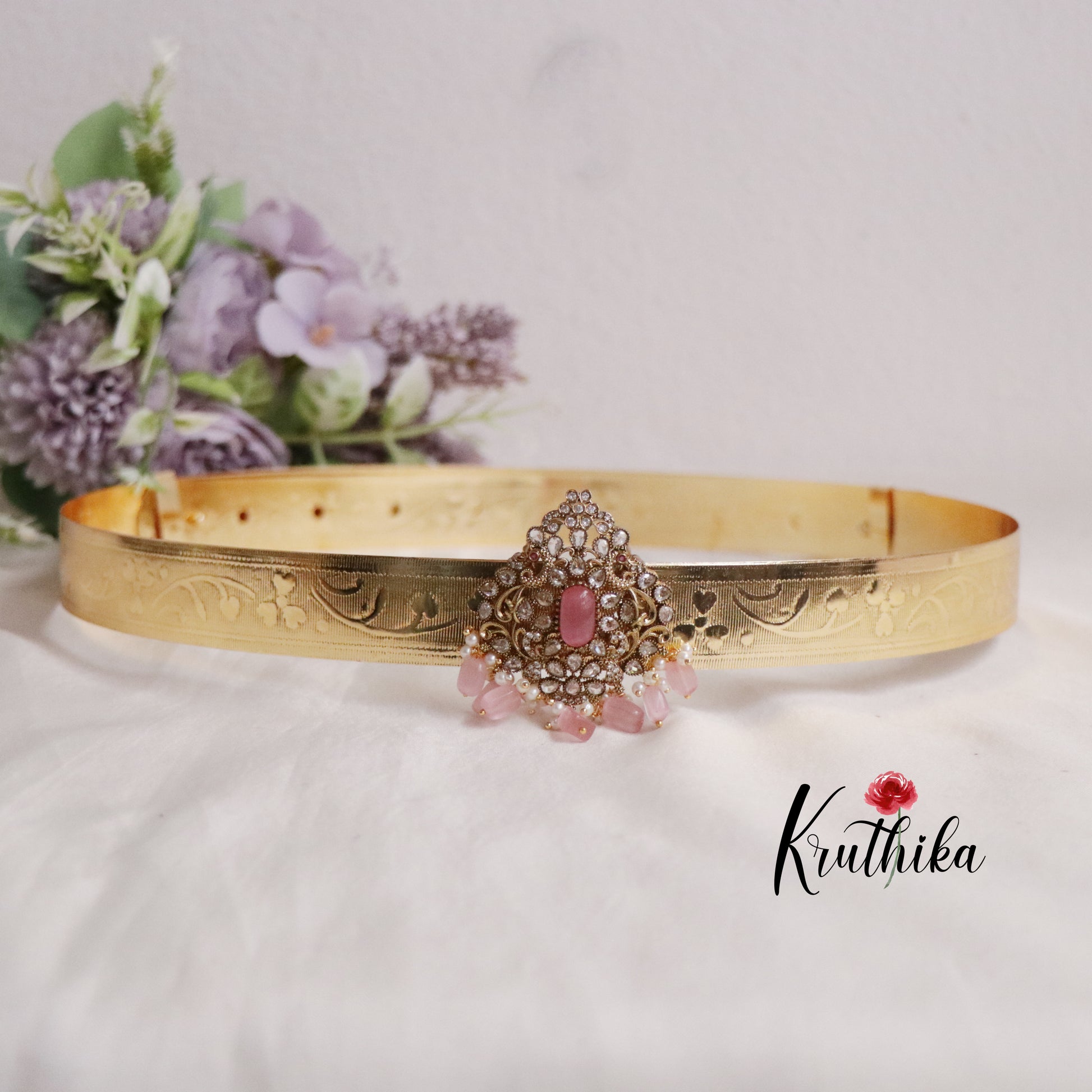 Elevate your traditional ensemble with the Beautiful AD/Victorian Peacock Light Weight Hip Belt expertly crafted to blend celestial motifs with timeless elegance. Adorned with sparkling cubic zirconia stones, this vaddanam radiates refined brilliance, enhancing your waistline with a delicate floral-inspired design. Available in two stunning colors, it offers versatile styling options to complement a variety of sarees and festive occasions. Perfect for those seeking sophisticated craftsmanship paired with dazzling glamour.