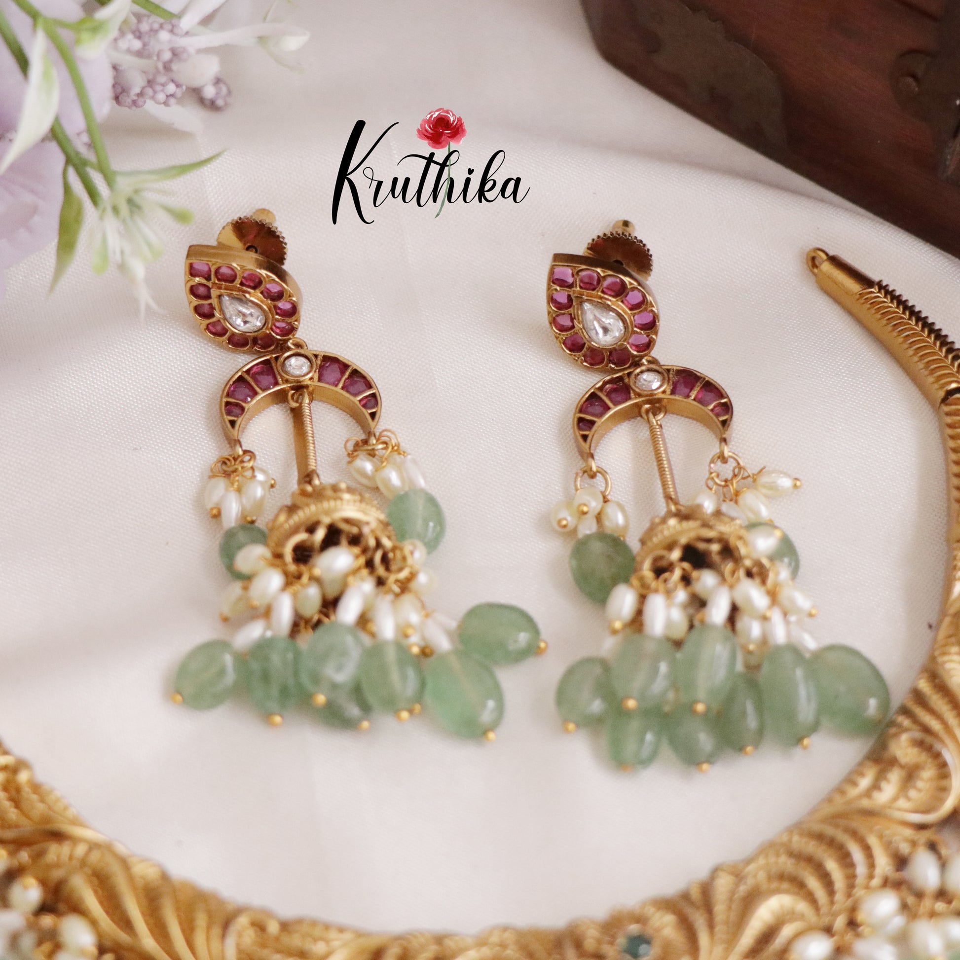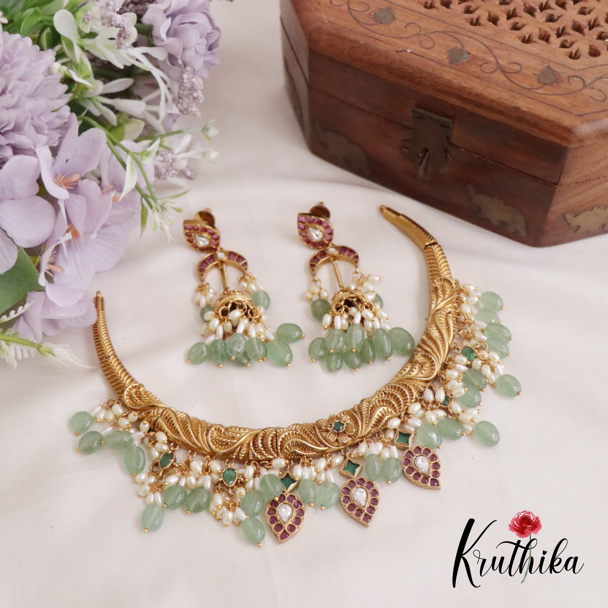 Enhance your style with our stunning, Elegant Bridal Peacock Jadau Necklace Set Crafted with high-quality stones & beads, this set combines timeless elegance with a modern touch. Ideal for special occasions or adding a touch of glamour to your look.
