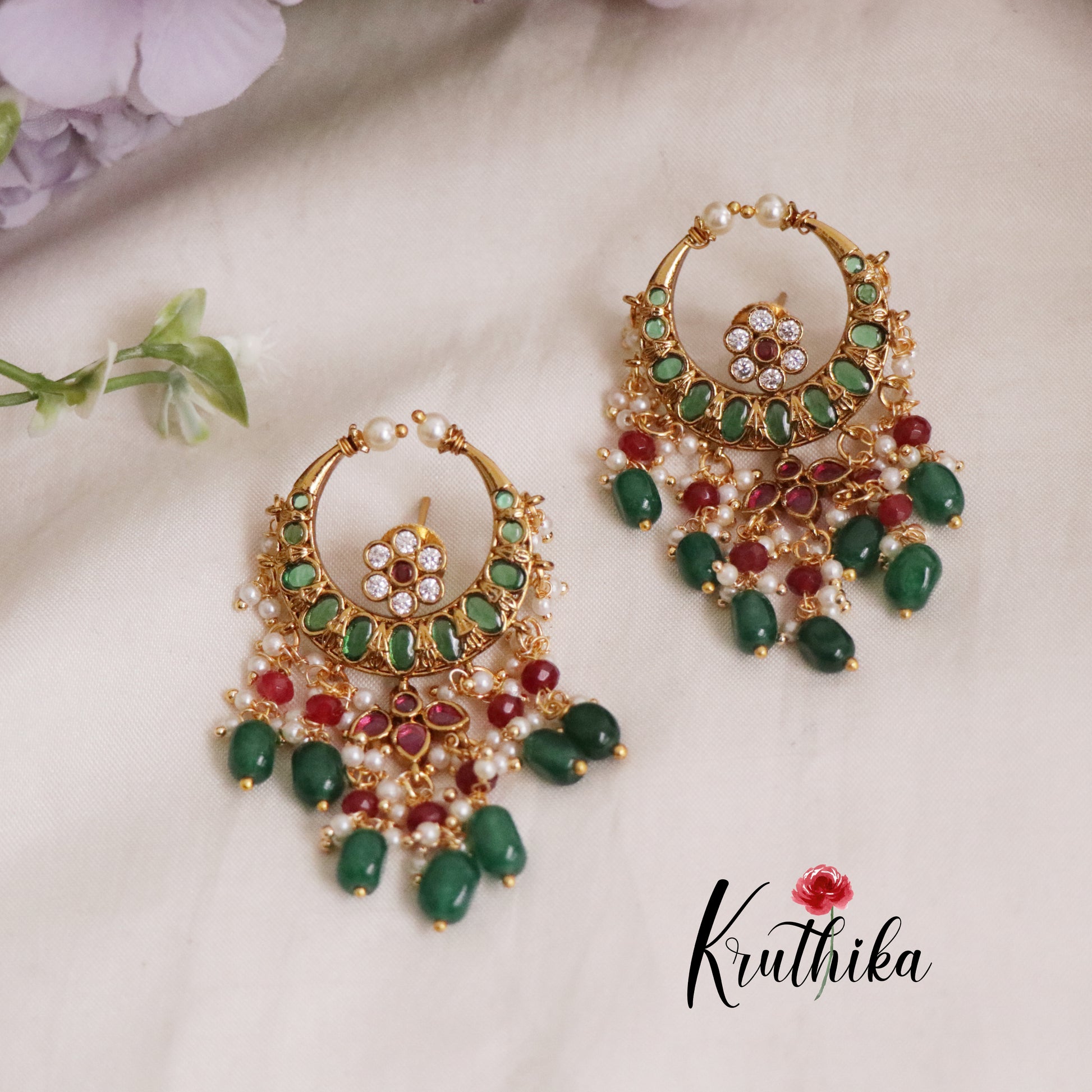 Elevate your ethnic ensemble with these exquisite AD Chand Bali earrings, a timeless piece that seamlessly blends traditional craftsmanship with contemporary elegance. Featuring lustrous AD stones set in a crescent moon design, these chandelier-style earrings are adorned with delicate bead drops that catch light beautifully with every movement. The intricate detailing and graceful silhouette make them ideal for festive occasions, weddings, or adding a touch of sophistication to everyday wear. Available in two stunning color options to complement your personal style. Perfect for those who appreciate authentic Indian jewelry design with refined aesthetics.