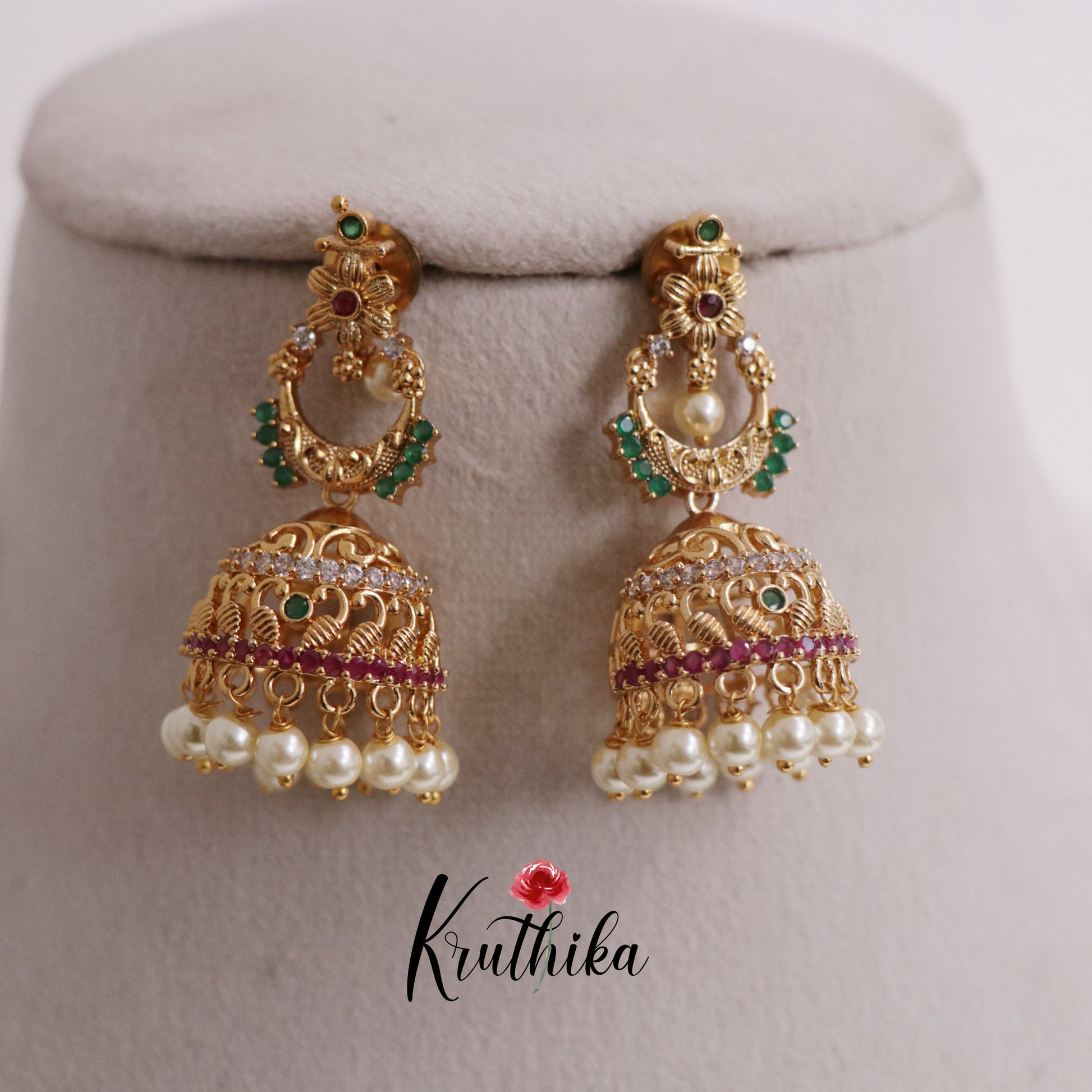 Beautiful CZ Multi Stone Pearls Jhumka E712
