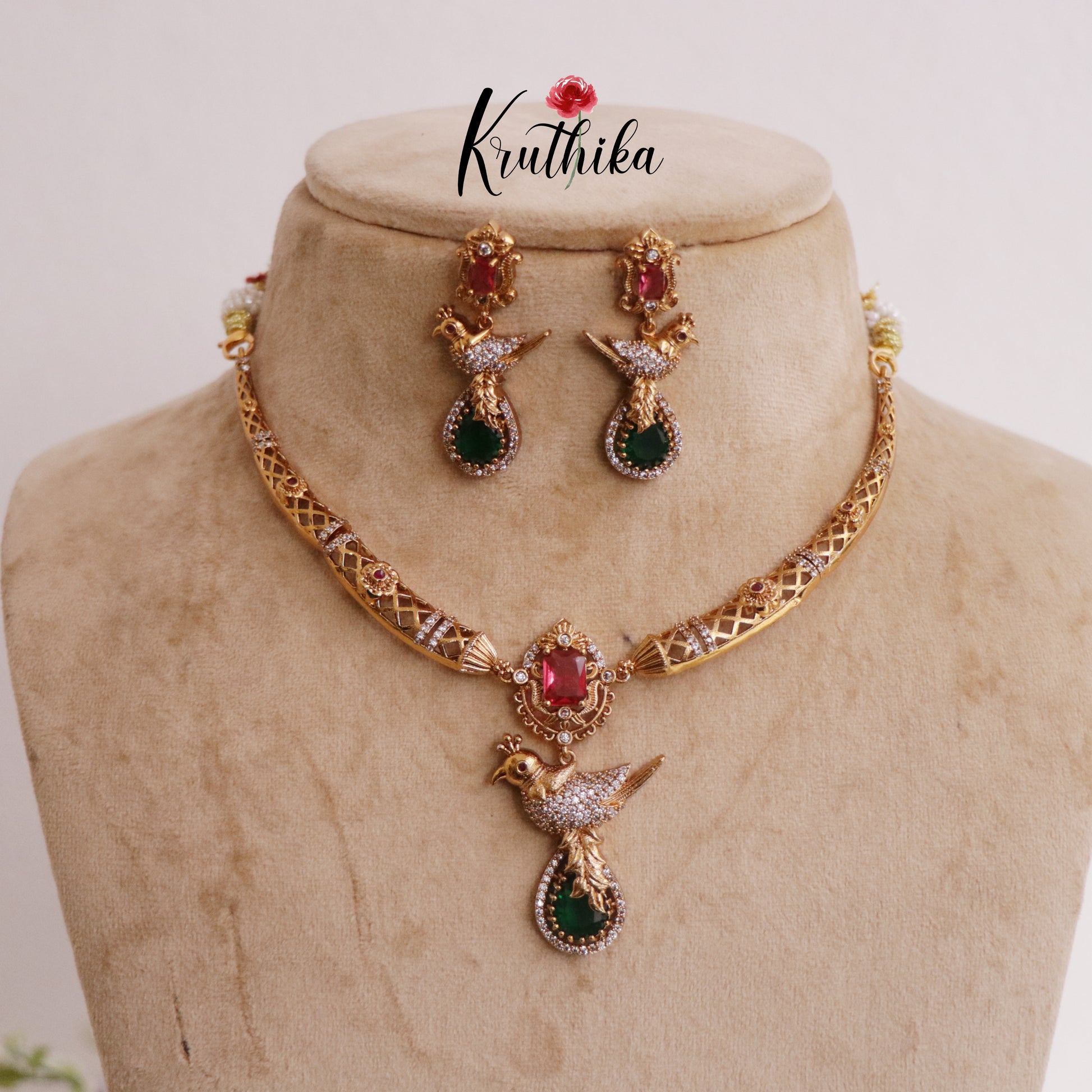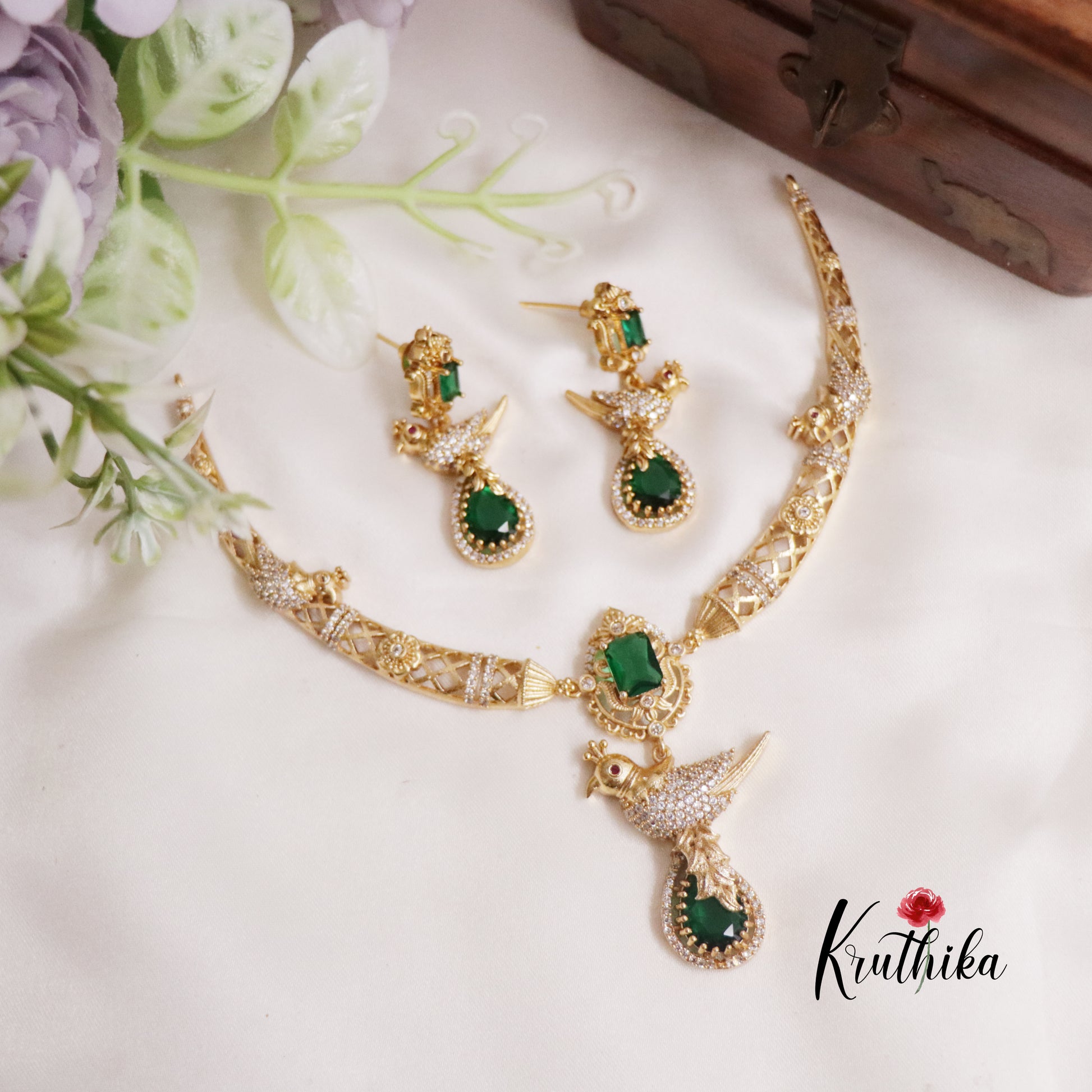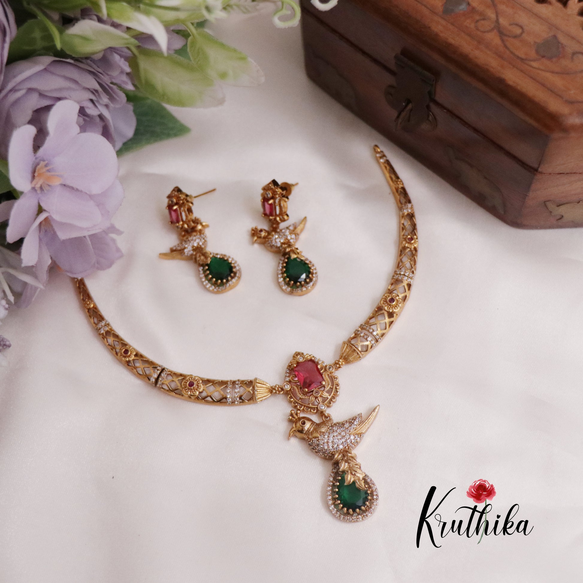 Enhance your style with our stunning Beautiful CZ Peacock Pendant Hasli Necklace Crafted with high-quality stones & beads, this set combines timeless elegance with a modern touch. Ideal for special occasions or adding a touch of glamour to your look.