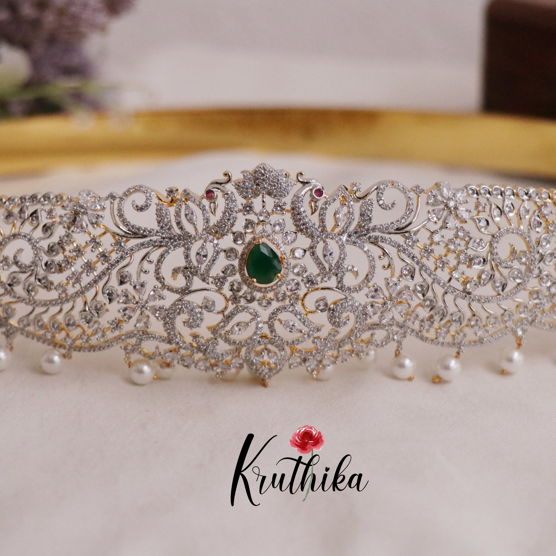 Elevate your jewelry collection with this exquisite peacock-inspired design featuring brilliant CZ stones that catch light beautifully. The innovative changeable stone mechanism allows you to customize your look, swapping between different gemstones to match any occasion or outfit. Delicate pearl drops add timeless elegance and sophistication, creating a striking contrast with the sparkling peacock motif. Perfect for festive celebrations, weddings, or everyday glamour, this piece combines traditional artistry with modern versatility. A must-have accessory for those who appreciate fine craftsmanship and dynamic style.