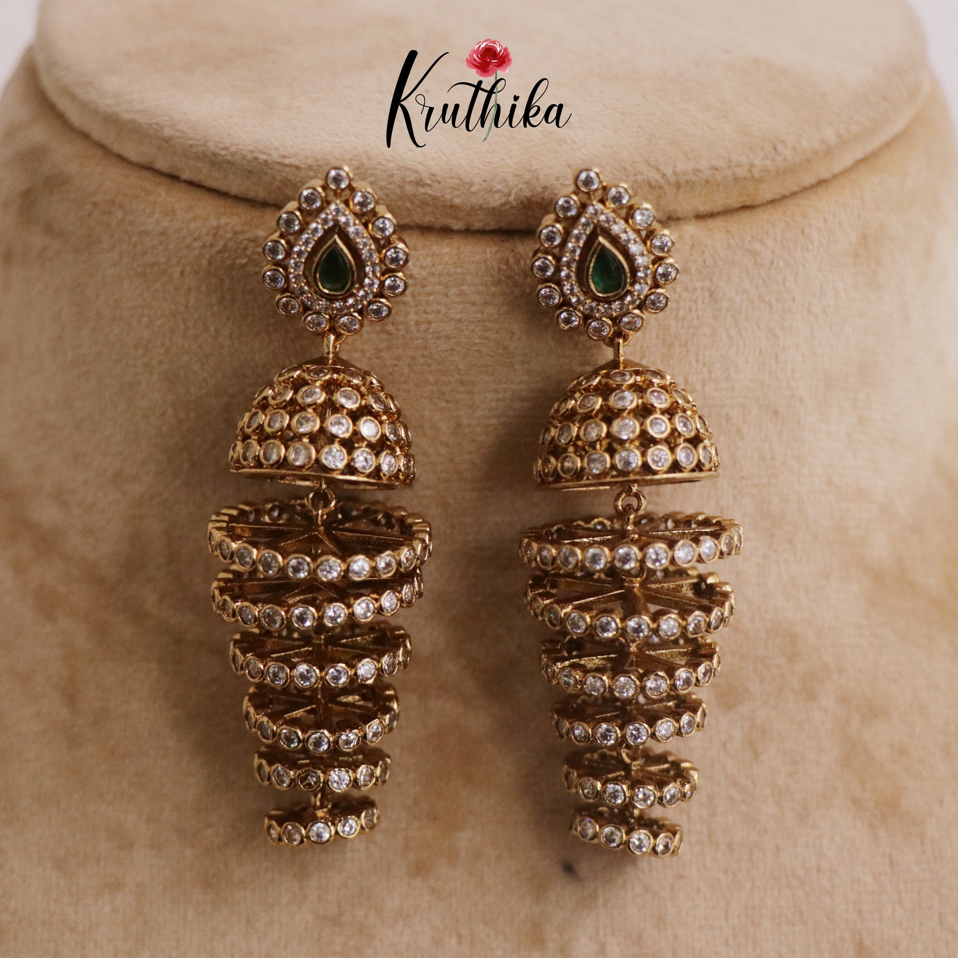 Beautiful CZ Sparkling Victorian Swirl Jhumka Earrings E678
