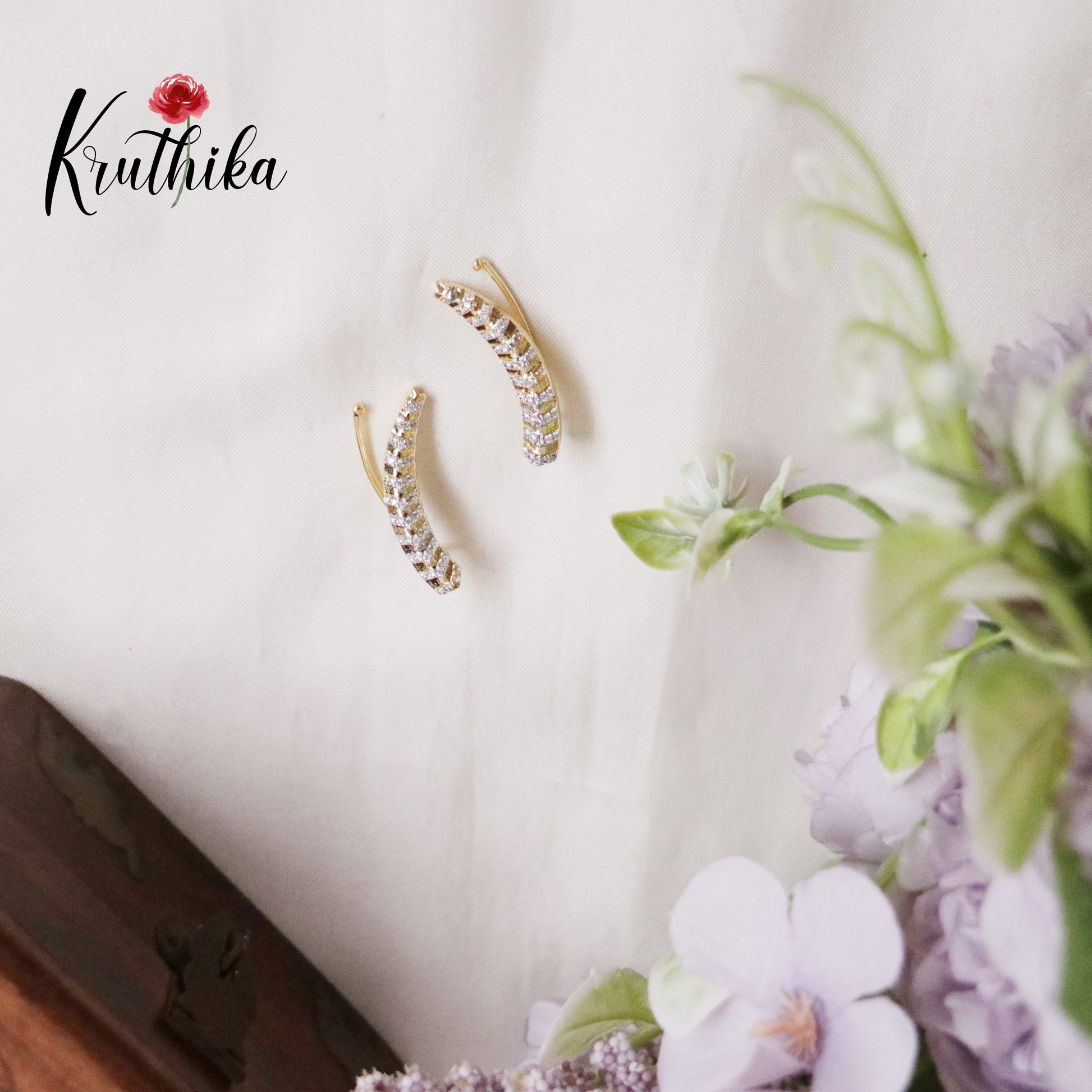 Elevate your ear styling with these exquisite dainty ear climbers, meticulously crafted with lustrous AD stones and a radiant gold finish. These versatile pieces gracefully hug the contour of your ear, creating a sophisticated, contemporary look that transitions seamlessly from day to evening wear. The lightweight design ensures all-day comfort, while the premium AD stone detailing catches light beautifully, adding sparkle without overwhelming delicate features. Perfect for those seeking refined, understated elegance that makes a subtle yet striking statement.