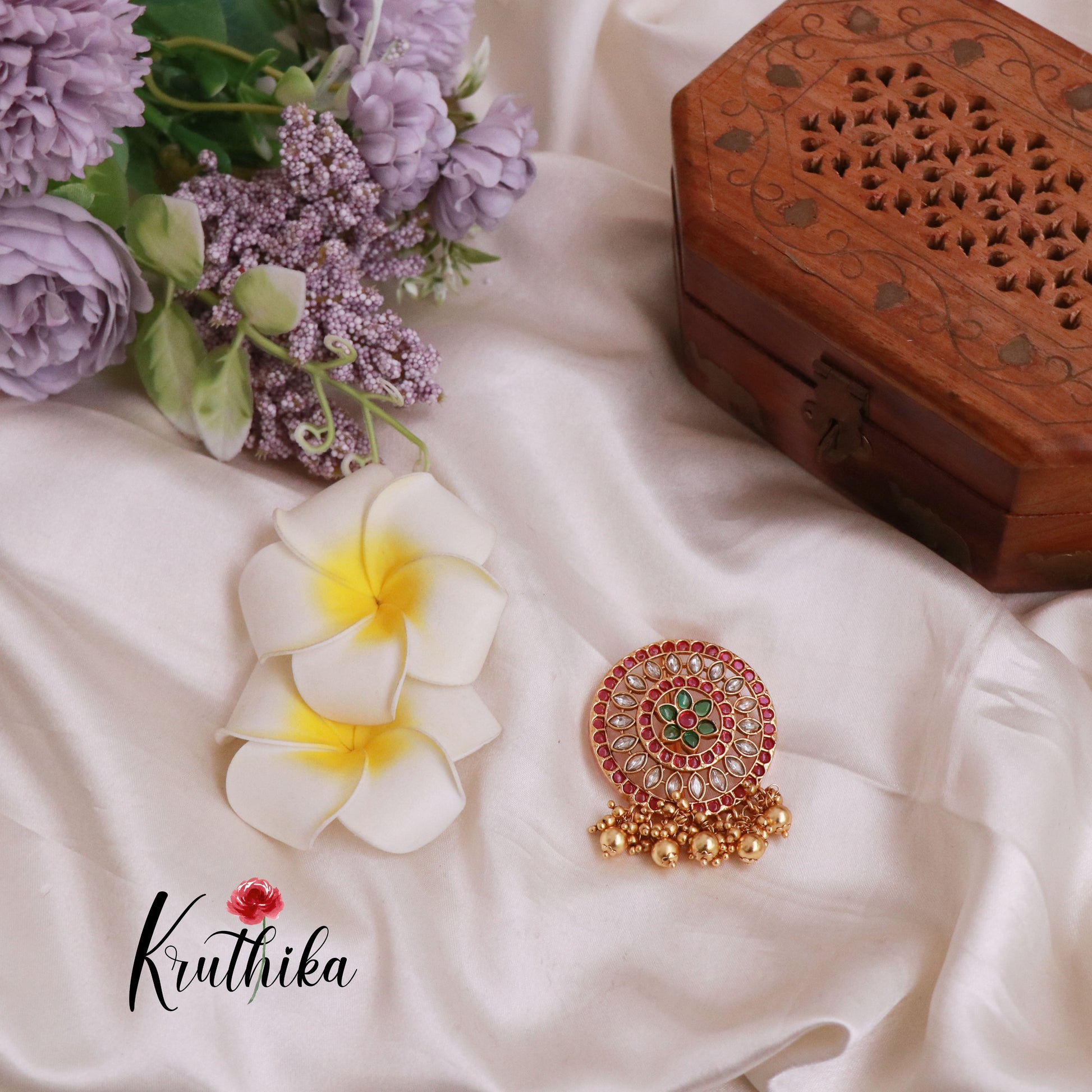 Beautiful Floral Multi Stone Jada Billa with Golden Beads J179