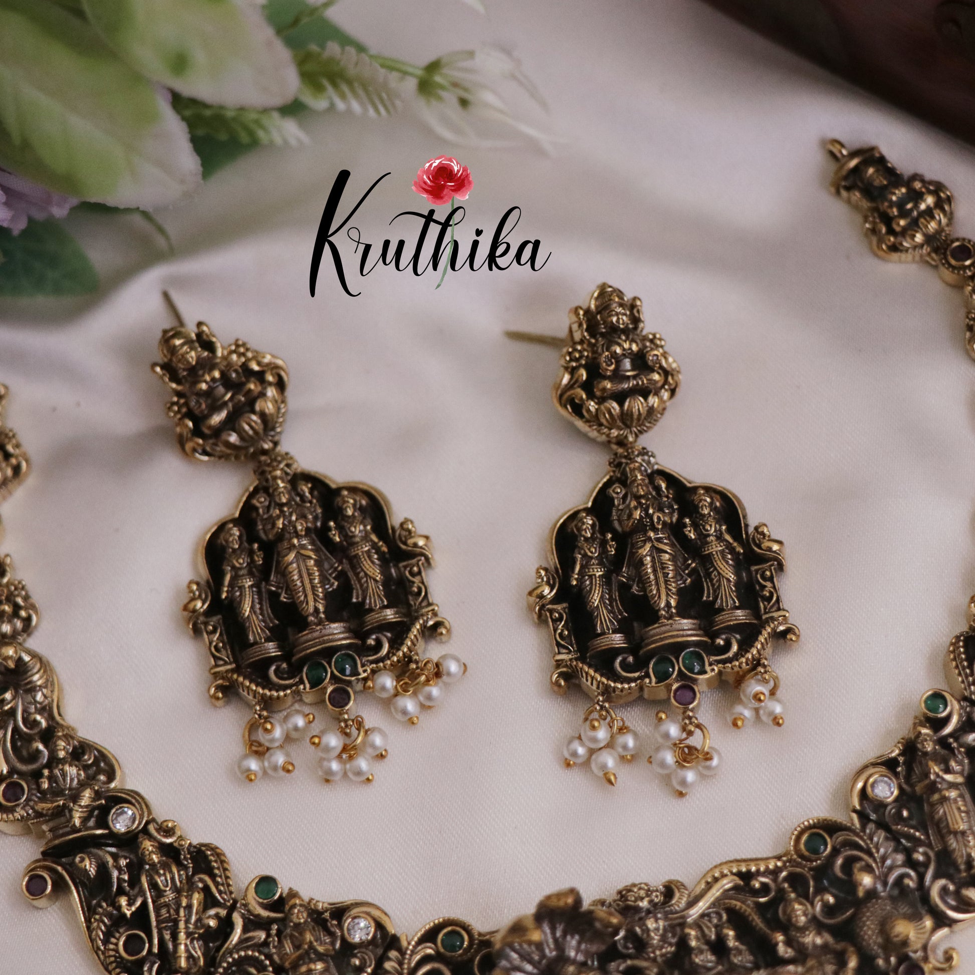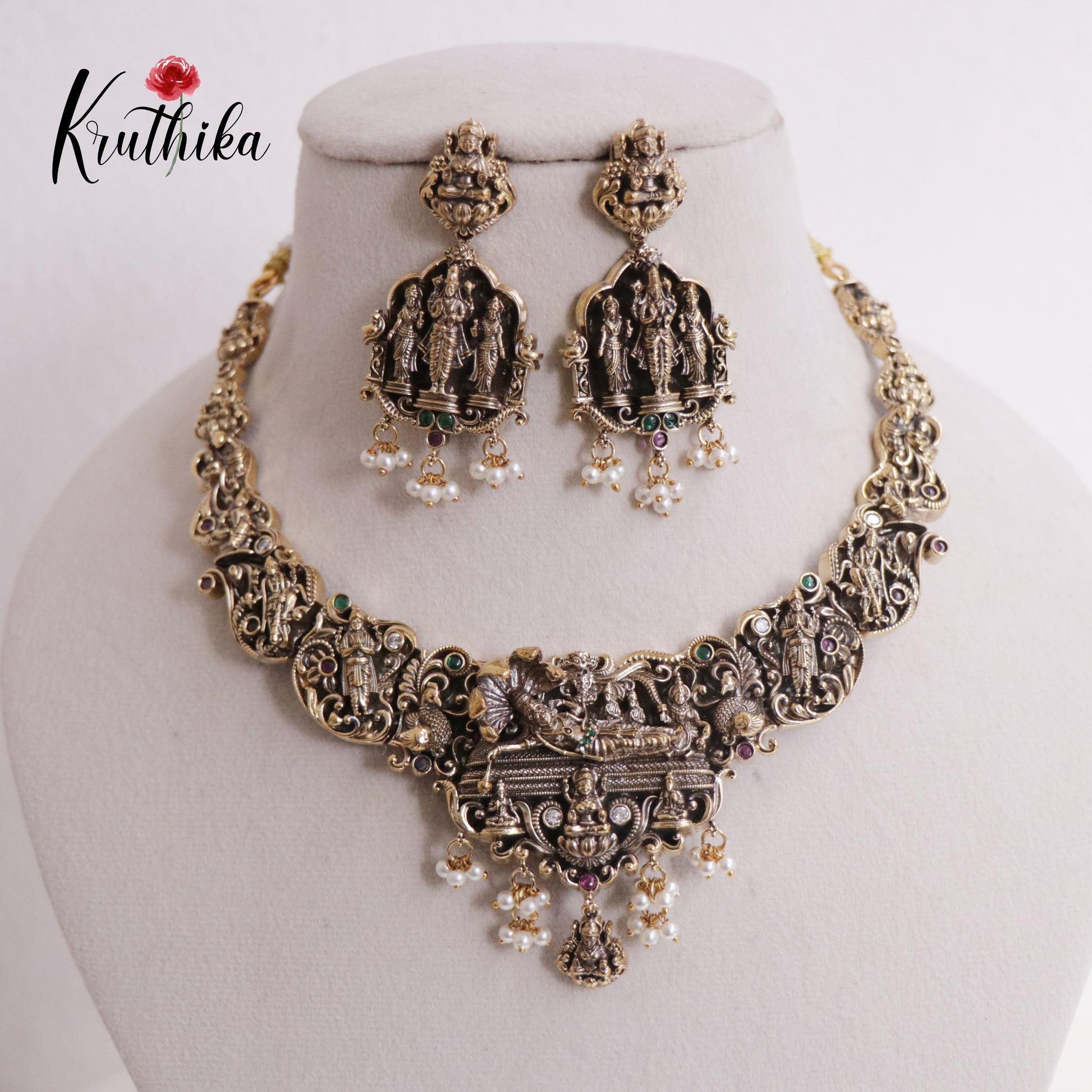 Enhance your style with our stunning Beautiful Antique Victorian Temple Anantha Sayana Vishnu Neckalce paired perfectly with matching earrings. Crafted with high-quality stones & beads, this set combines timeless elegance with a modern touch. Ideal for special occasions or adding a touch of glamour to your look.