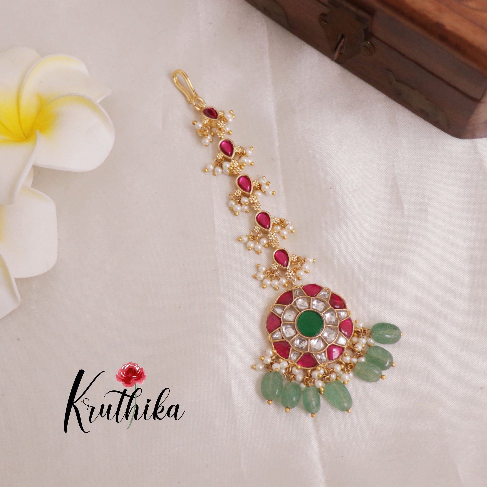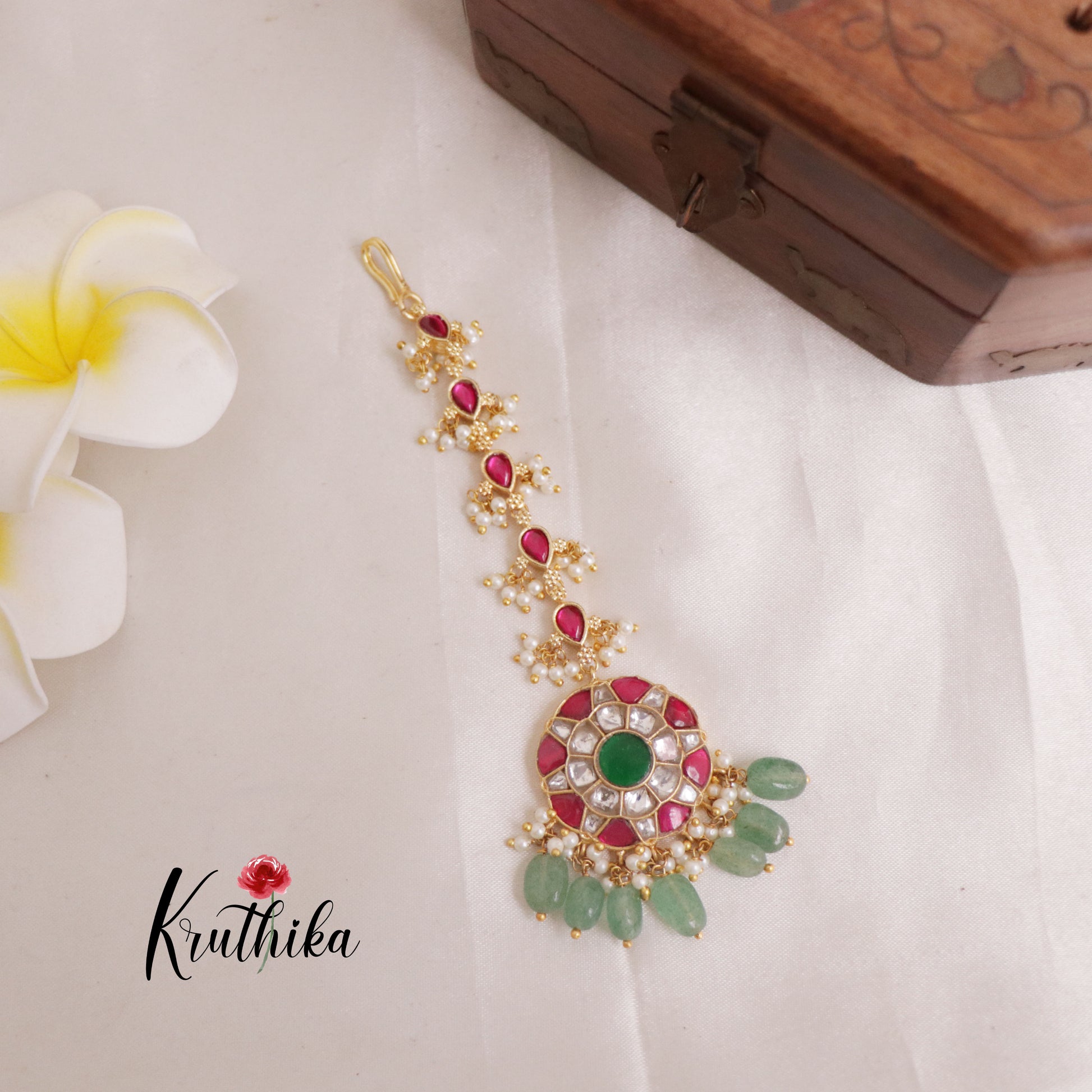 Enhance your style with our stunning, Beautiful Jadau Maang Tikka. Crafted with high-quality stones & beads, this set combines timeless elegance with a modern touch. Ideal for special occasions or adding a touch of glamour to your look.