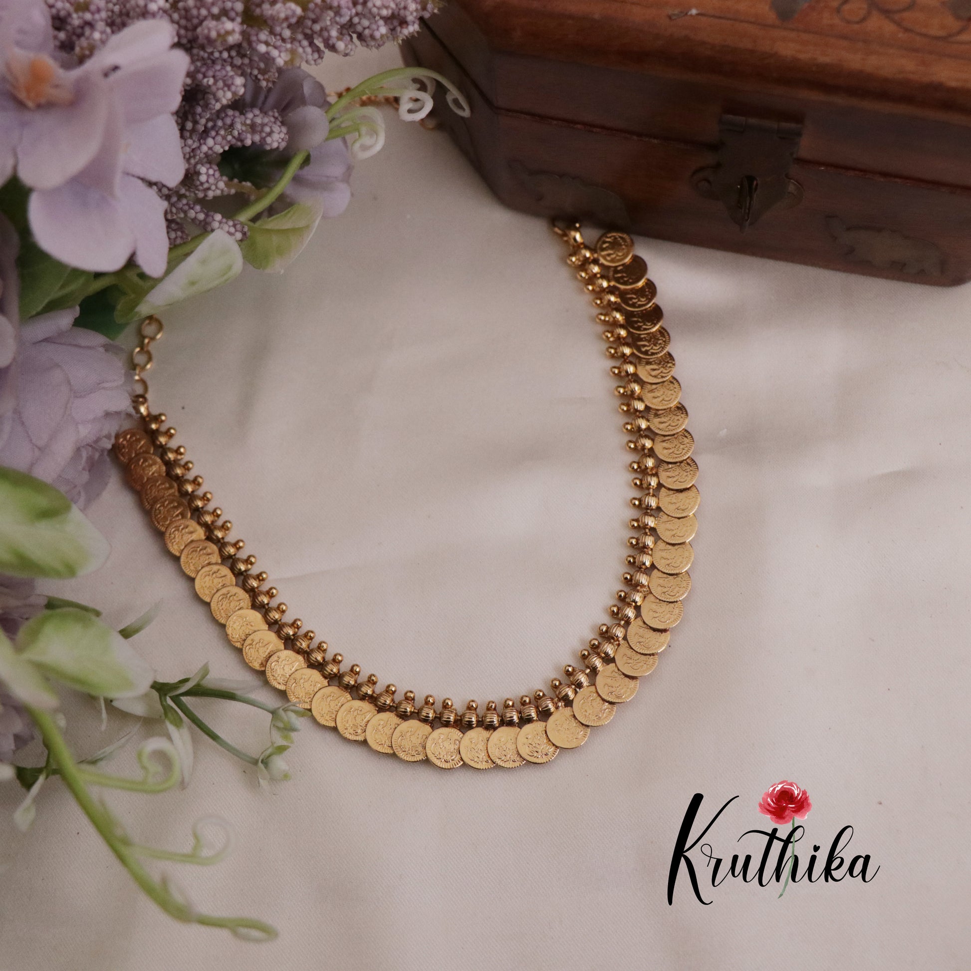 Enhance your style with our stunning Beautiful Kasu Mala Necklace Set with Beads Drops paired perfectly with matching earrings. Crafted with high-quality stones & beads, this set combines timeless elegance with a modern touch. Ideal for special occasions or adding a touch of glamour to your look.