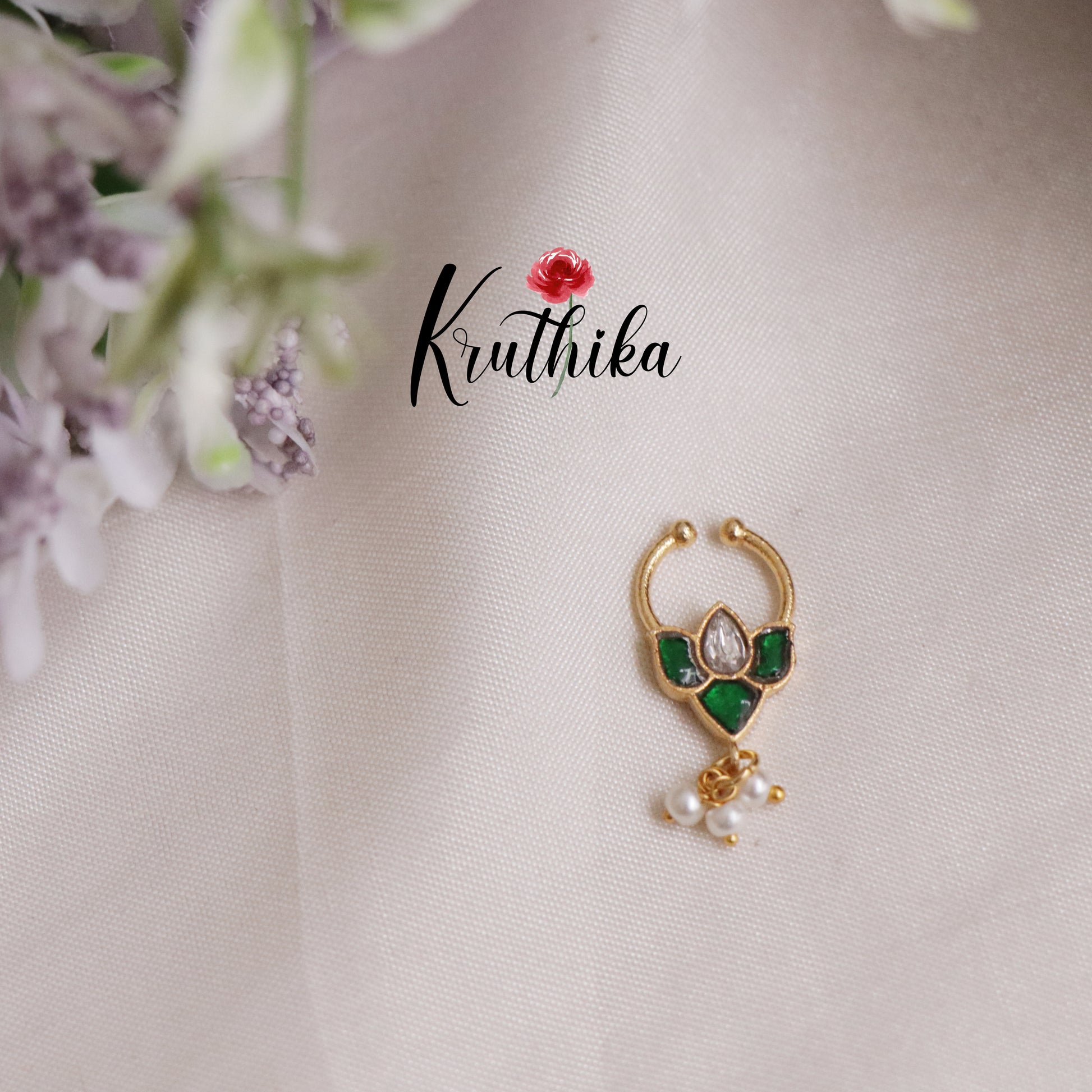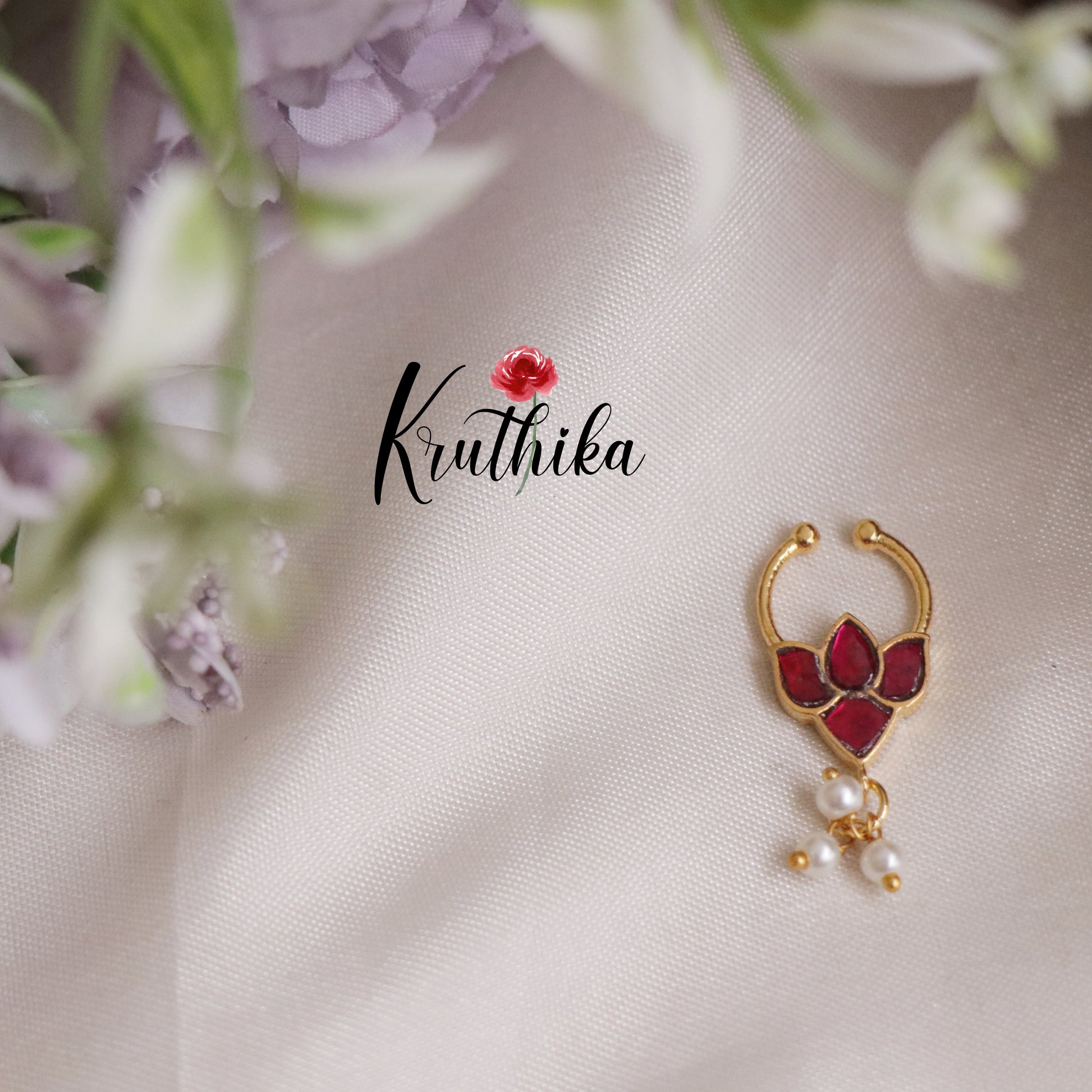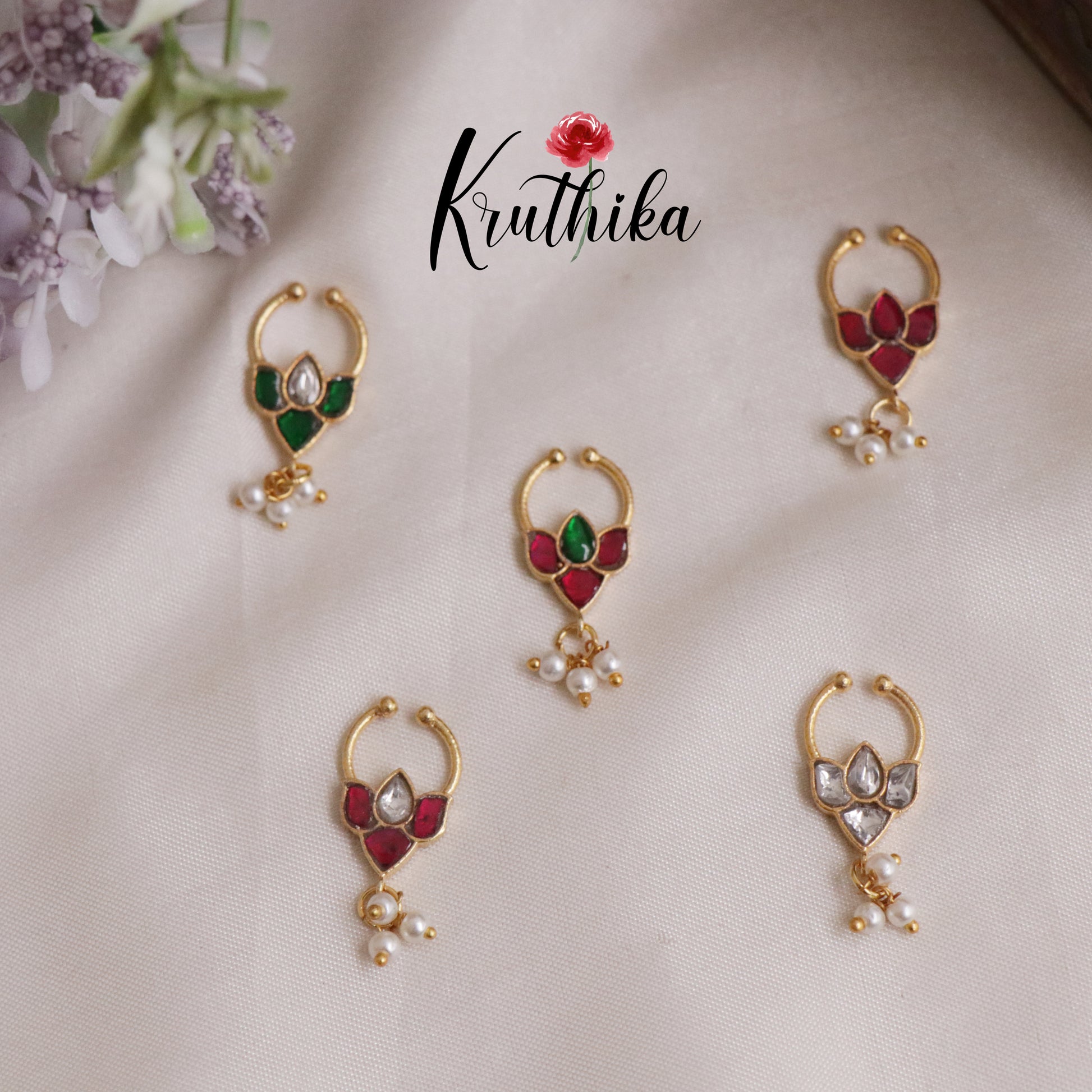 Beautiful Lotus Design Jadau Septum Nose Ring- No Piercing Required N29 (Available in 5 Colours)