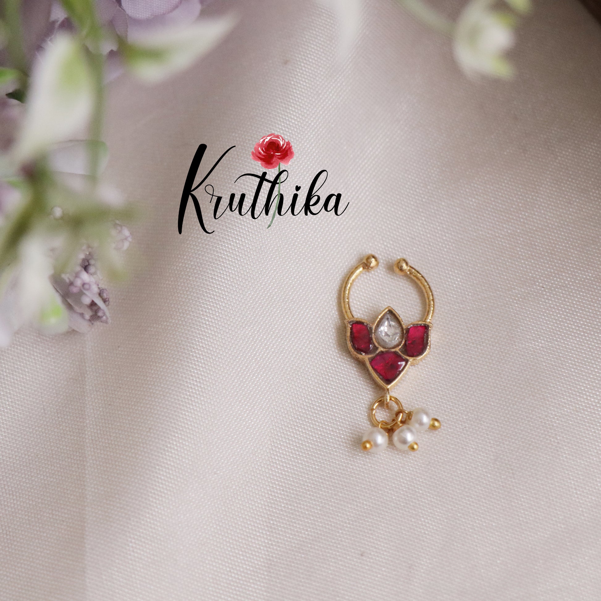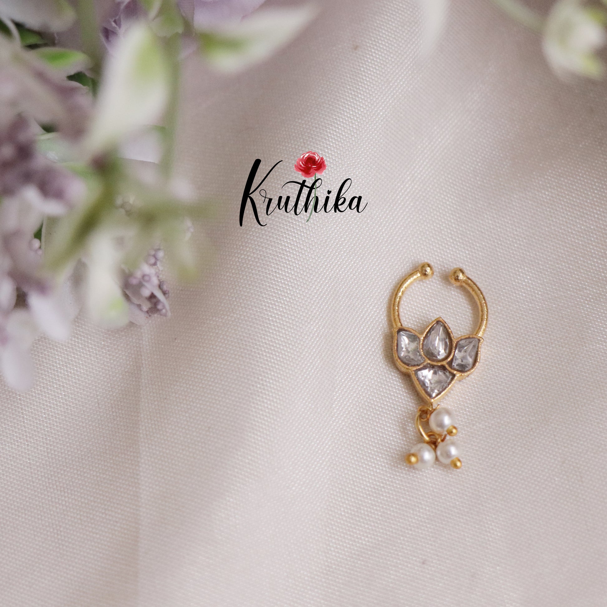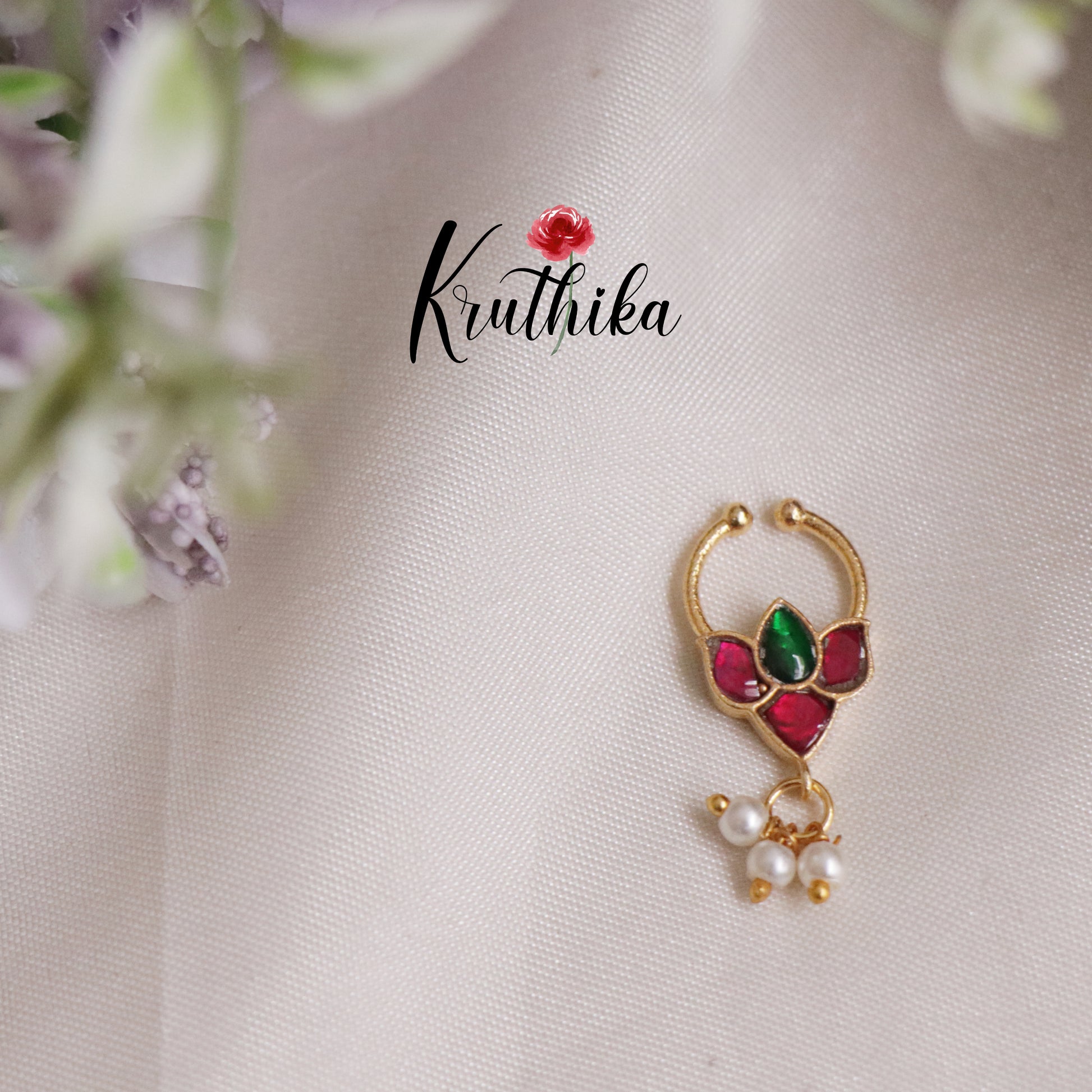 Beautiful Lotus Design Jadau Septum Nose Ring- No Piercing Required N29 (Available in 5 Colours)