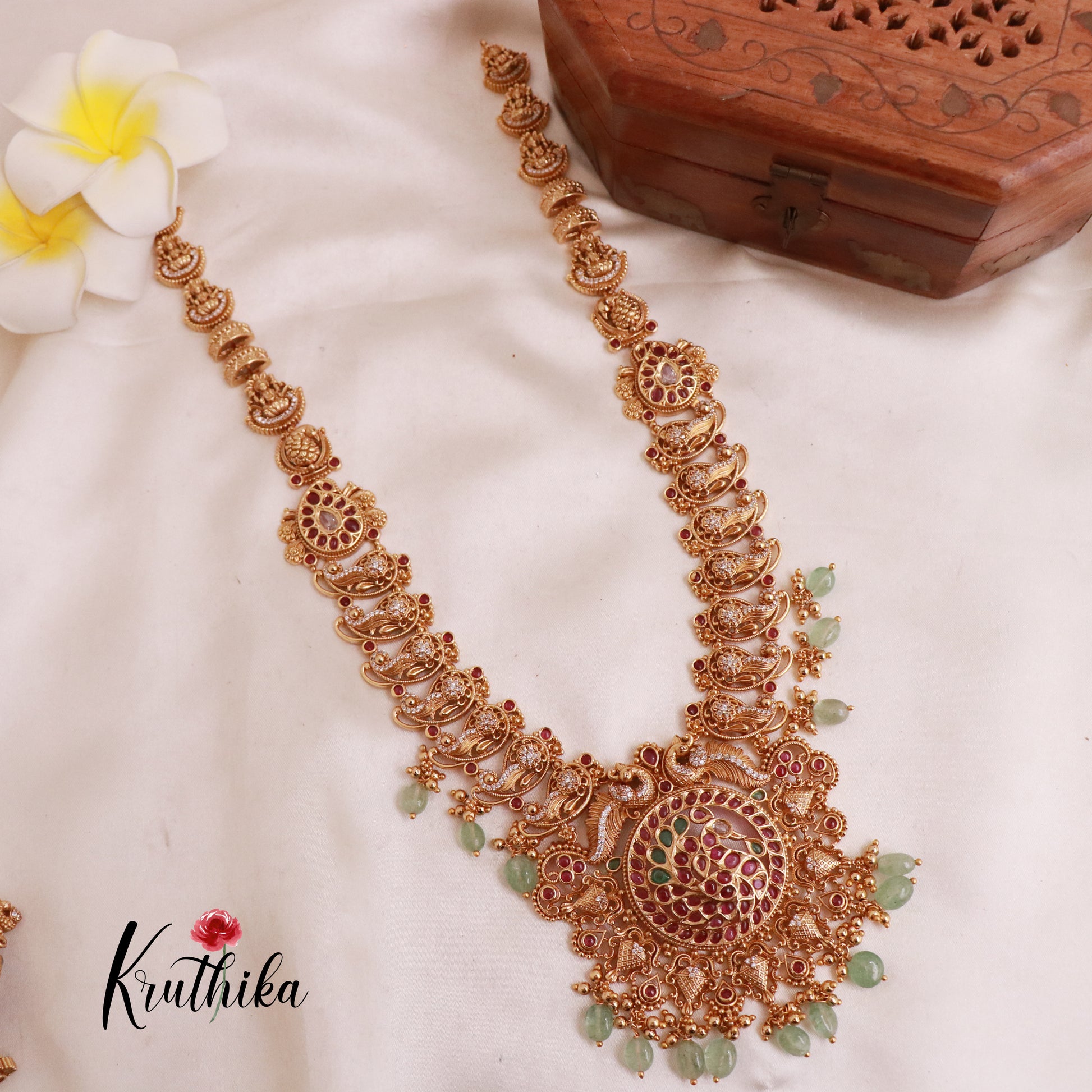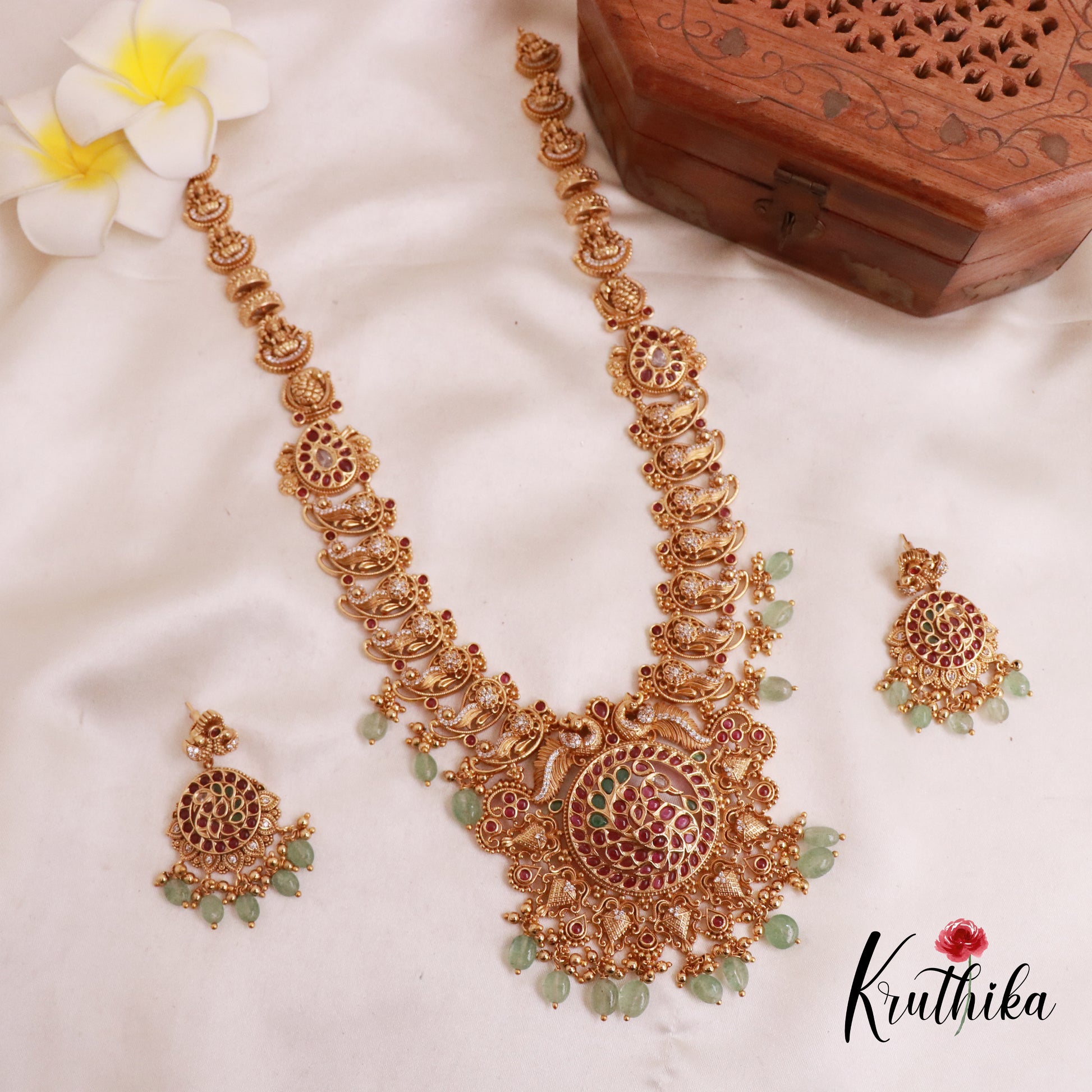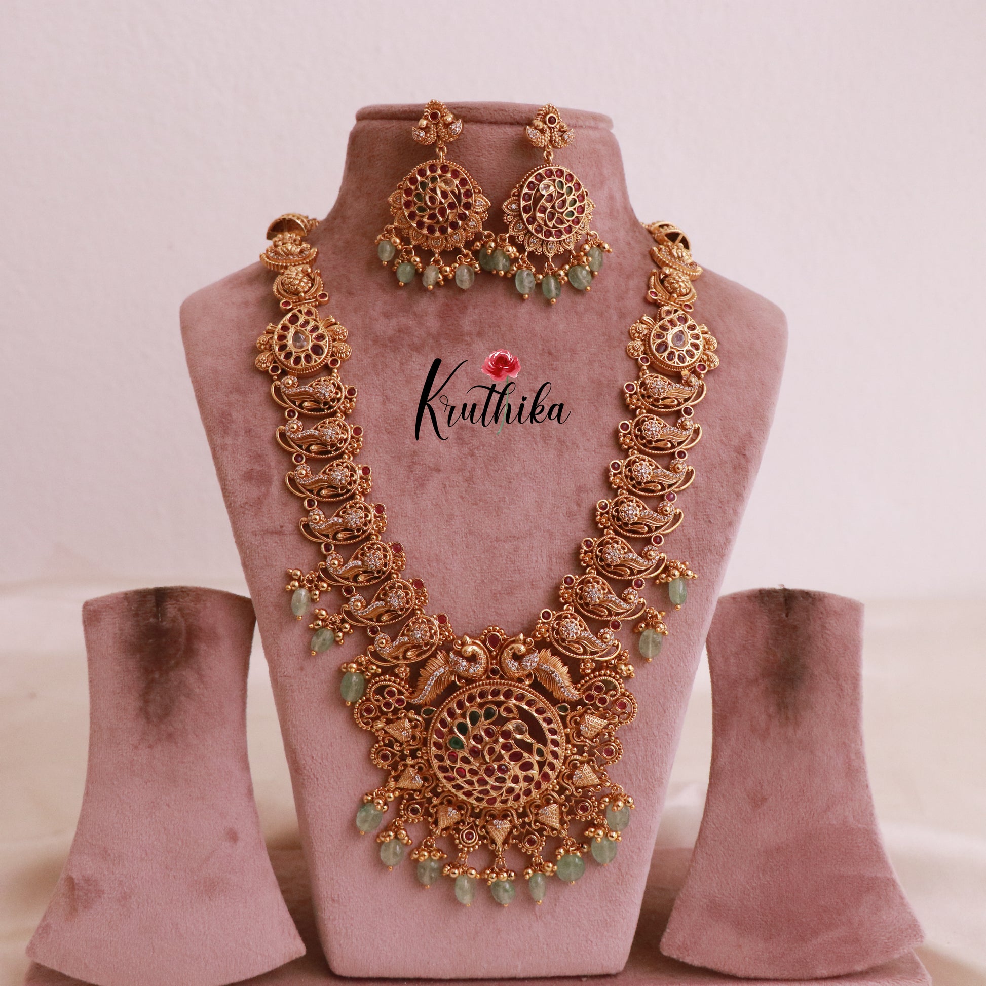 Enhance your style with our stunning ,Beautiful Premium Polish Peacock Kempu Haaram. Crafted with high-quality stones & beads, this set combines timeless elegance with a modern touch. Ideal for special occasions or adding a touch of glamour to your look.
