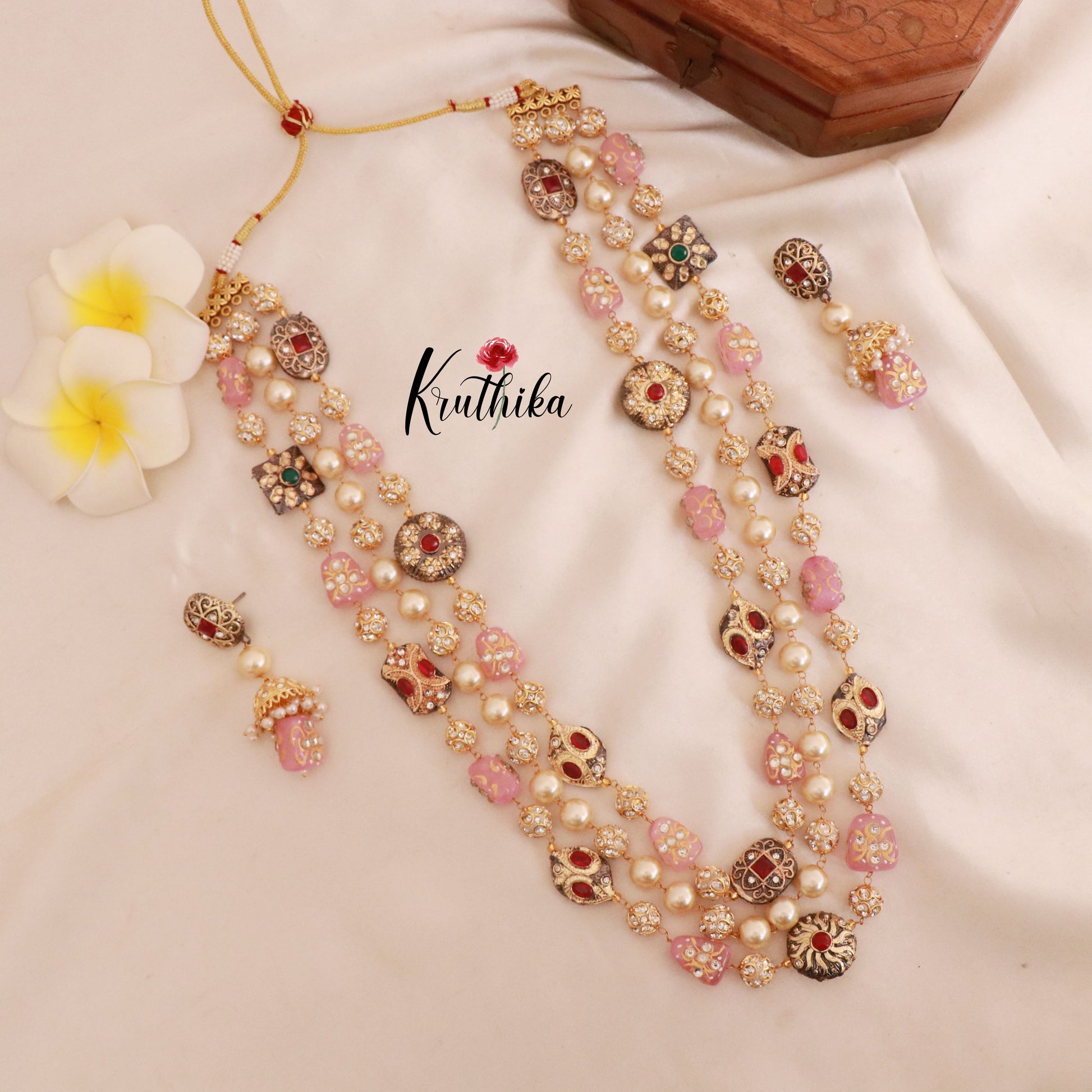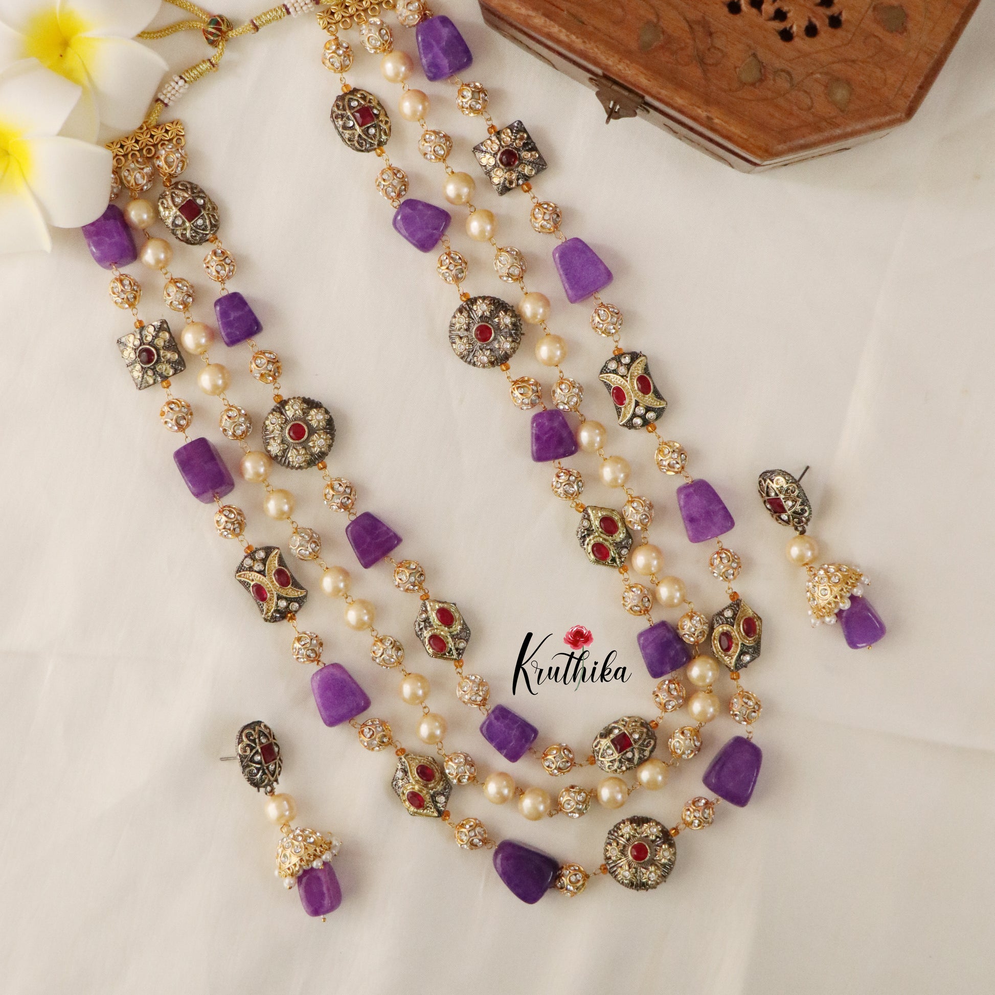 Enhance your style with our stunning, Beautiful Three Lines Beads Haaram , paired perfectly with matching earrings. Crafted with high-quality stones & beads, this set combines timeless elegance with a modern touch. Ideal for special occasions or adding a touch of glamour to your look.