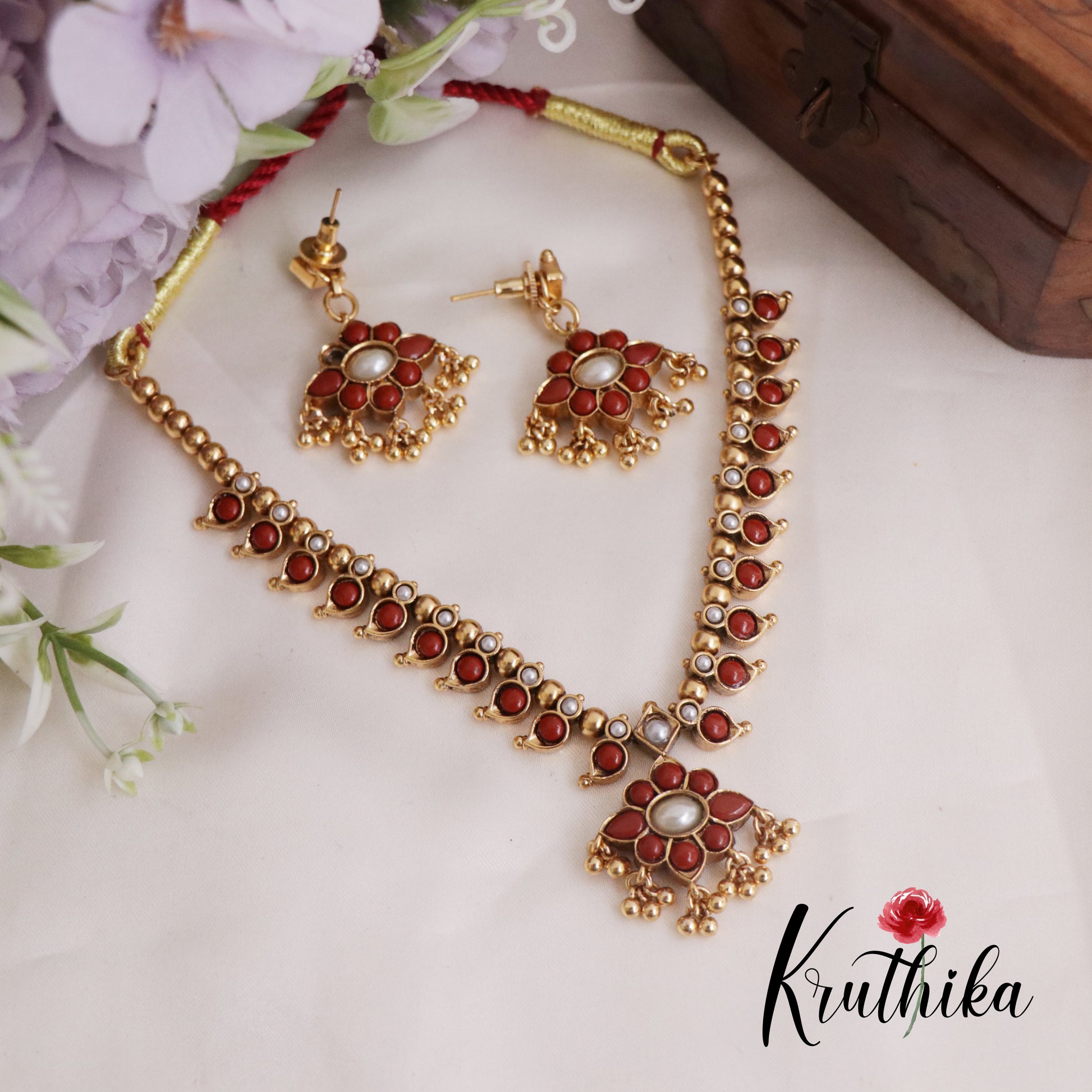 Enhance your style with our stunning Beautiful Two-in-One Reversible Floral Kemp Necklace Set with Earrings paired perfectly with matching earrings. Crafted with high-quality stones & beads, this set combines timeless elegance with a modern touch. Ideal for special occasions or adding a touch of glamour to your look.