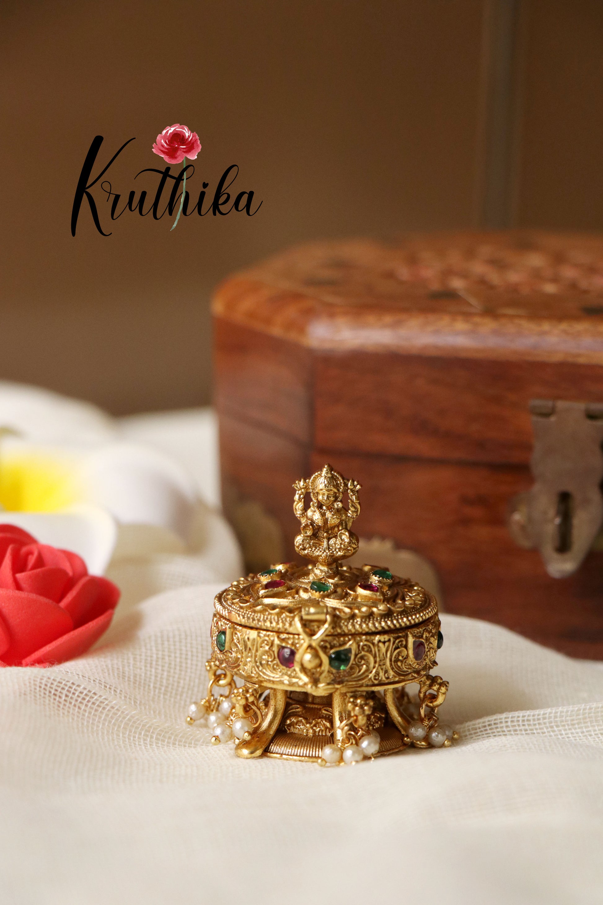 Store your essentials in style with our exquisite Kukum Boxes. Perfect for holding Kumkum, bindi, or other small items, these boxes blend traditional charm with practical design, making them a beautiful addition to your vanity or puja space.