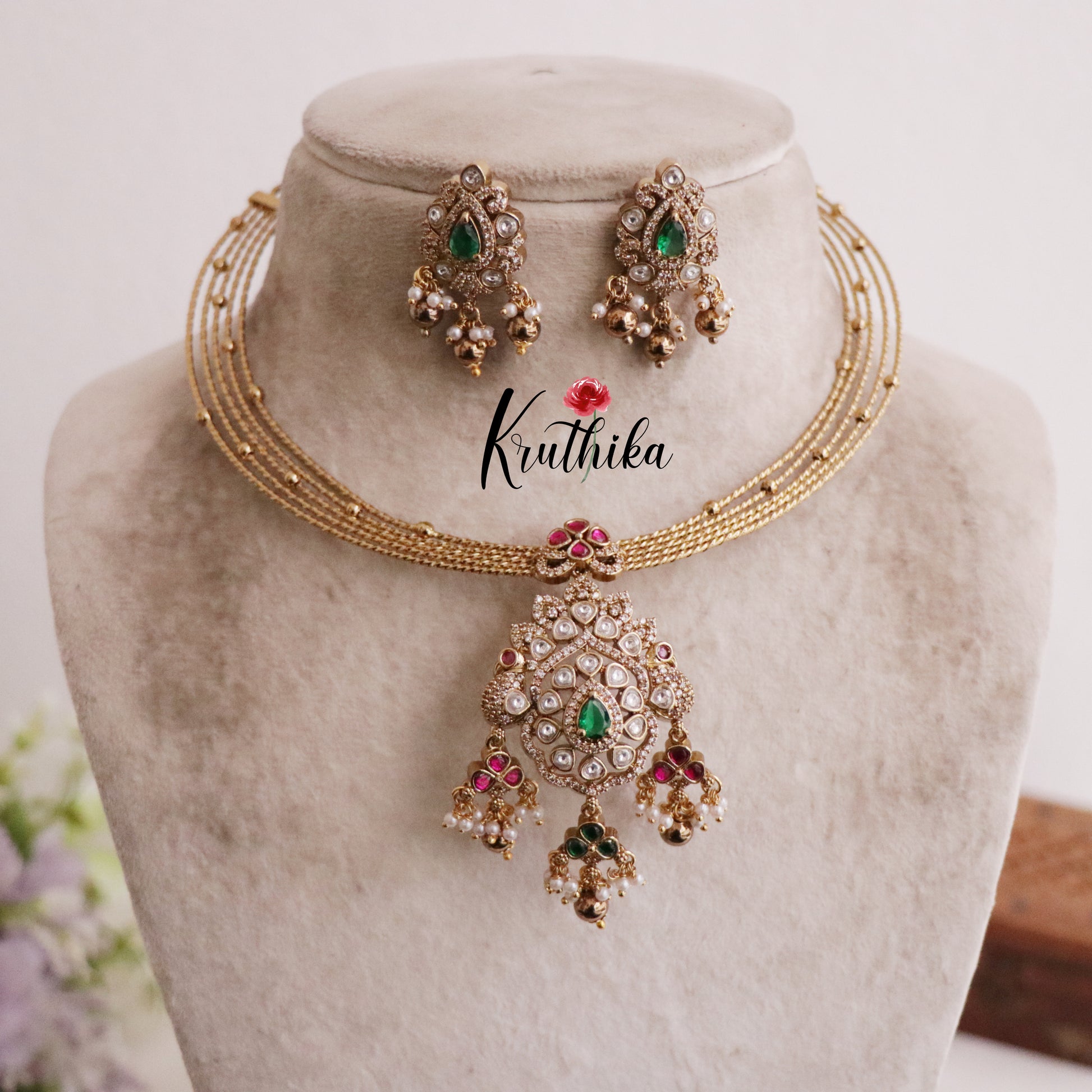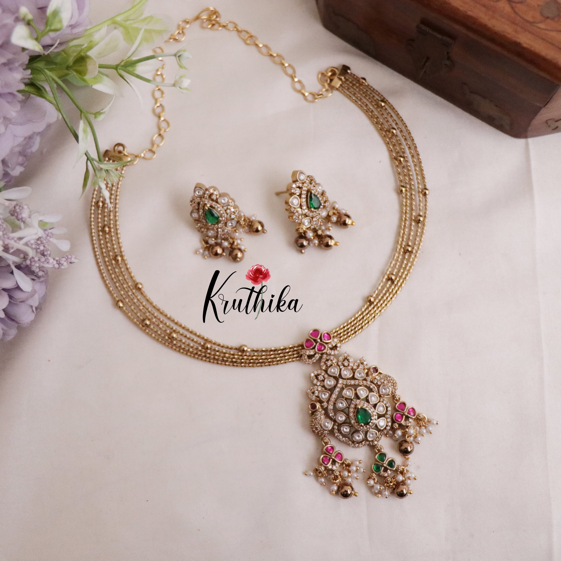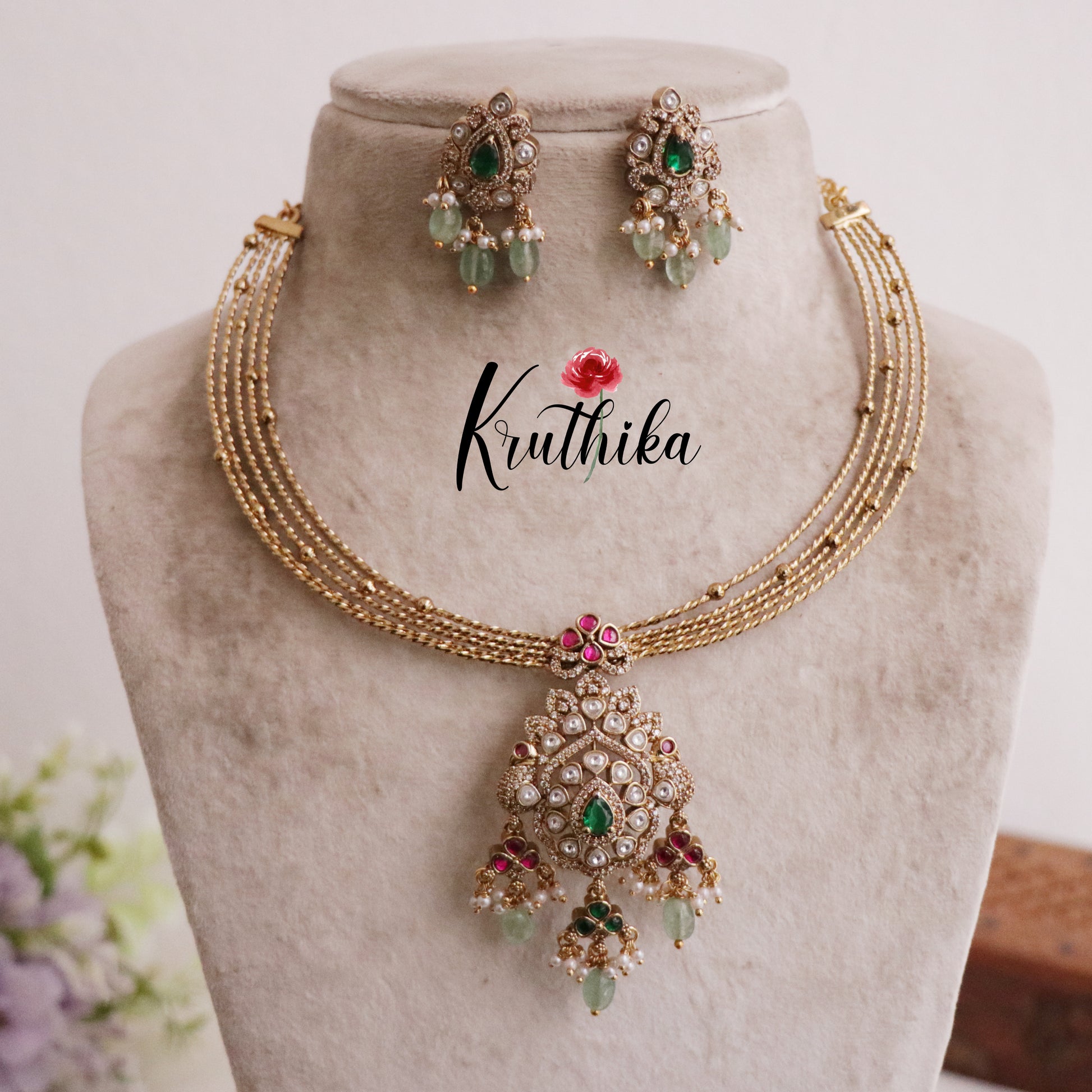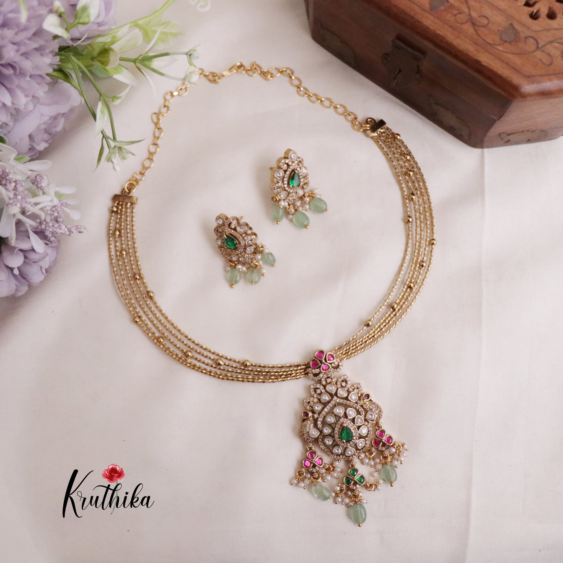 Enhance your style with our Contemporary Trendy Victorian Peacock Hasli Emerald Necklace paired perfectly with matching earrings. Crafted with high-quality stones & beads, this set combines timeless elegance with a modern touch. Ideal for special occasions or adding a touch of glamour to your look.