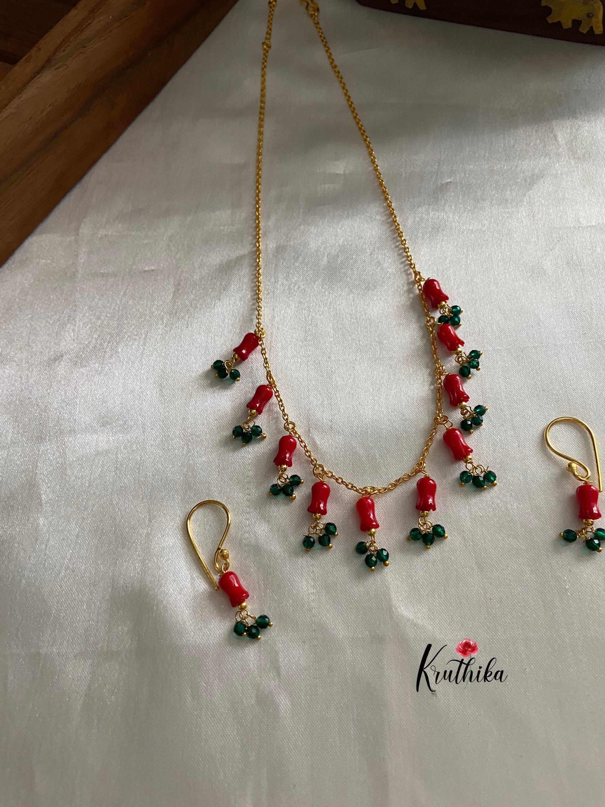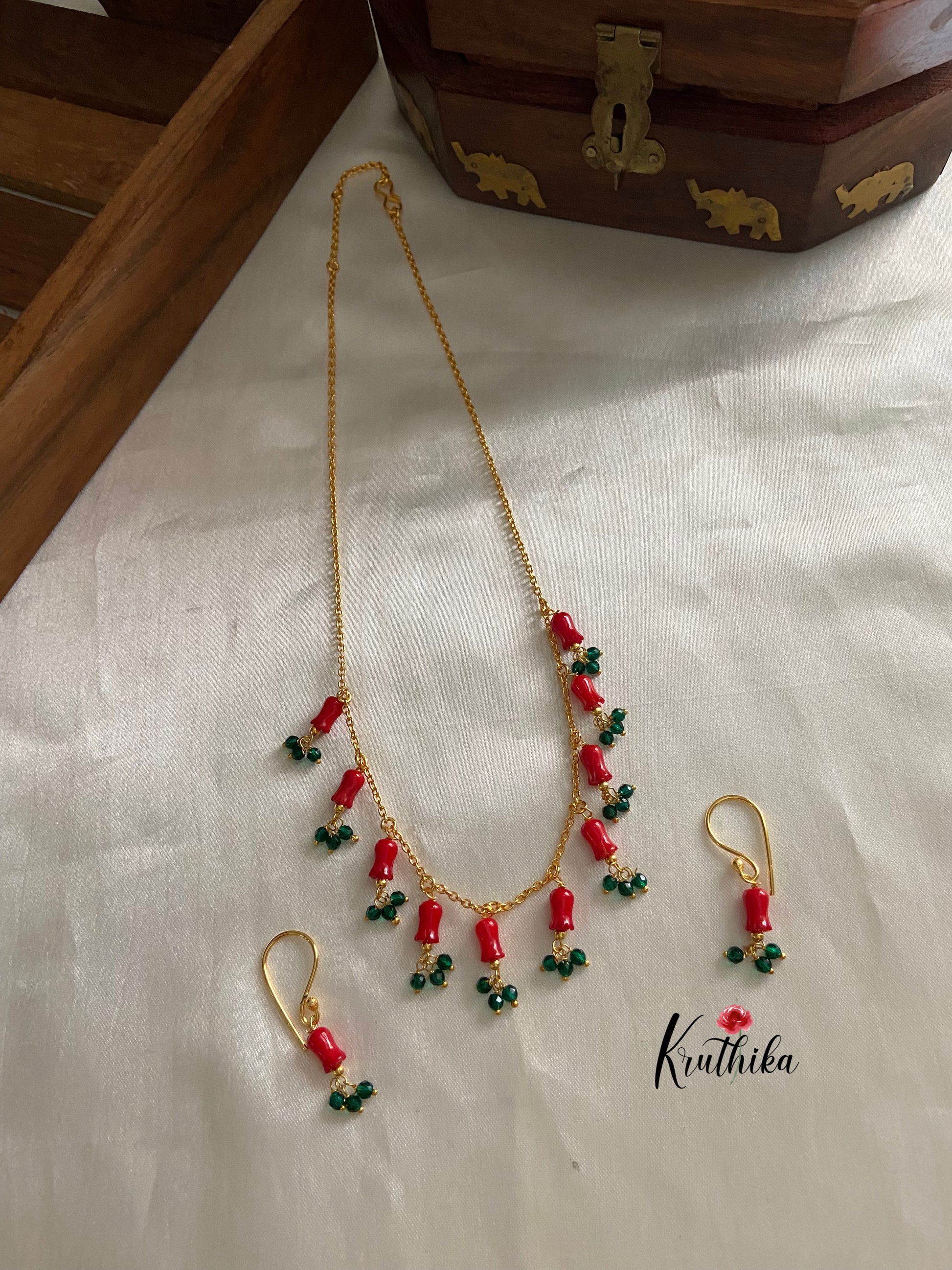 with matching earrings. Crafted with high-quality stones & beads, this set combines timeless elegance with a modern touch. Ideal for special occasions or adding a touch of glamour to your look.
