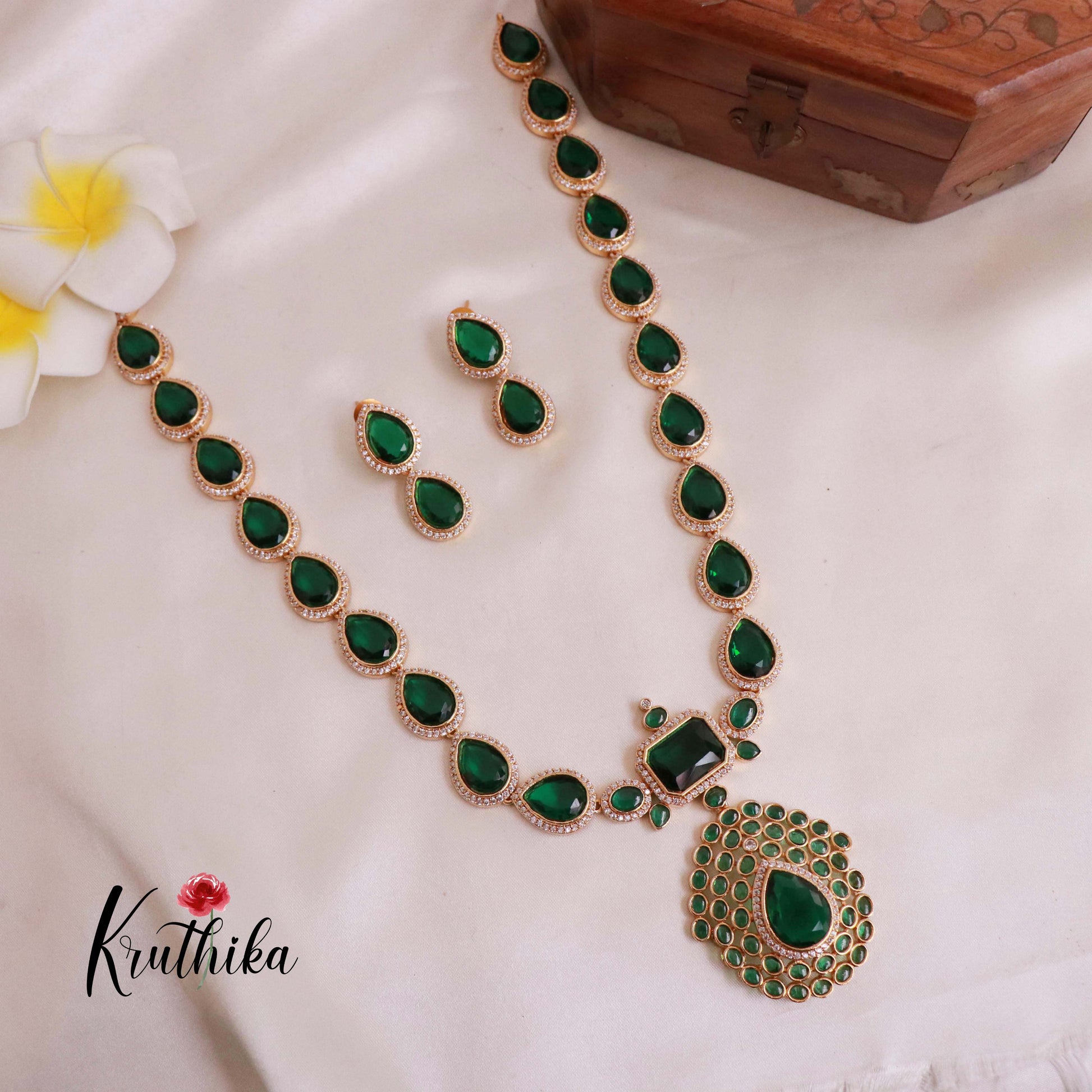 Enhance your style with our stunning, Elegant AD/Victorian Haara paired perfectly with matching earrings. Crafted with high-quality stones & beads, this set combines timeless elegance with a modern touch. Ideal for special occasions or adding a touch of glamour to your look.