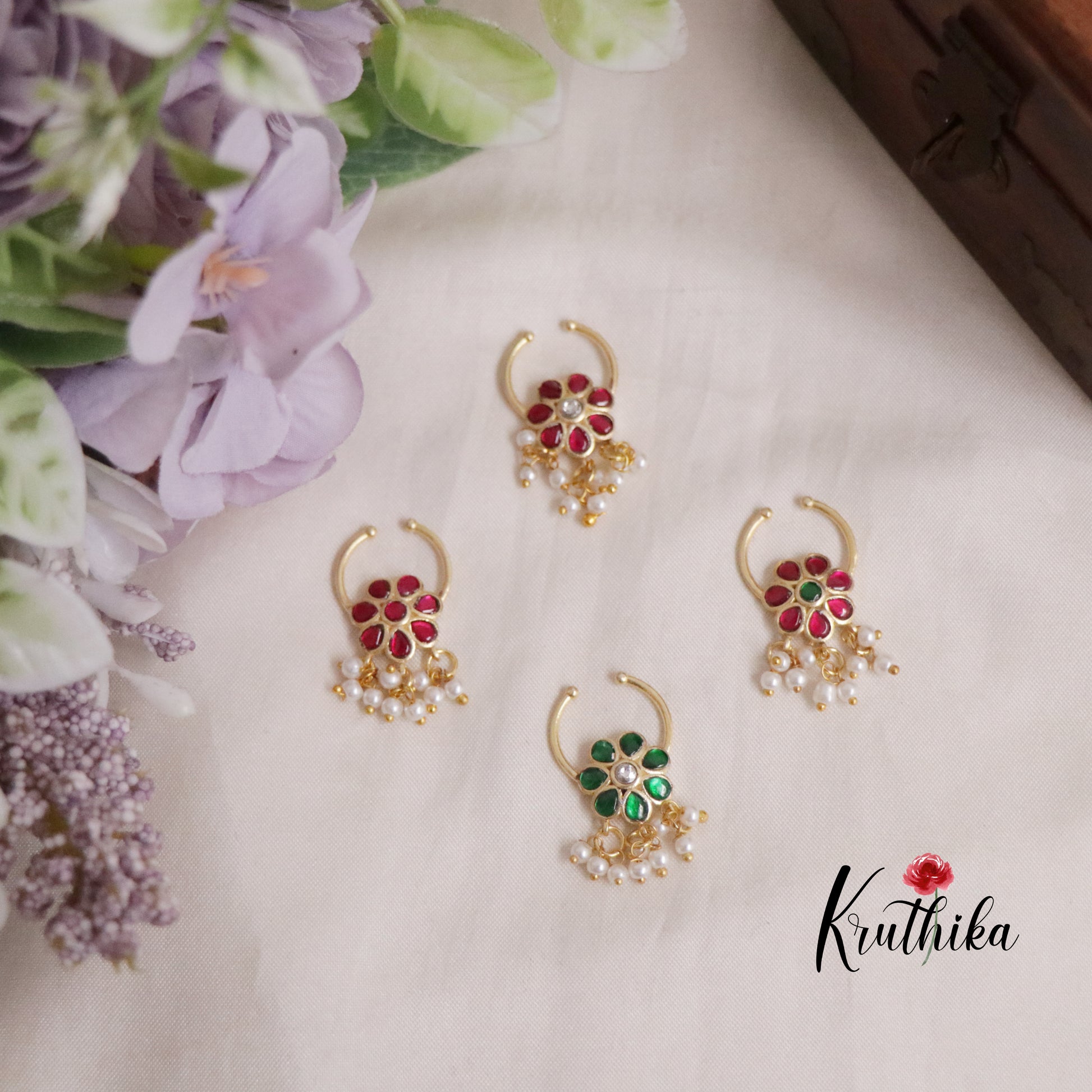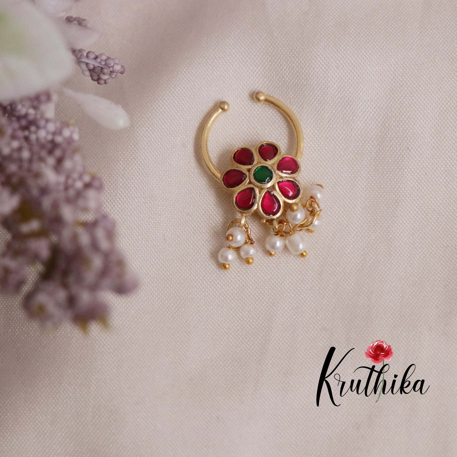 Elegant Jadau Septum Nose Ring- No Piercing Required N58 (Available in 4 Colours)