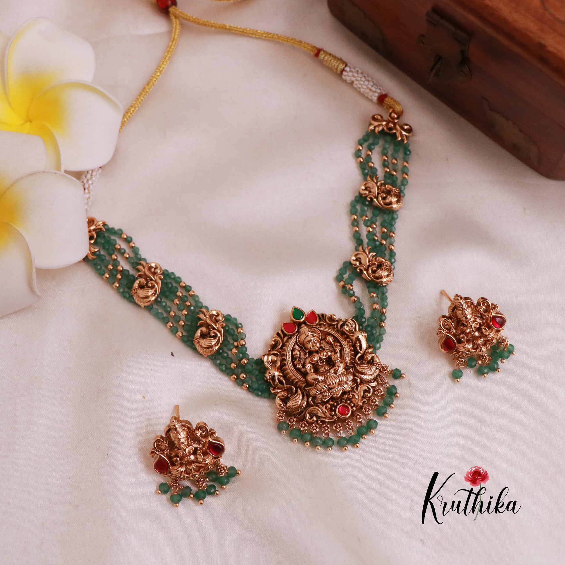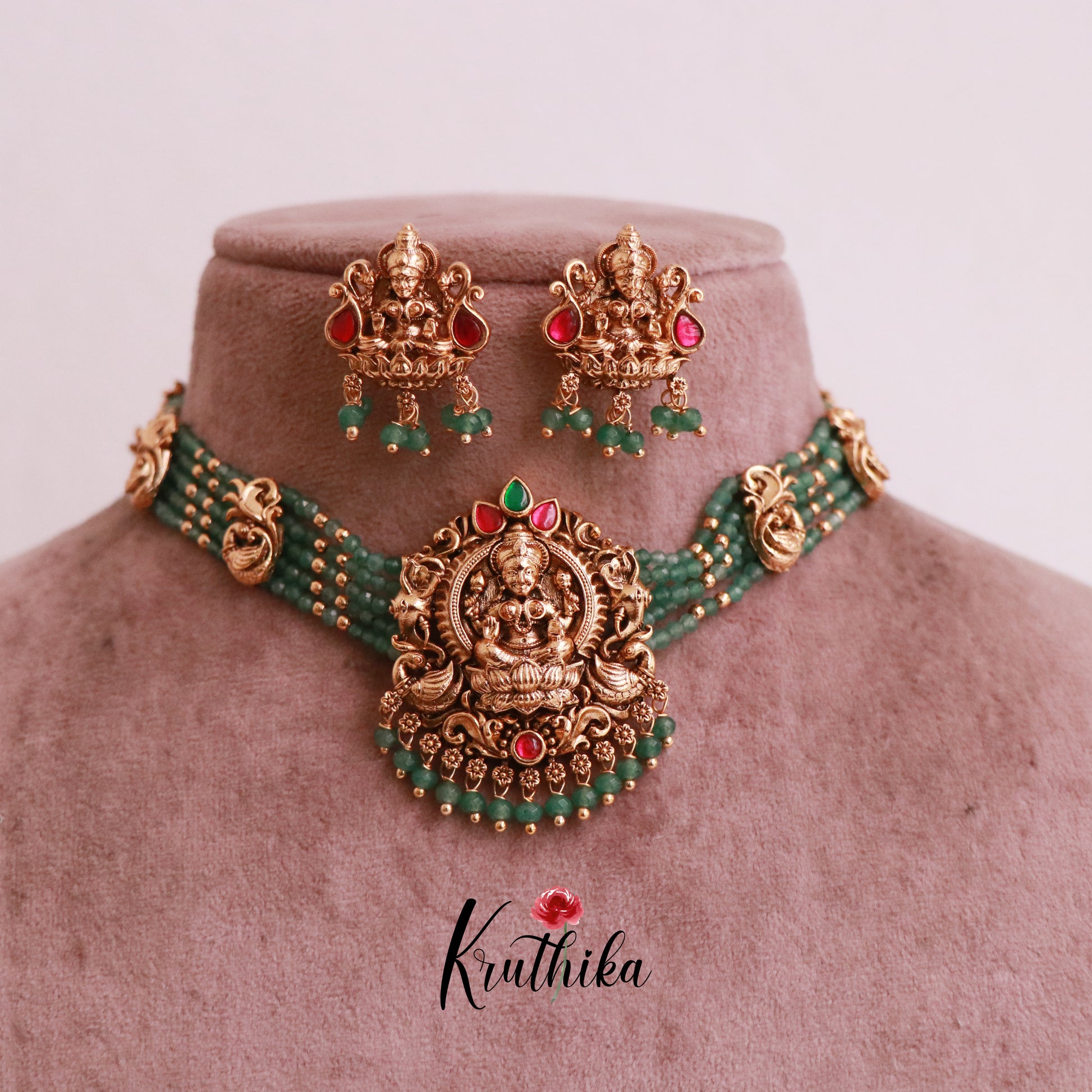 Elegant Lakshmi Green Beads Jadau choker NC2014