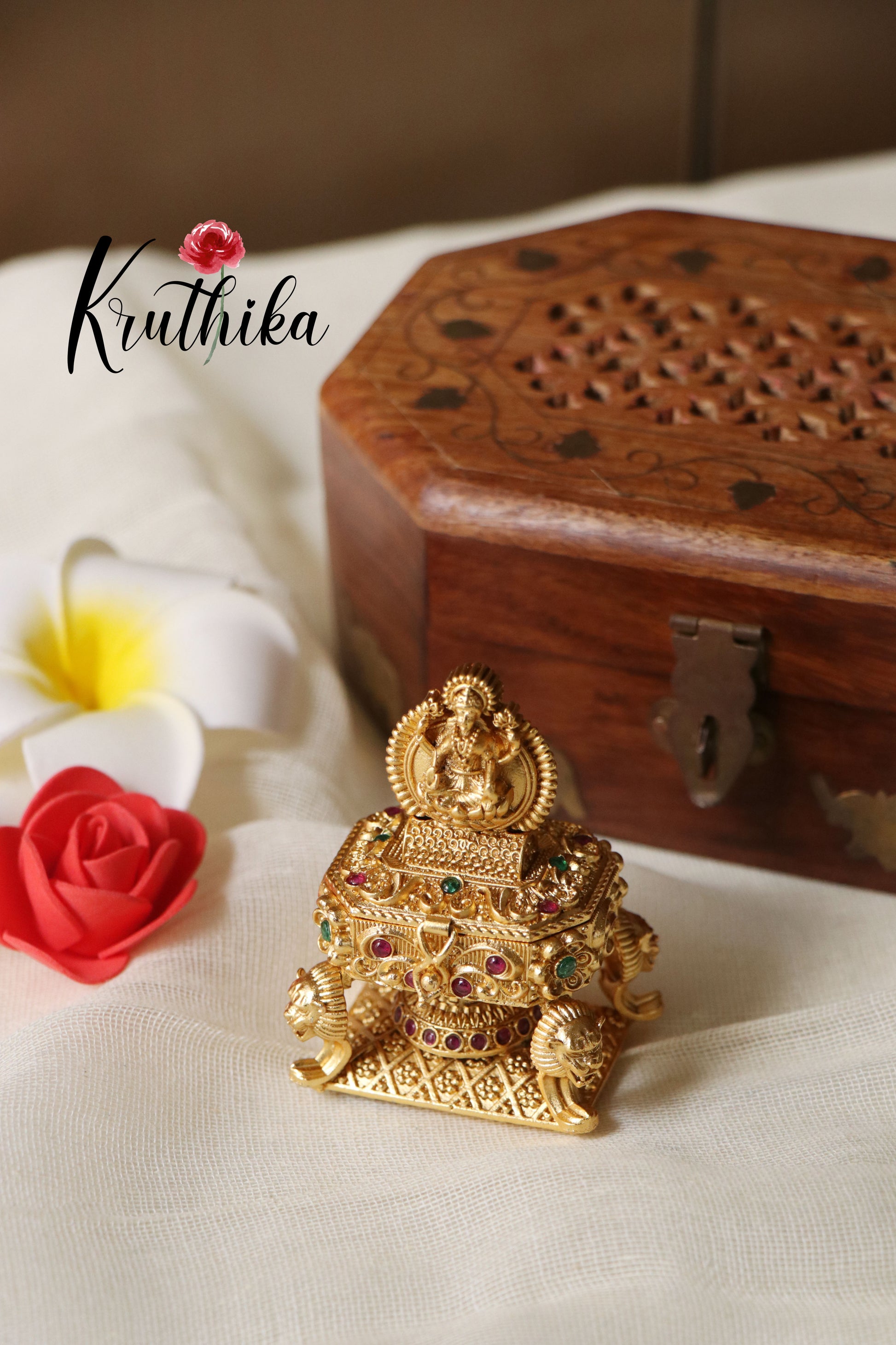 Store your essentials in style with our exquisite Kukum Boxes. Perfect for holding kumkum, bindi, or other small items, these boxes blend traditional charm with practical design, making them a beautiful addition to your vanity or puja space.