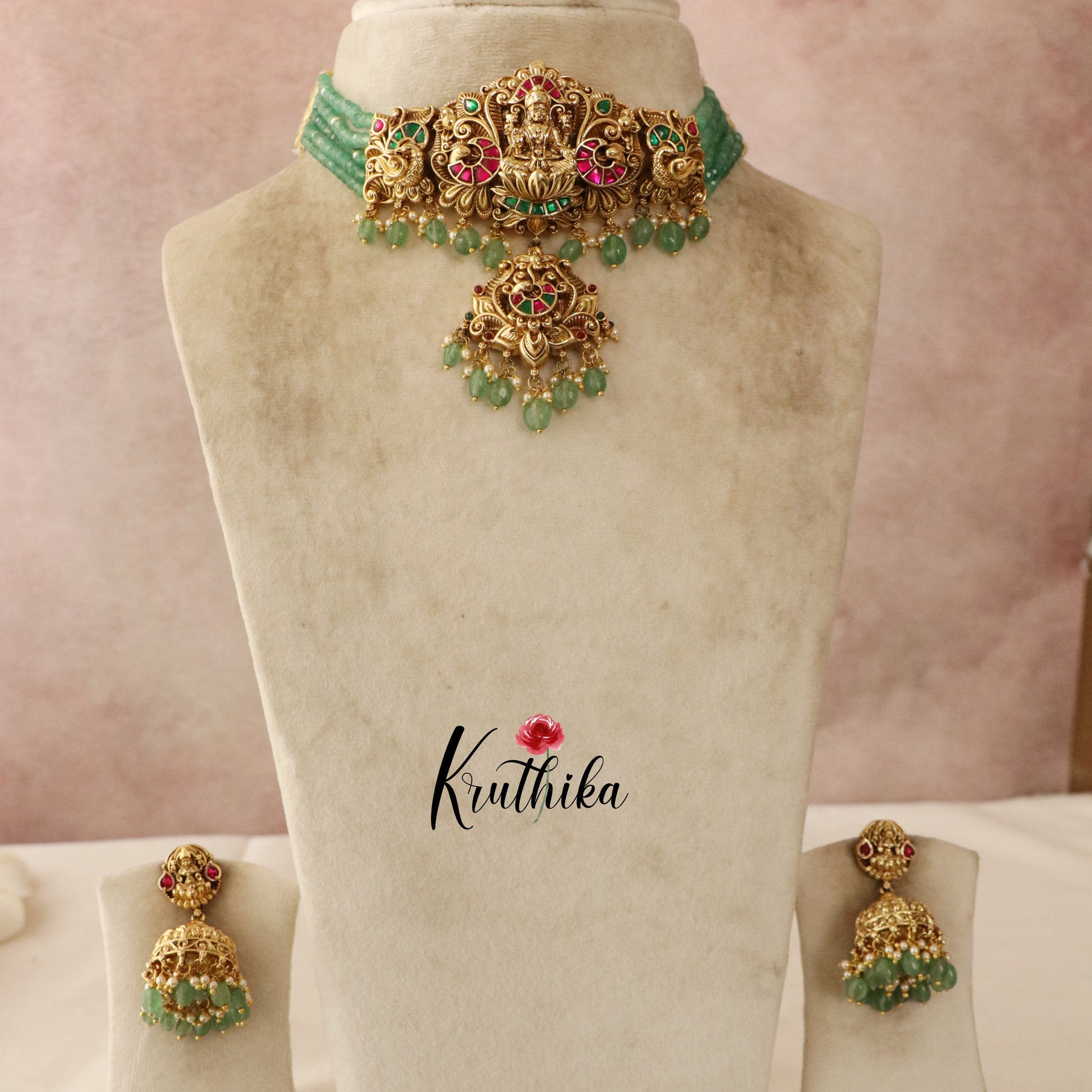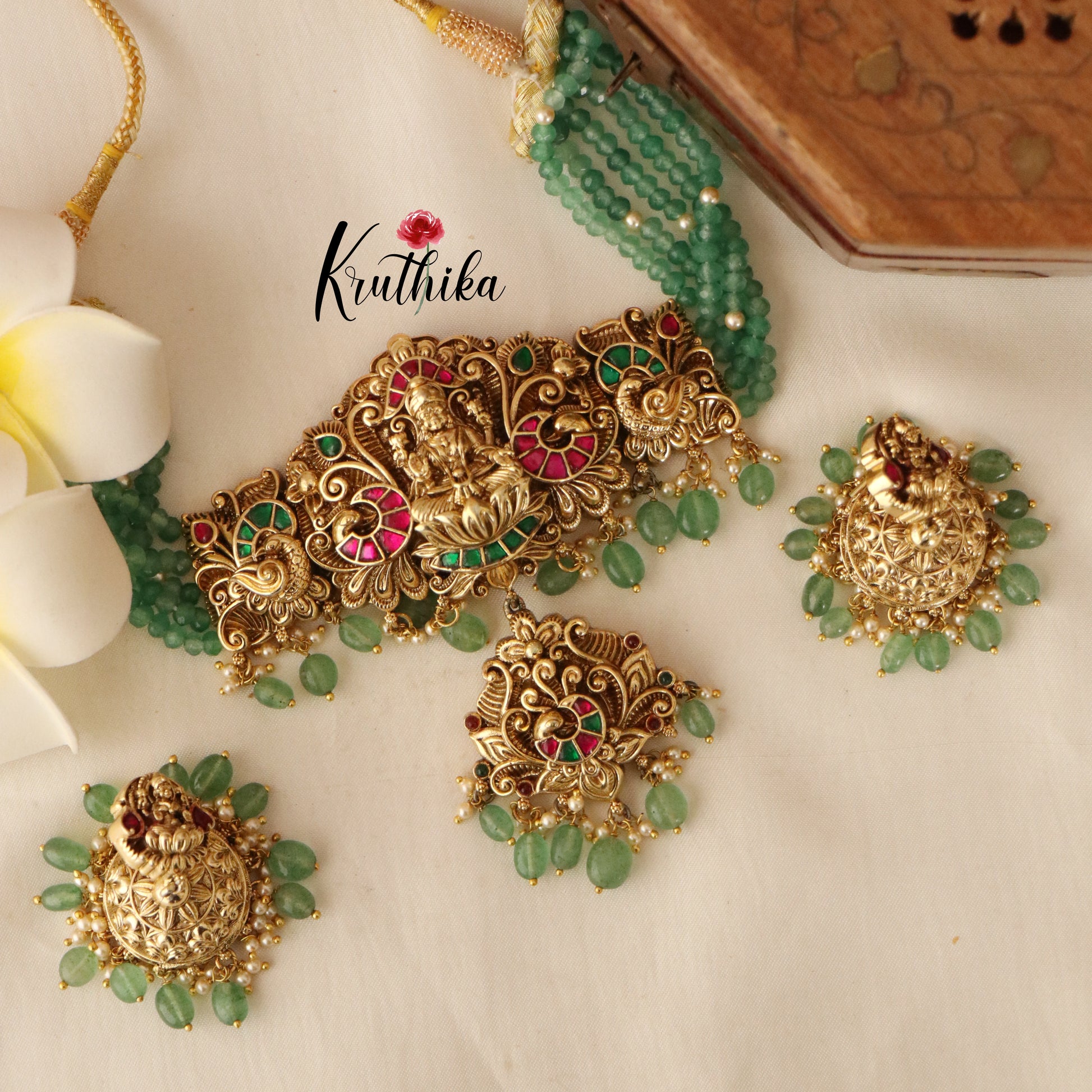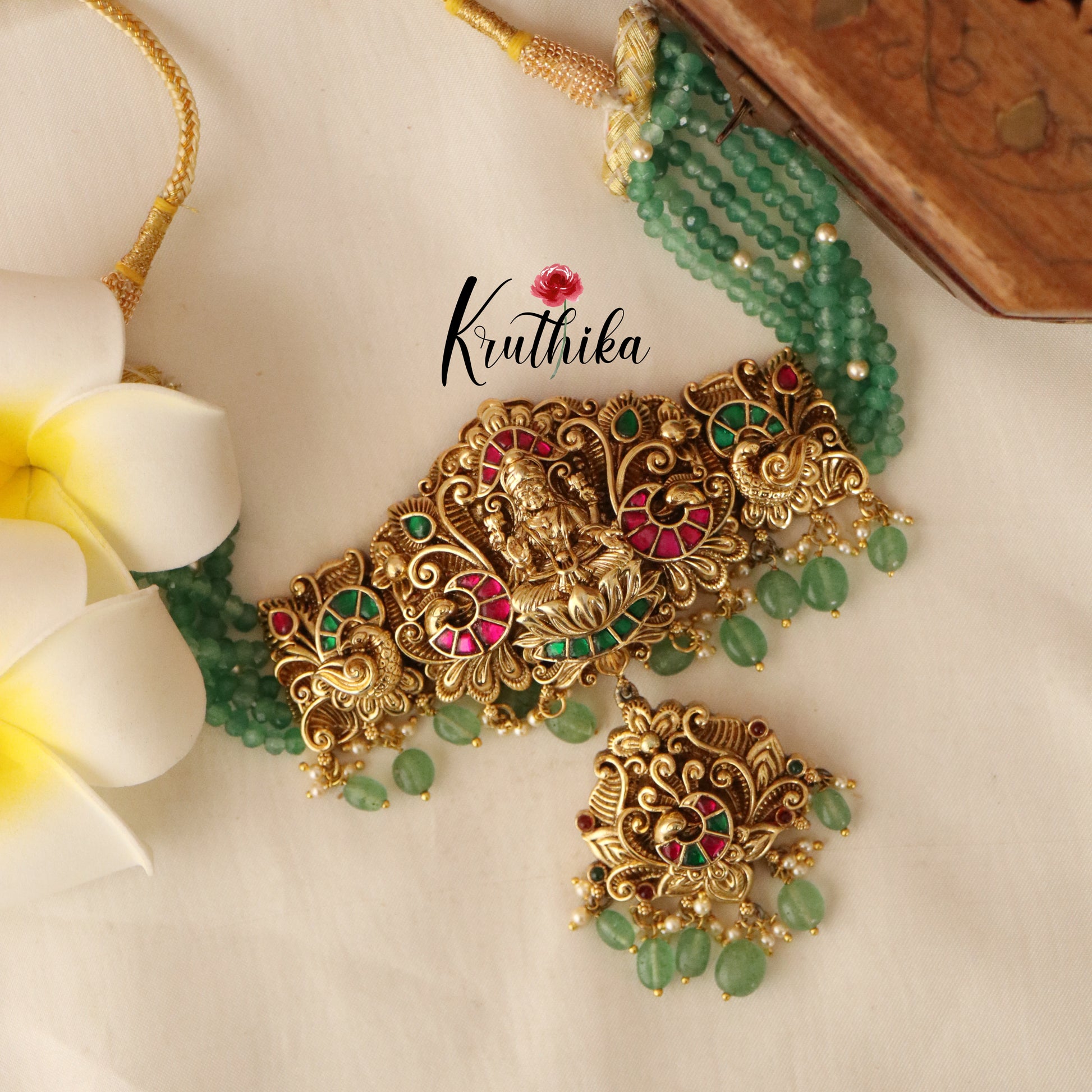 Elegant Lakshmi Peacock Jadau Chocker with Onyx Beads NC1439