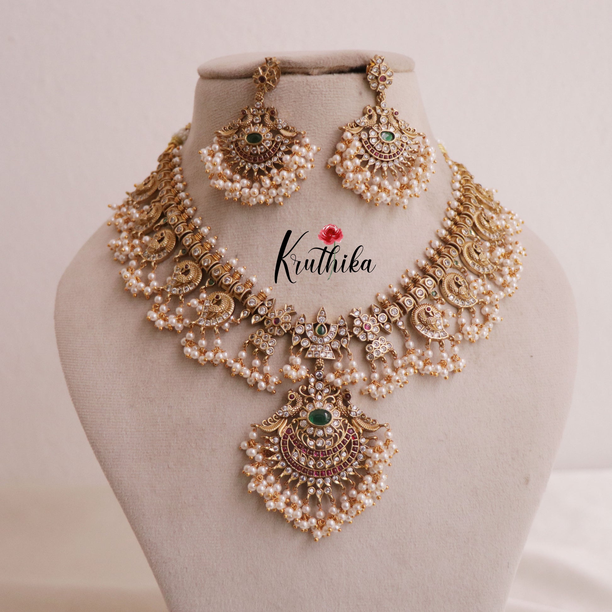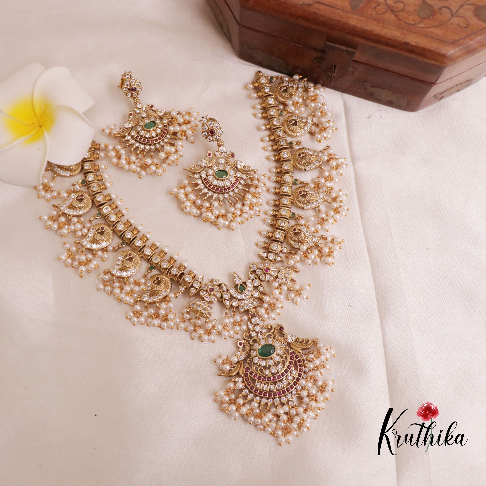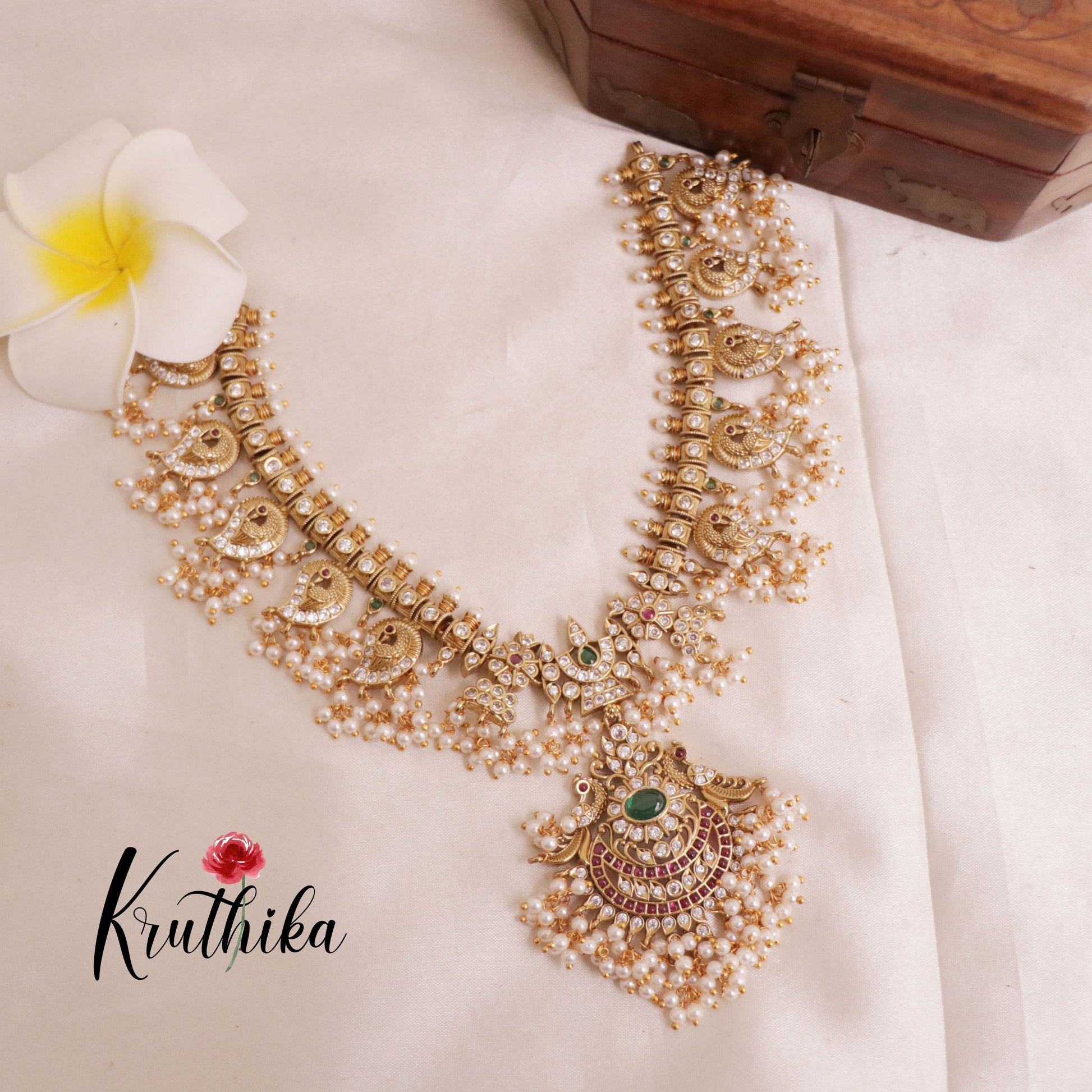 Enhance your style with our stunning, Elegant Peacock Guttaposalu Necklace with Pear paired perfectly with matching earrings. Crafted with high-quality stones & beads, this set combines timeless elegance with a modern touch. Ideal for special occasions or adding a touch of glamour to your look.