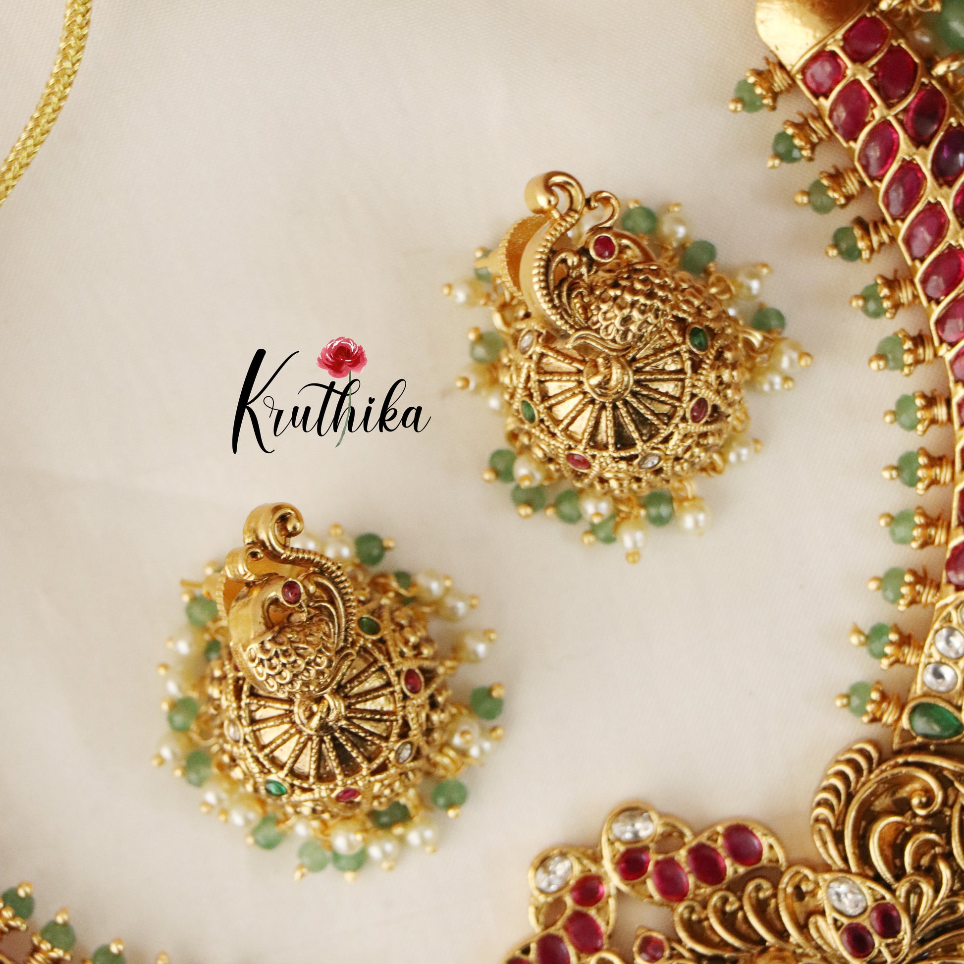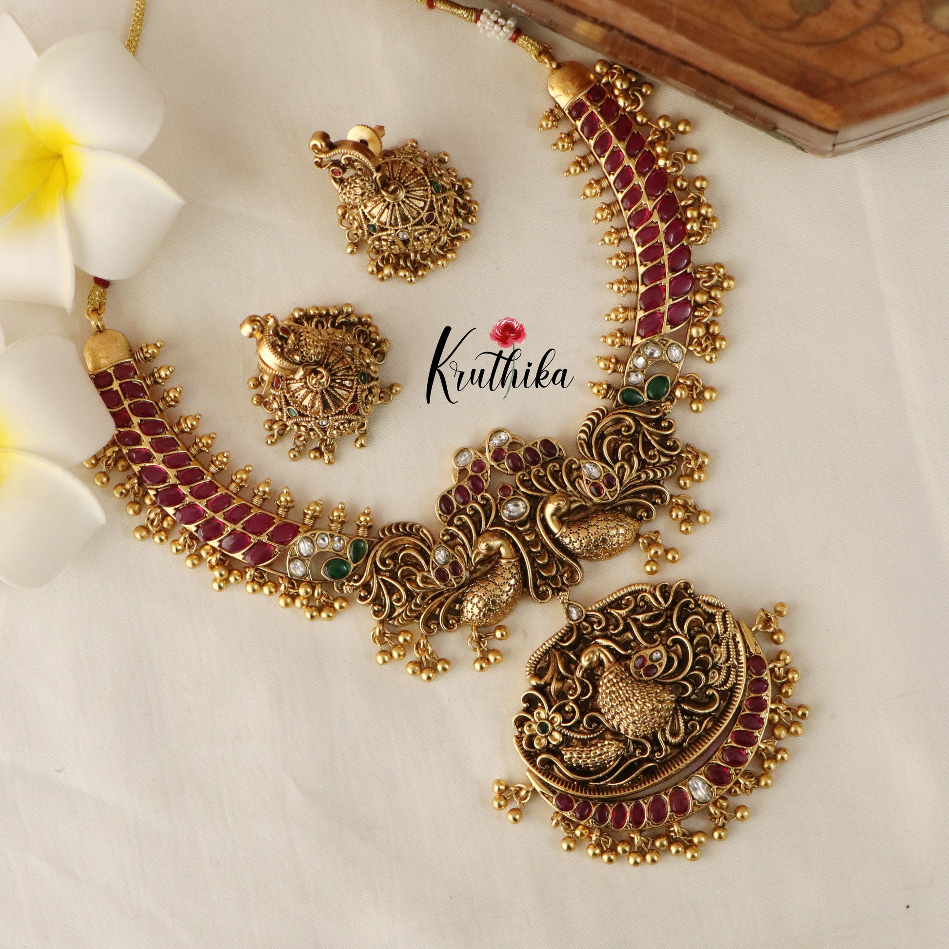 Elegant Peacock Kempu Necklace NC1475 (Available in 3 Variants)