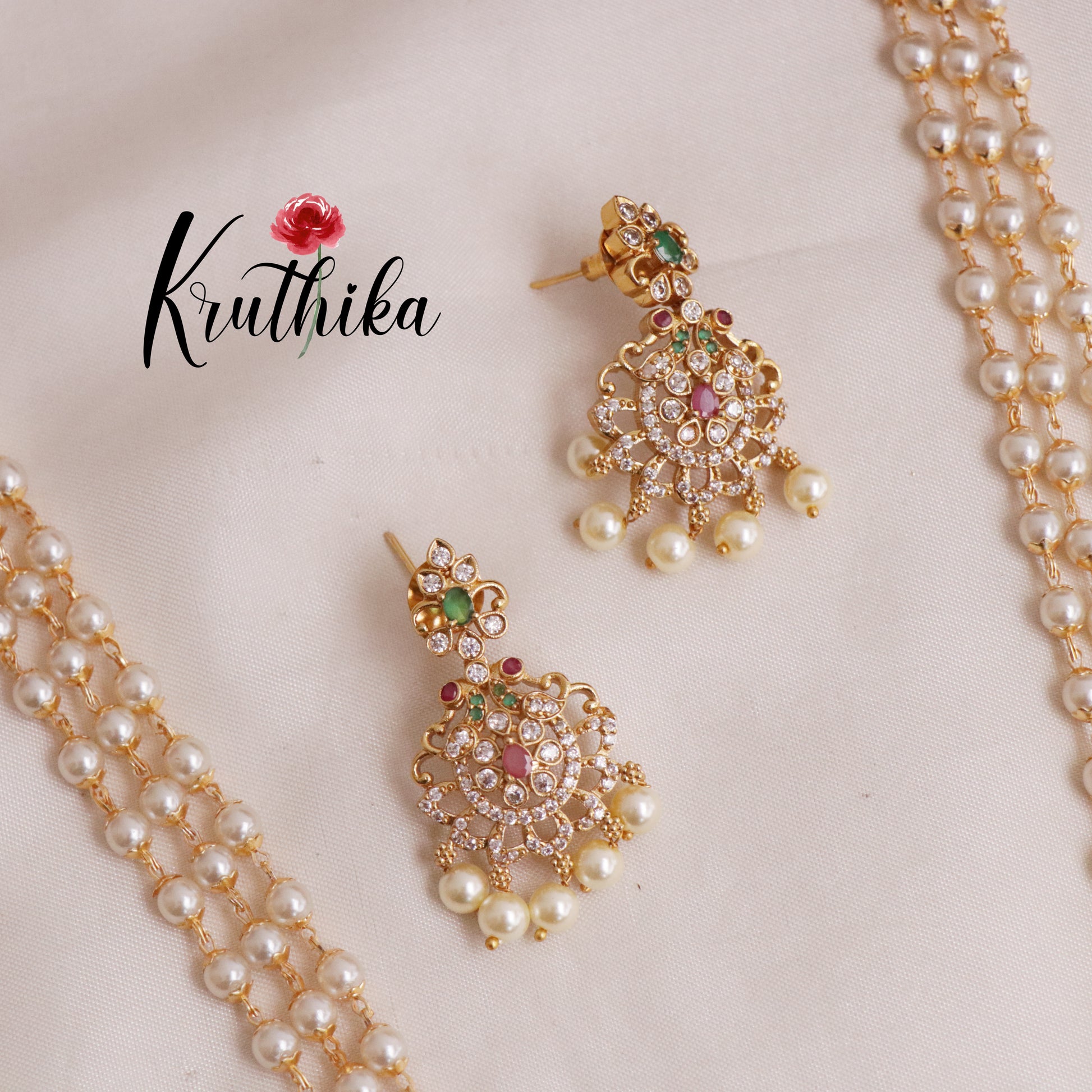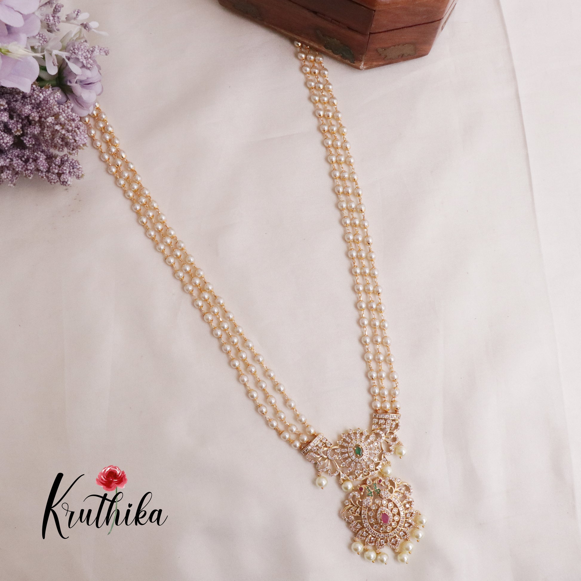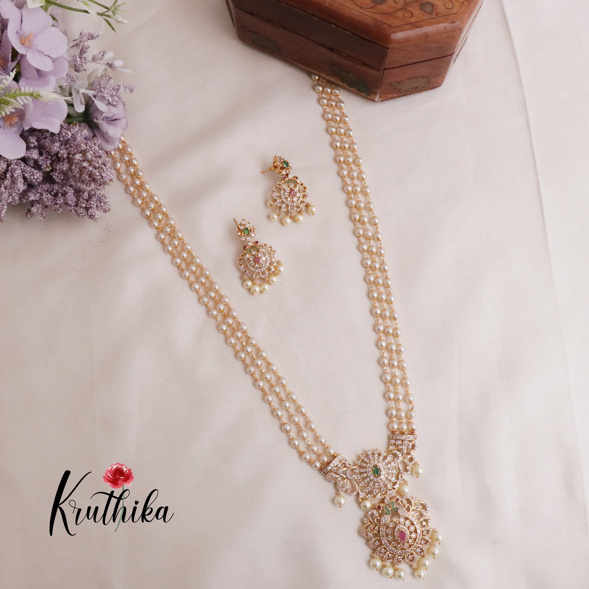 Enhance your style with our stunning, Elegant Three Layer Peacock Design Haaram with White Pearls beads Set paired perfectly with matching earrings. Crafted with high-quality stones & beads, this set combines timeless elegance with a modern touch. Ideal for special occasions or adding a touch of glamour to your look.