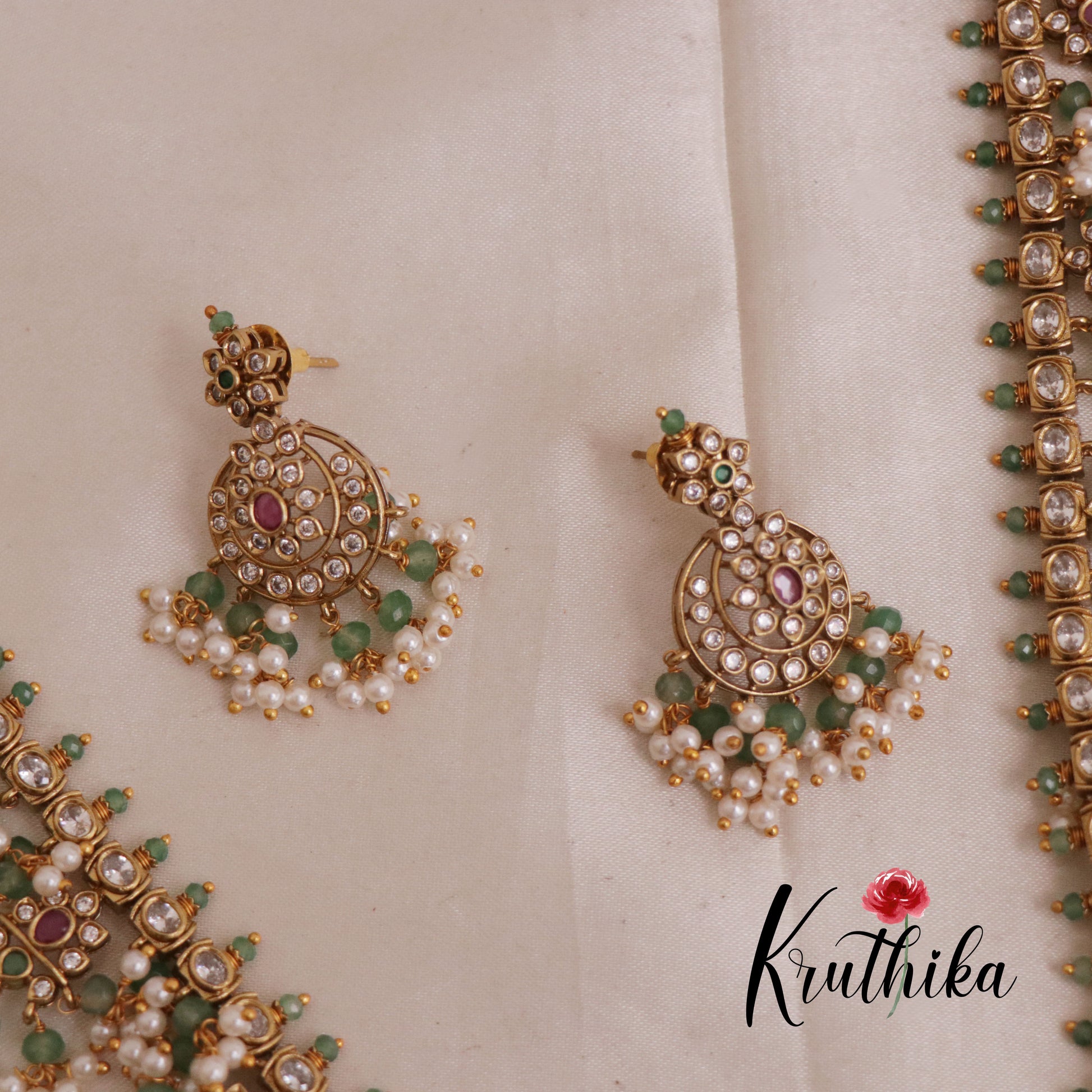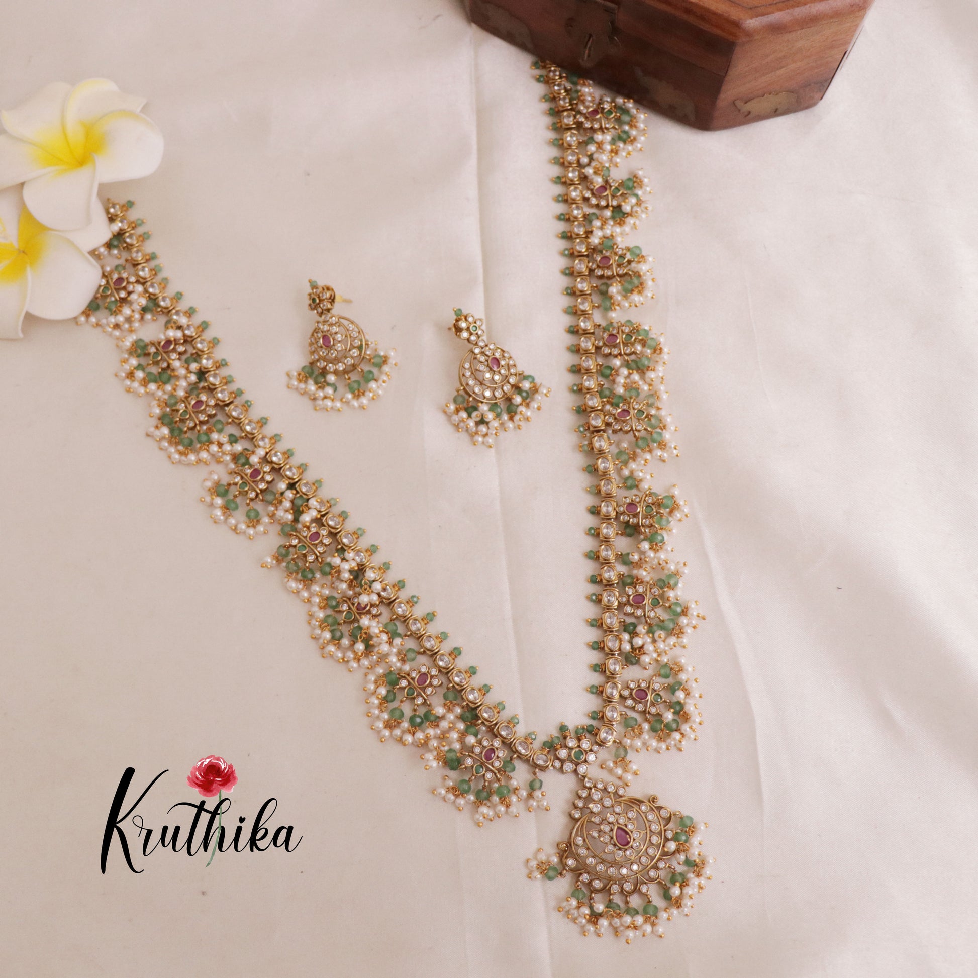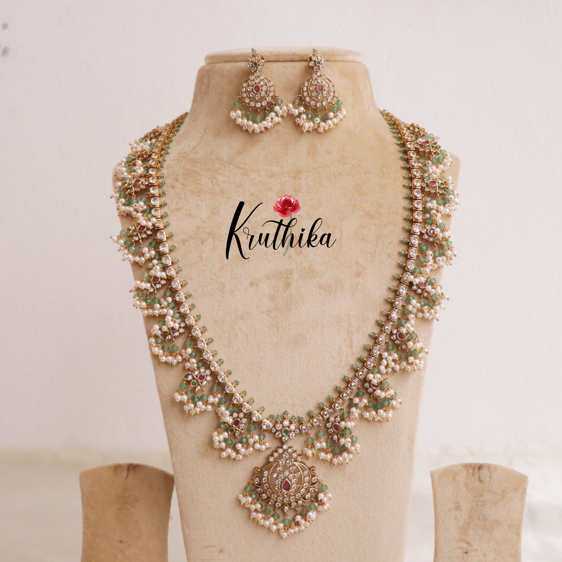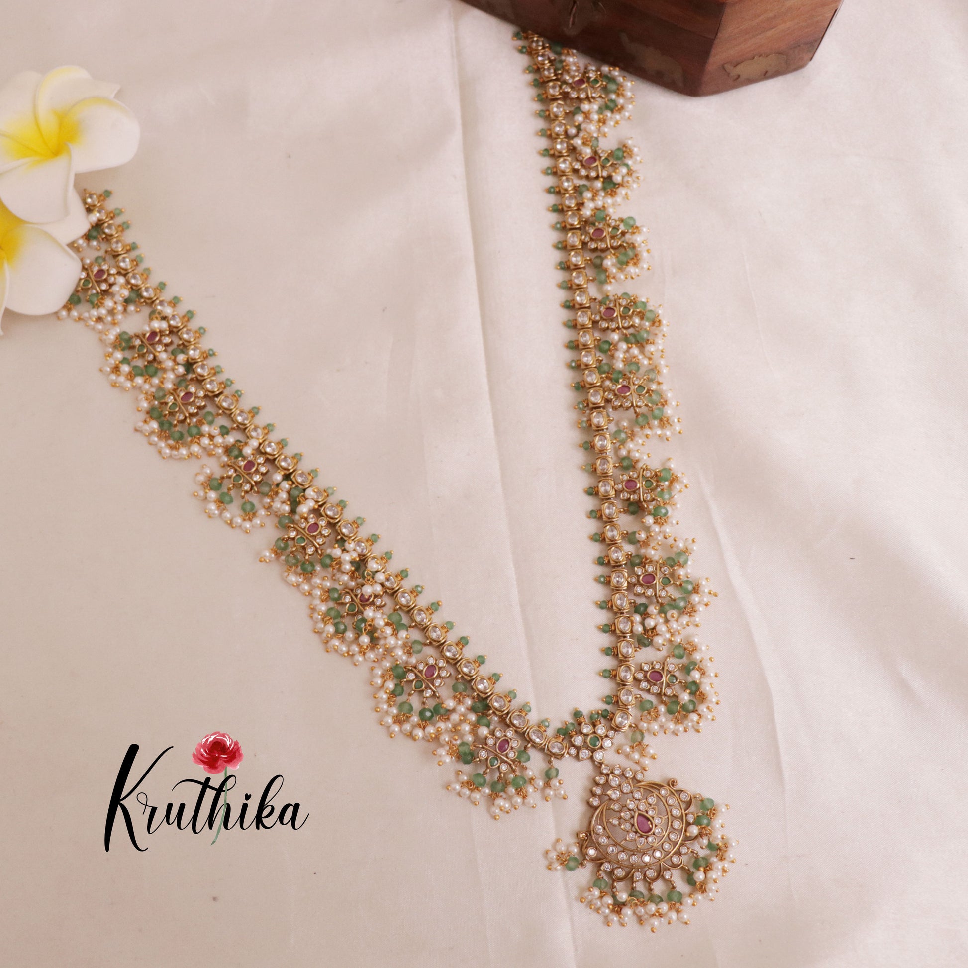Elegant Victorian AD Stones Guttaposalu Harram with Pastel Green Beads Drops LH1858