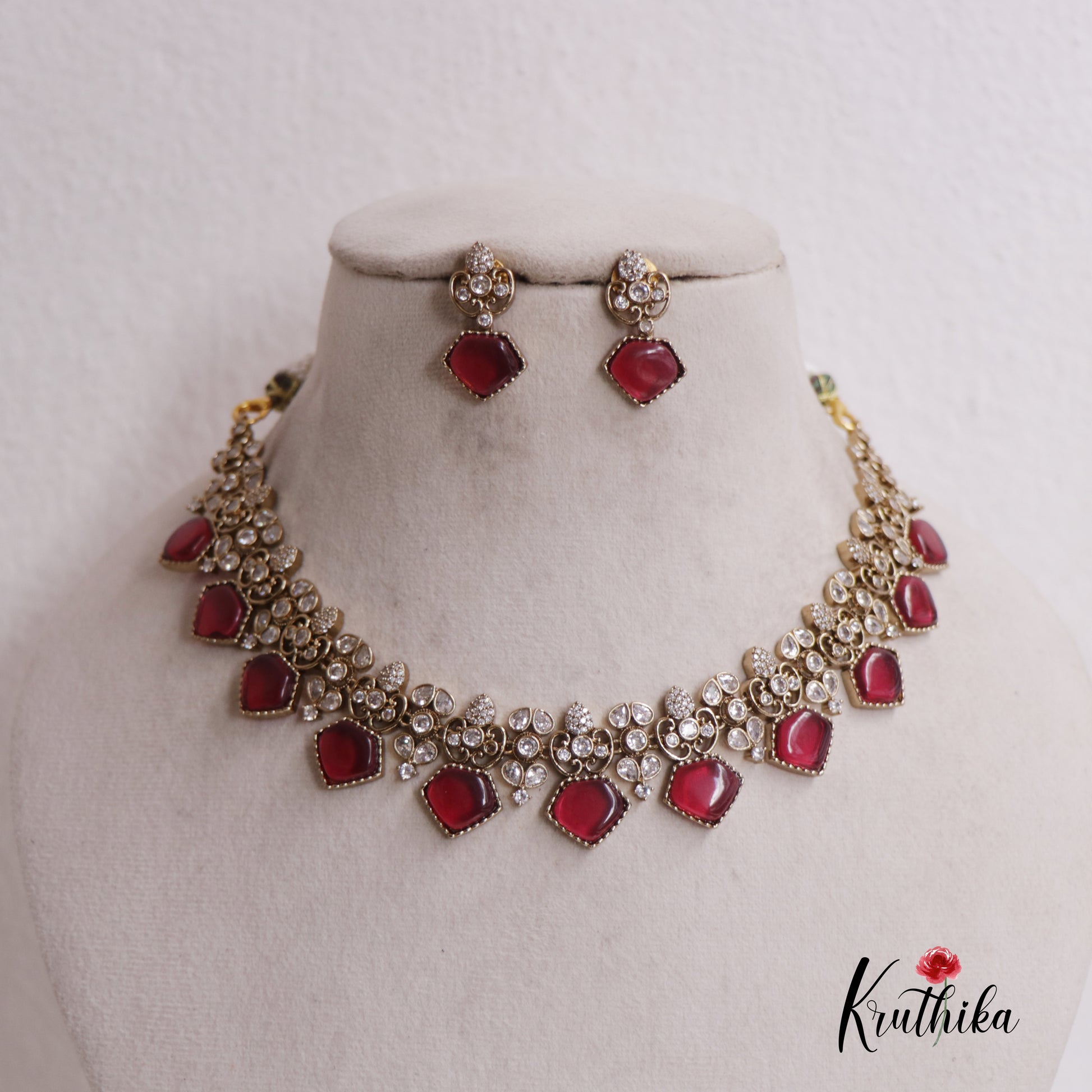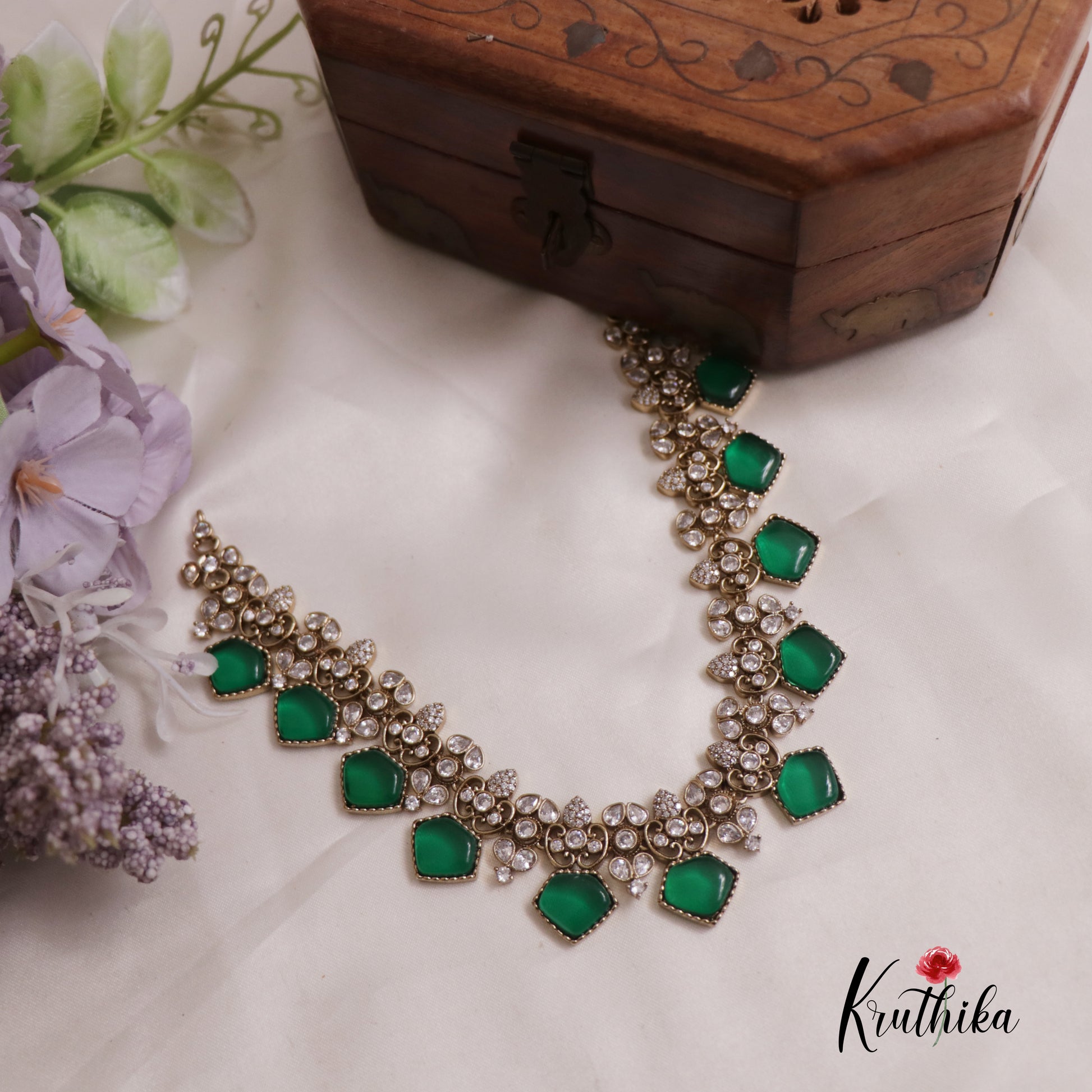 A breathtaking tribute to antique artistry, where tradition meets a bold geometric soul. This masterpiece showcases sculpted emerald-hued stones nestled within a delicate vine of brilliant-cut accents. The vintage gold finish lends a sense of stolen from history charm, making it the definitive statement piece for your next marriage or festive celebration.