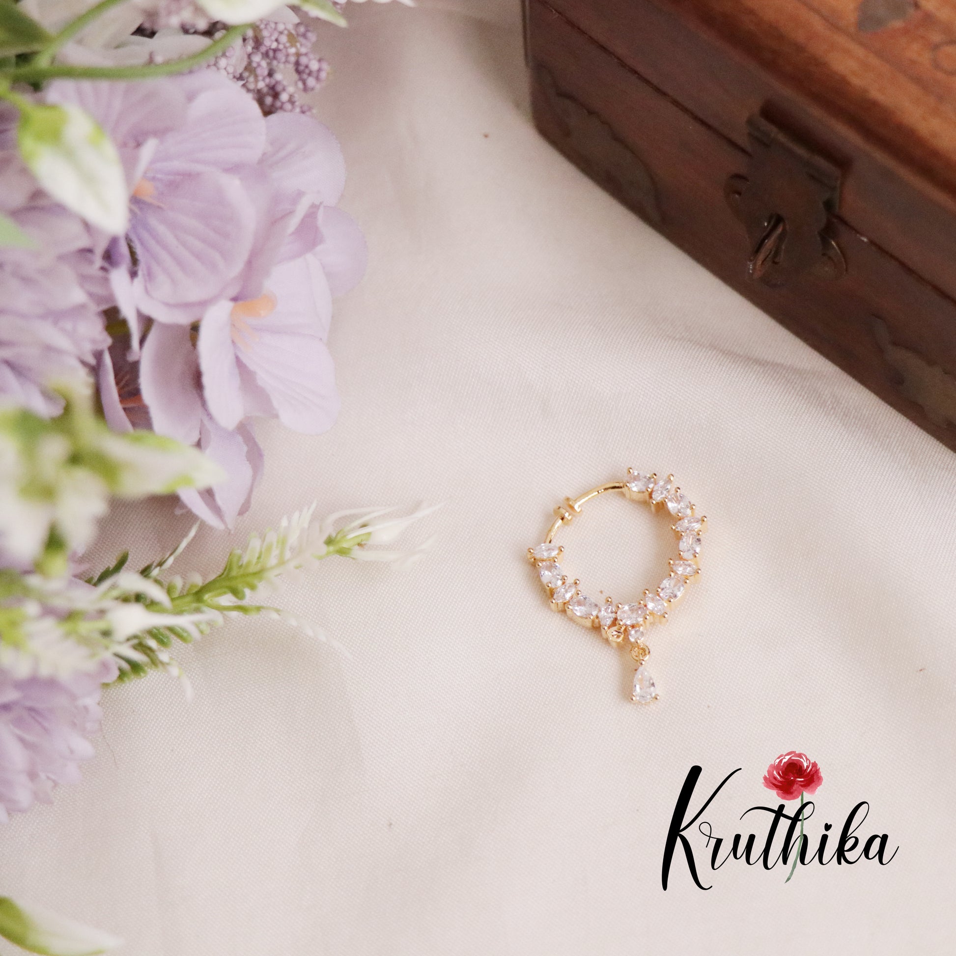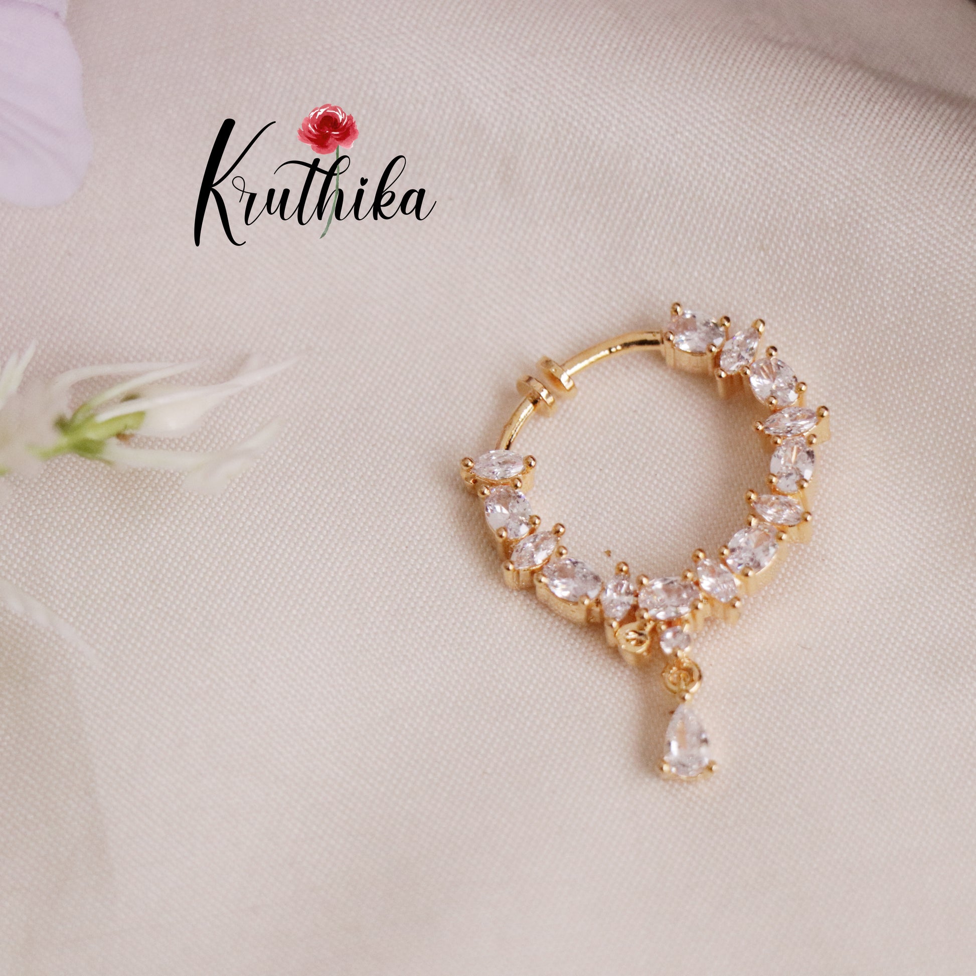 A traditional nose ring, or Nath, with a screw design combines cultural elegance with contemporary convenience. Crafted from high-quality metal, it features intricate detailing, often adorned with CZ stones or filigree patterns. The screw mechanism ensures a secure fit, making it easy to wear while adding a timeless charm to any look. Perfect for festive occasions or everyday elegance, this piece embodies tradition and style.