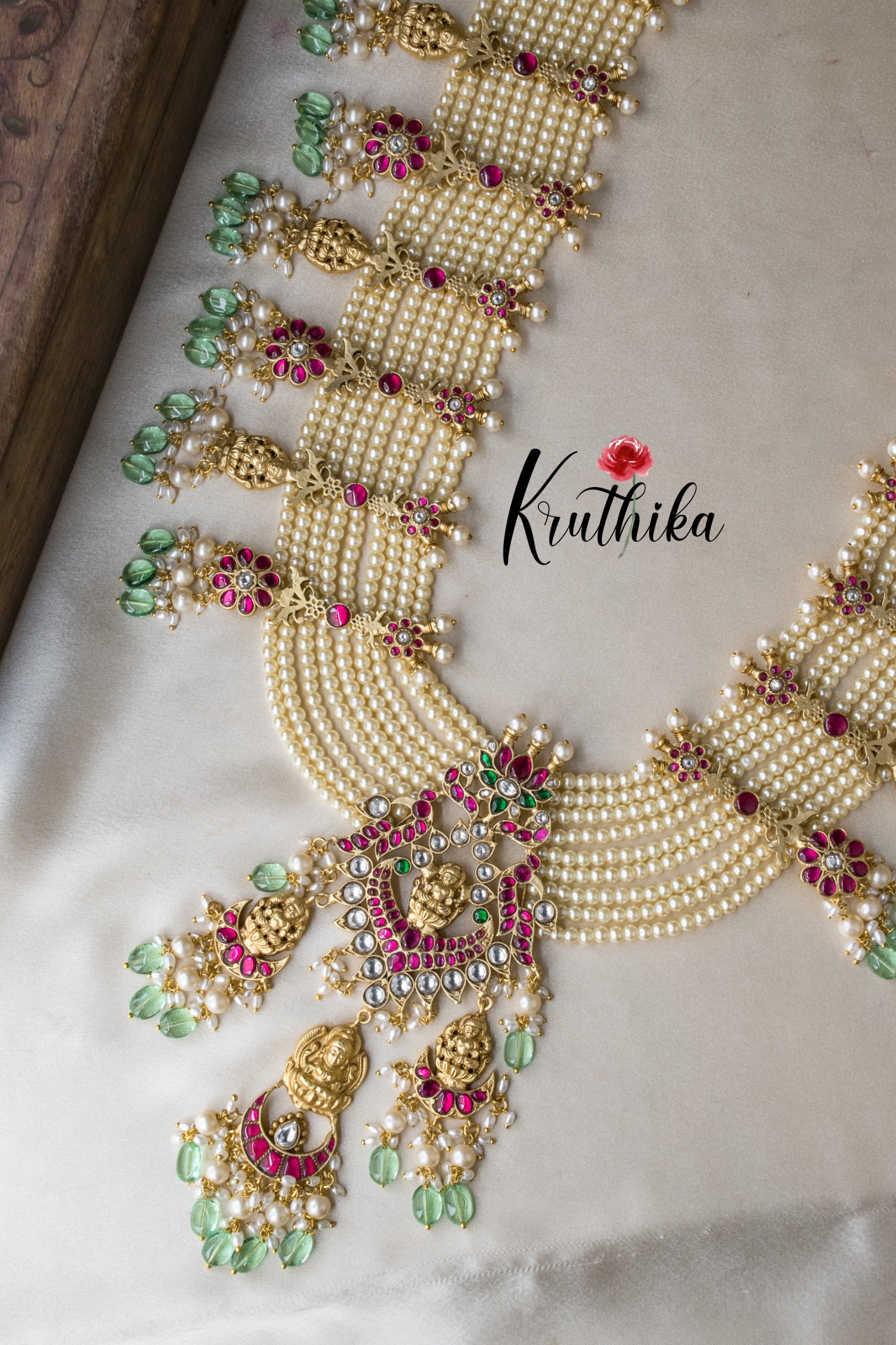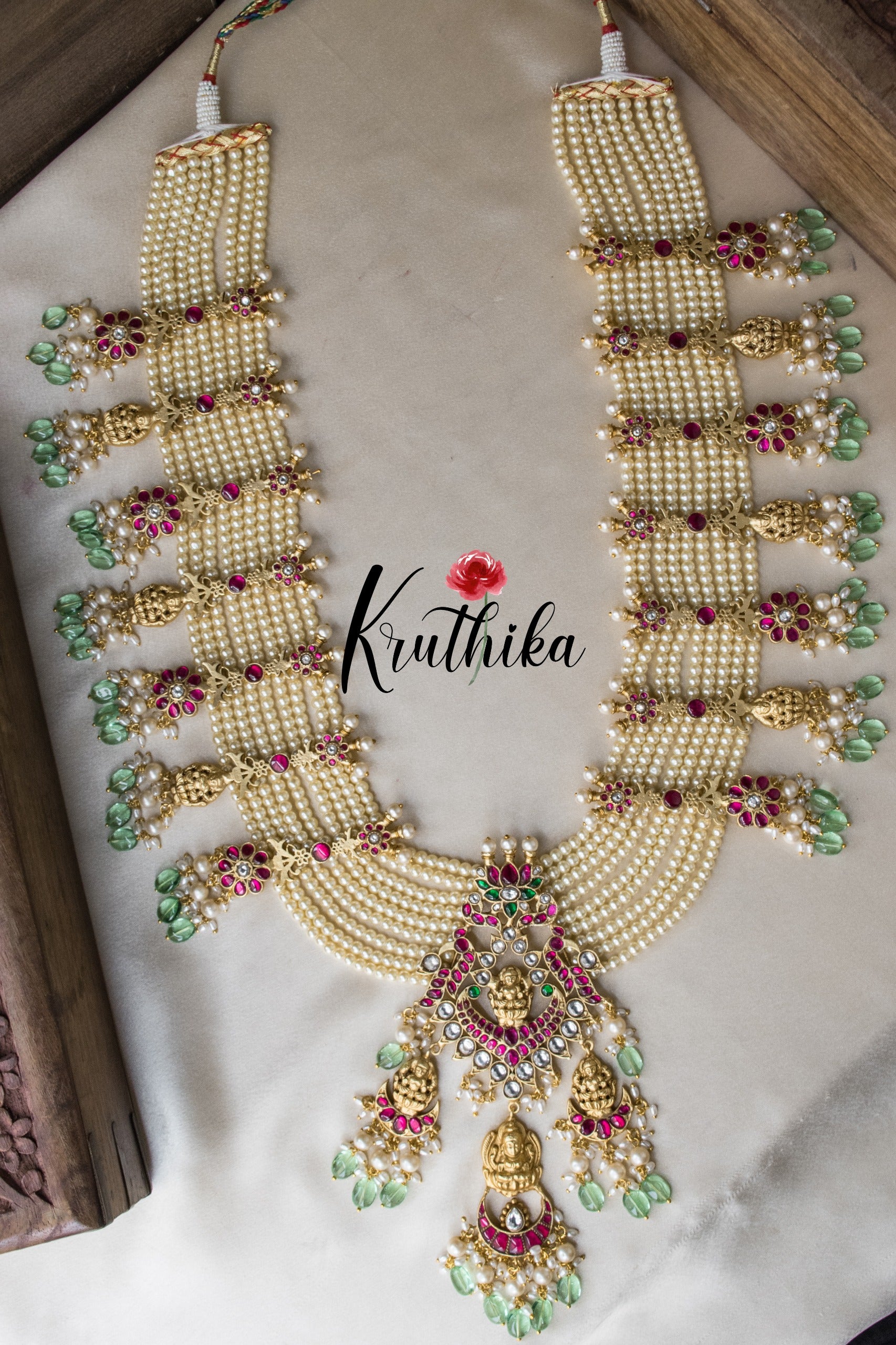 Enhance your style with our stunning Exquisite Antique Jadau Long Haaram, paired perfectly with matching earrings. Crafted with high-quality stones & beads, this set combines timeless elegance with a modern touch. Ideal for special occasions or adding a touch of glamour to your look.