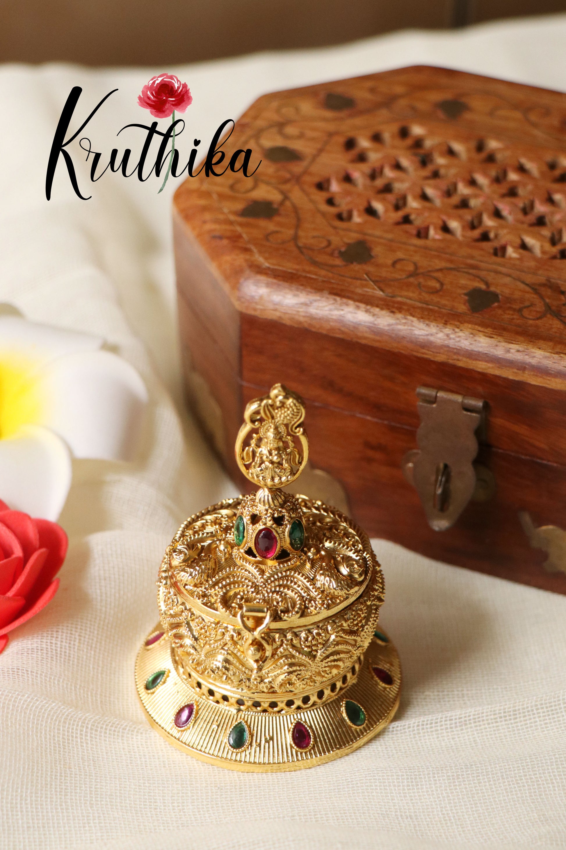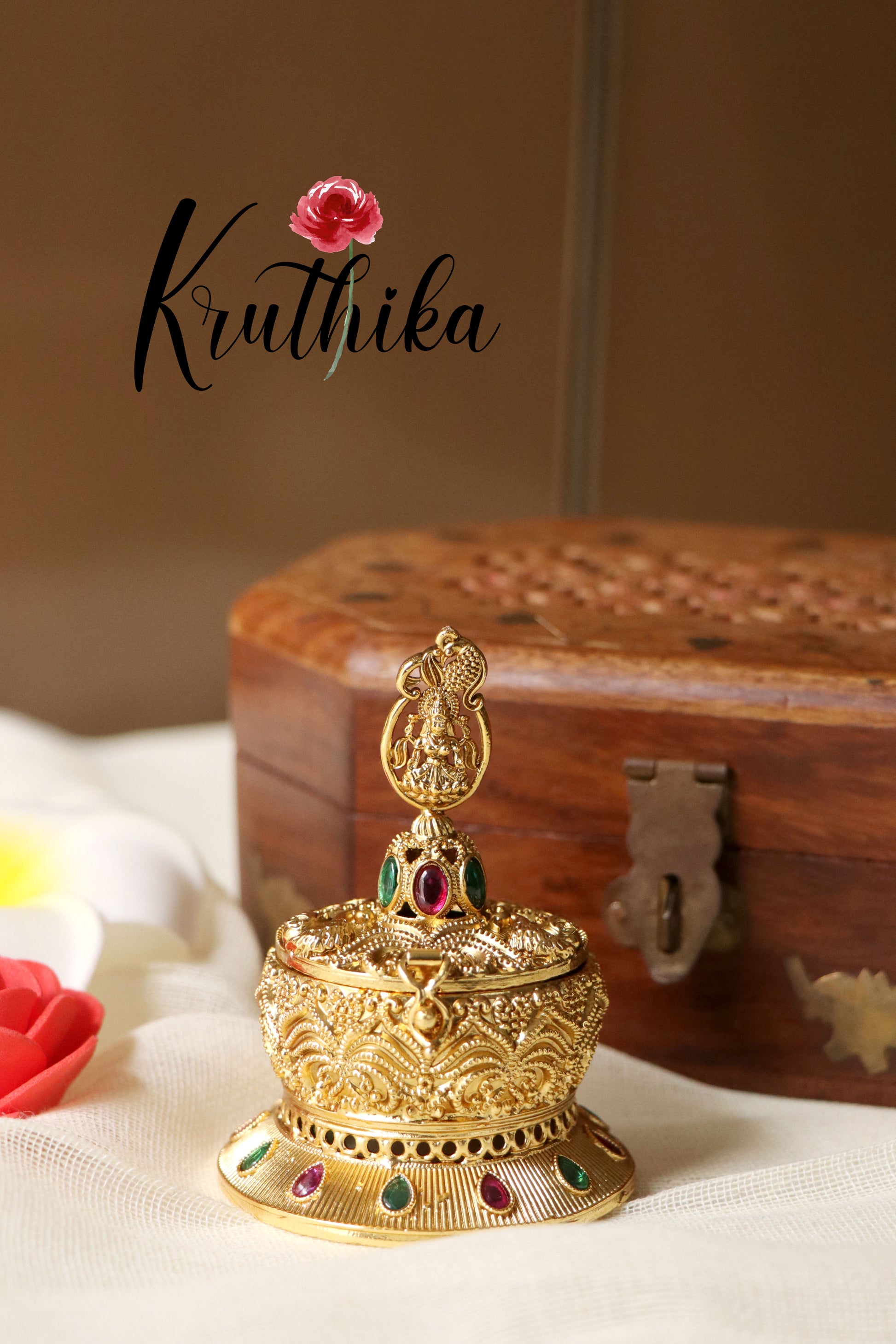 Store your essentials in style with our exquisite Kukum Boxes. Perfect for holding kumkum, bindi, or other small items, these boxes blend traditional charm with practical design, making them a beautiful addition to your vanity or puja space.