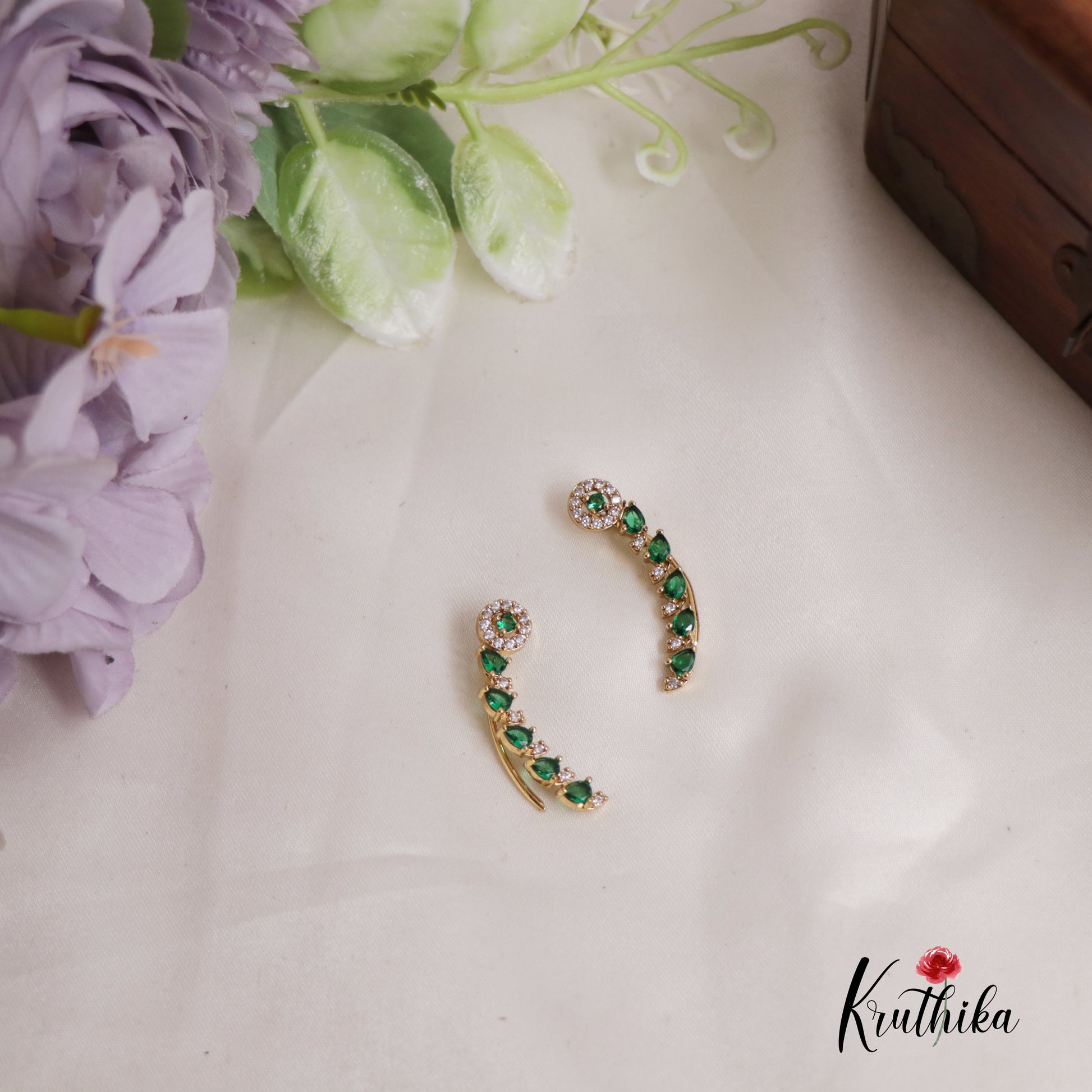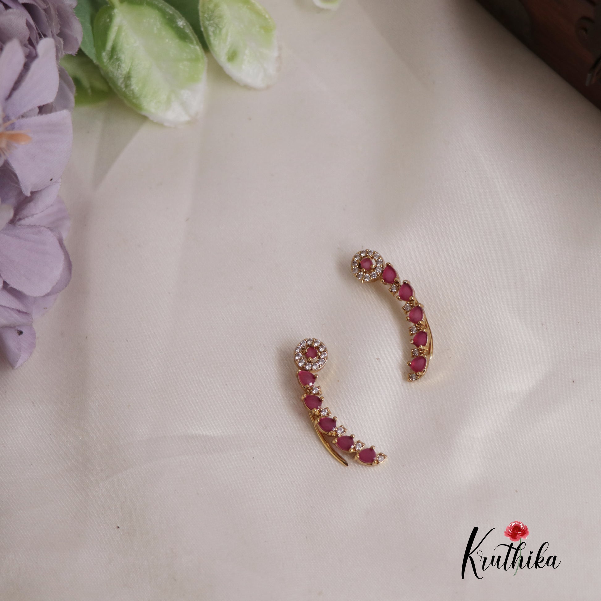 A sophisticated fusion of celestial charm and traditional artistry, these curated ear Climbers are designed to trace the natural contour of the ear with effortless grace. Each piece features a radiant stellar motif encrusted with brilliant white zirconias, transitioning into a sweeping arc of vivid. Offering a timeless look for your most celebrated marriage, ceremonies and special occasions.