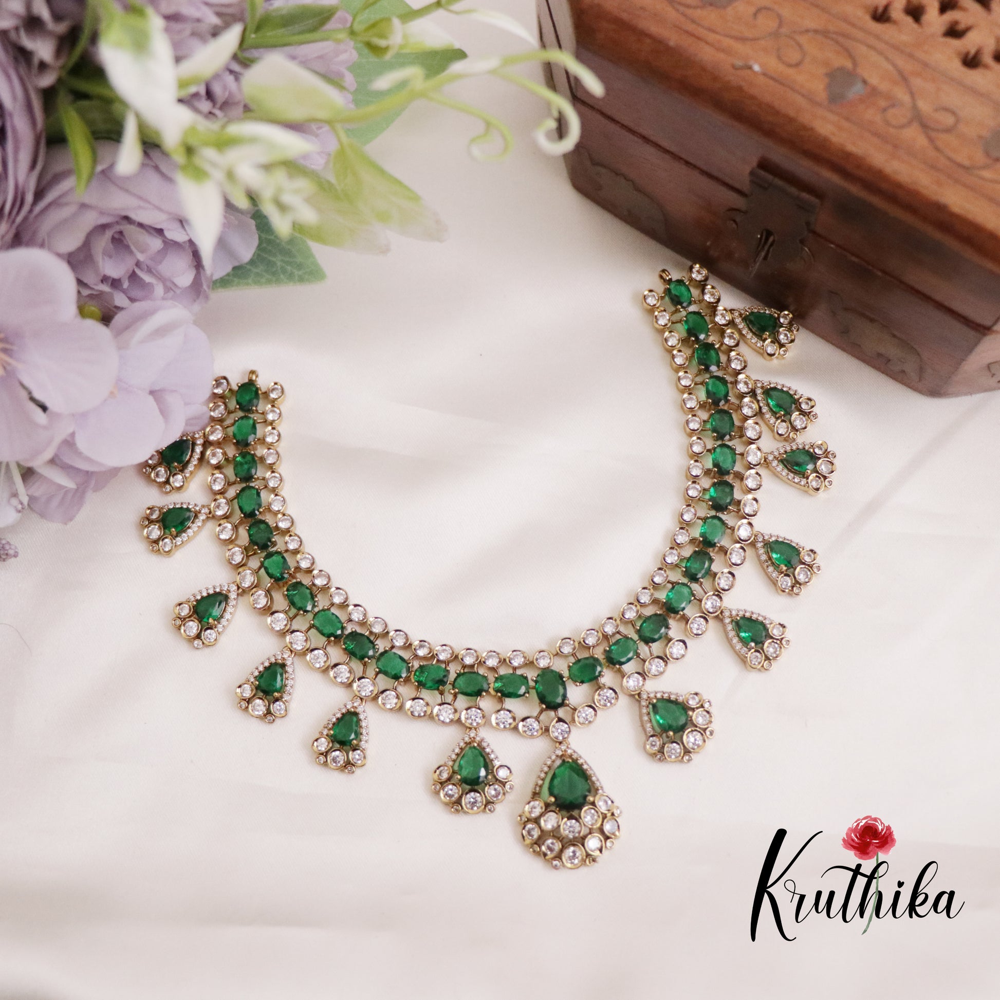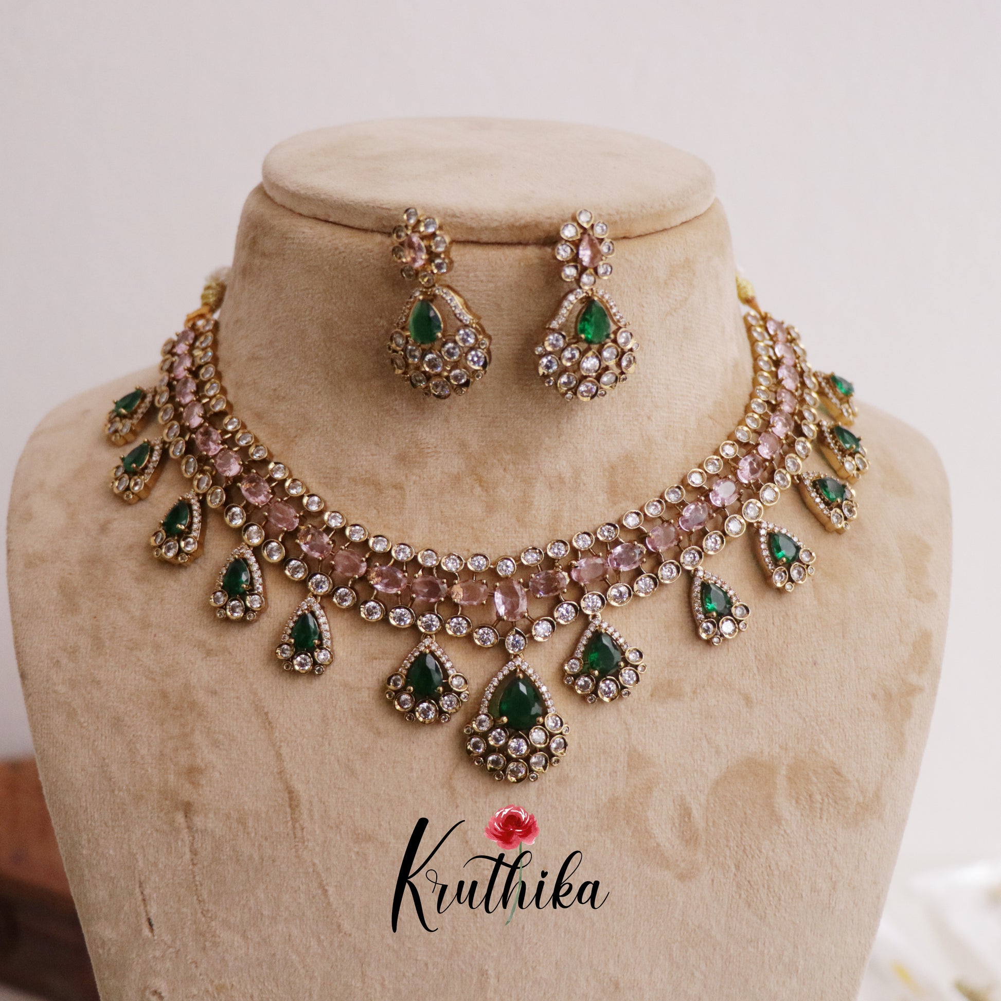 Enhance your style with our stunning, Gorgeous AD Victorian Necklace with Teardrop Pendant Drop Crafted with high-quality stones & beads, this set combines timeless elegance with a modern touch. Ideal for special occasions or adding a touch of glamour to your look.