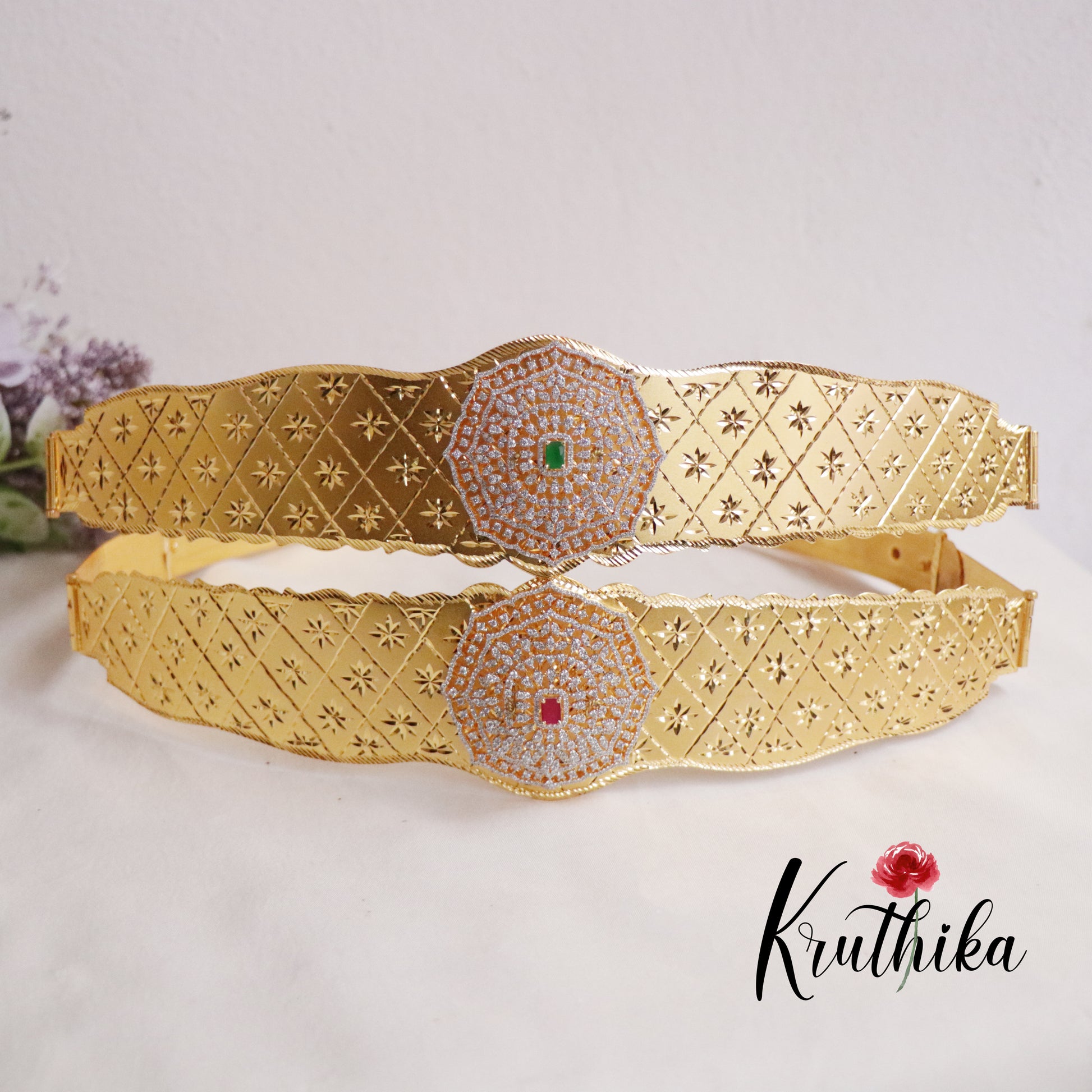 Elevate your traditional ensemble with the Gorgeous CZ Celestial Bloom Vaddanam V264, expertly crafted to blend celestial motifs with timeless elegance. Adorned with sparkling cubic zirconia stones, this vaddanam radiates refined brilliance, enhancing your waistline with a delicate floral-inspired design. Available in two stunning colors, it offers versatile styling options to complement a variety of sarees and festive occasions. Perfect for those seeking sophisticated craftsmanship paired with dazzling glamour.