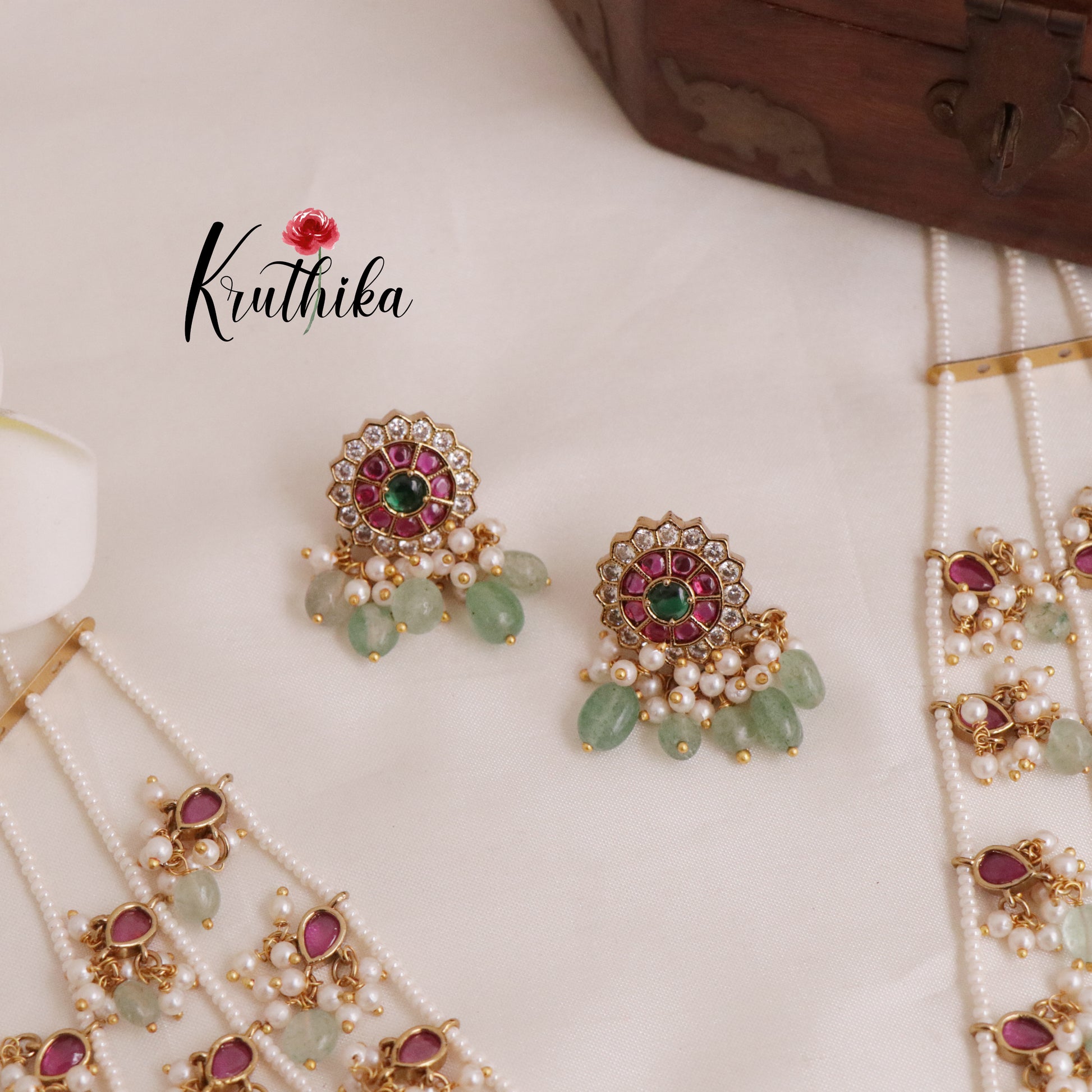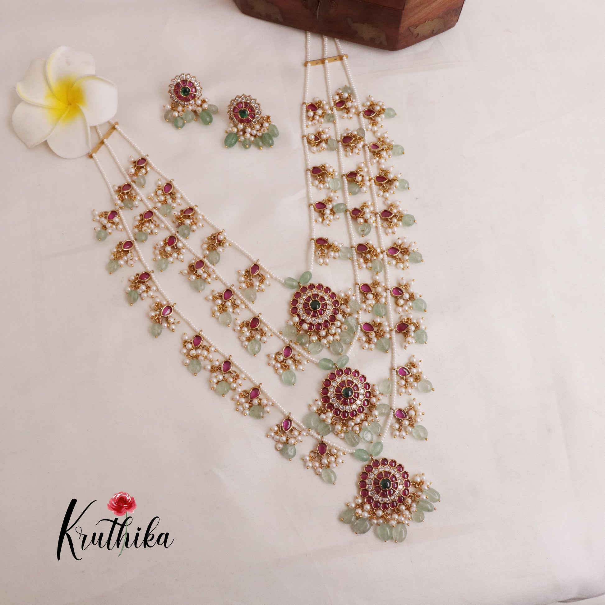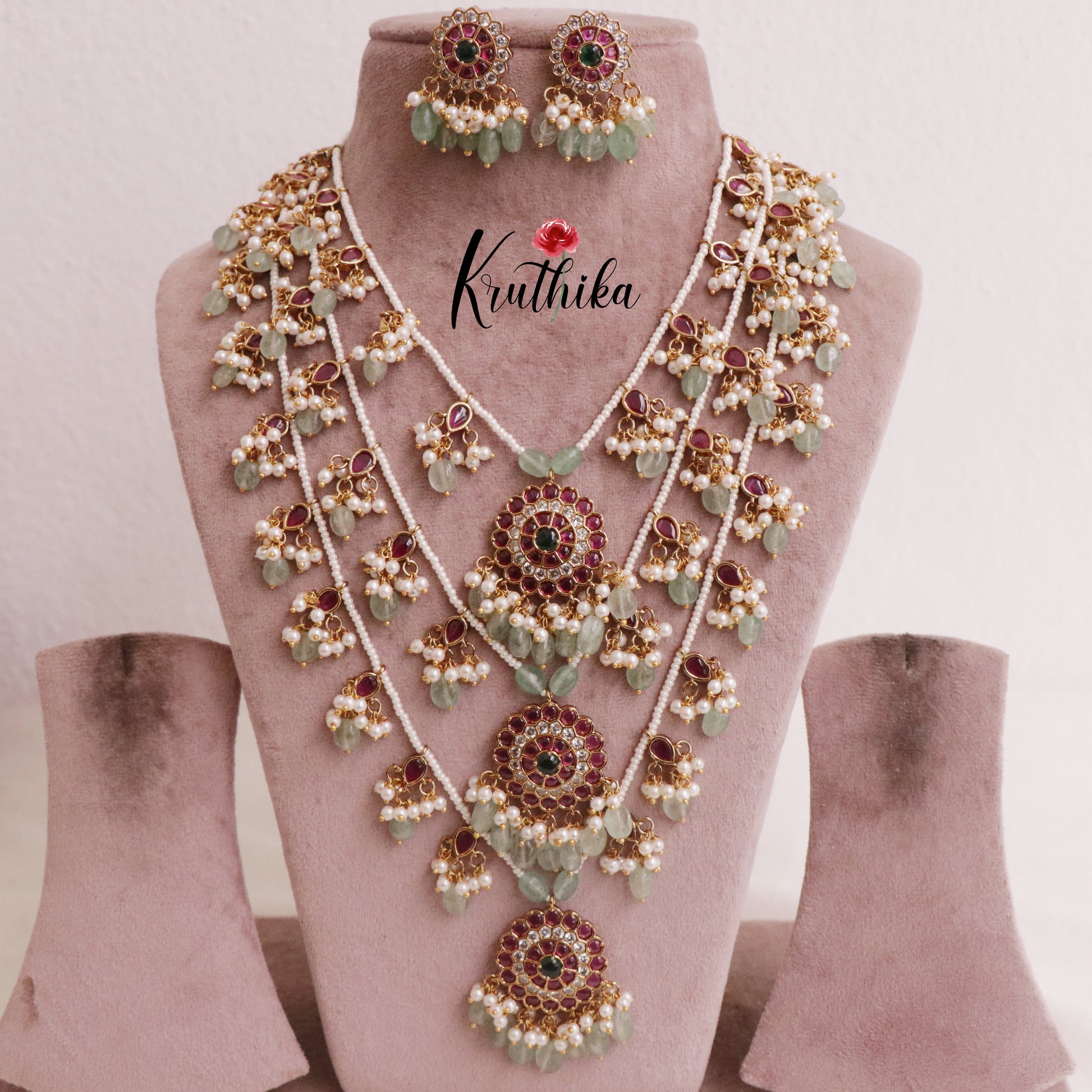 Enhance your style with our stunning, Gorgeous Multi Stone Three Layer Necklace with Pastel Green Beads. paired perfectly with matching earrings. Crafted with high-quality stones & beads, this set combines timeless elegance with a modern touch. Ideal for special occasions or adding a touch of glamour to your look.