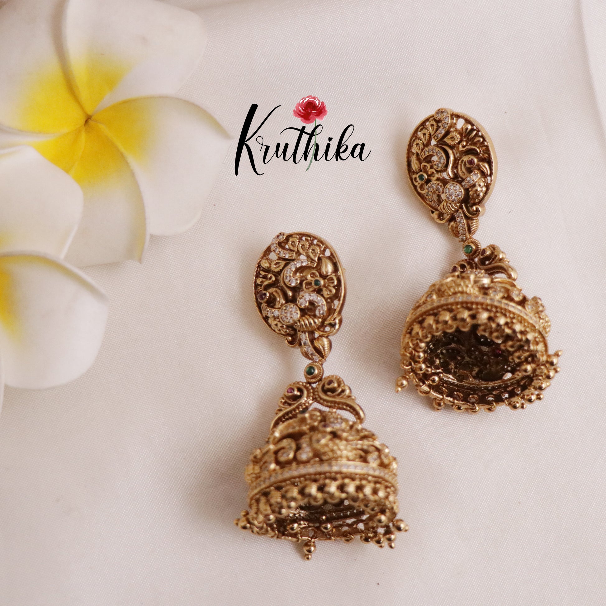 Elevate your elegance with our Gorgeous Peacock Design Jhumkas with Golden Beads designed to capture the essence of traditional beauty and grace. Perfectly crafted to complement both festive and bridal outfits, these earrings are a must-have for any jewellery collection.