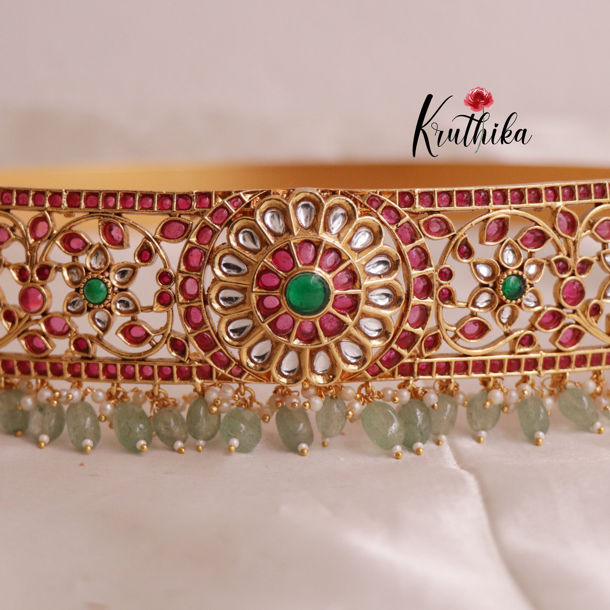 ● Adjustable Fit: Designed for comfort and flexibility, ensuring a secure and flattering fit around the waist. Elevate your look with these and embrace the timeless beauty Grand Flower kempu Hip belt with pastel green of traditional craftsmanship.