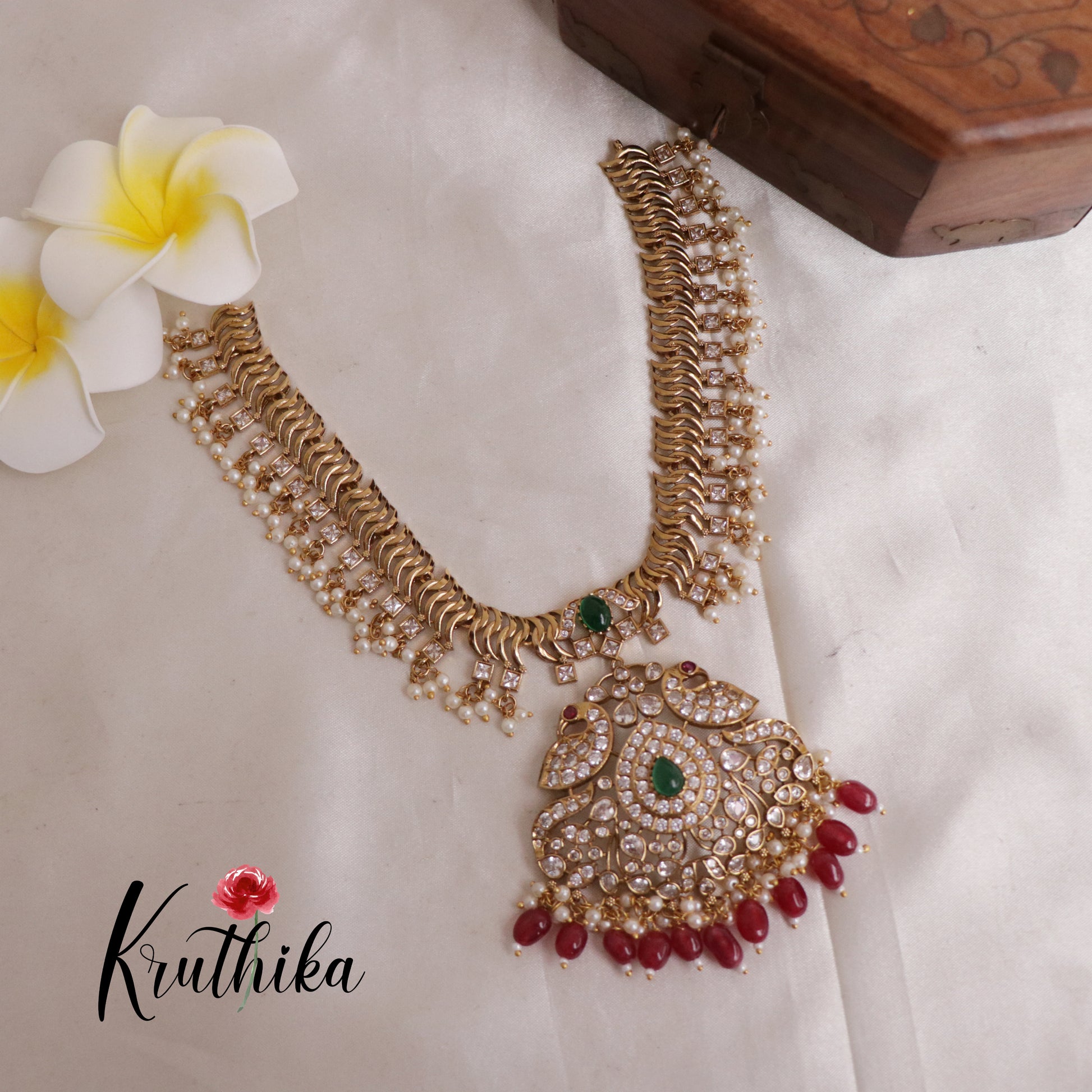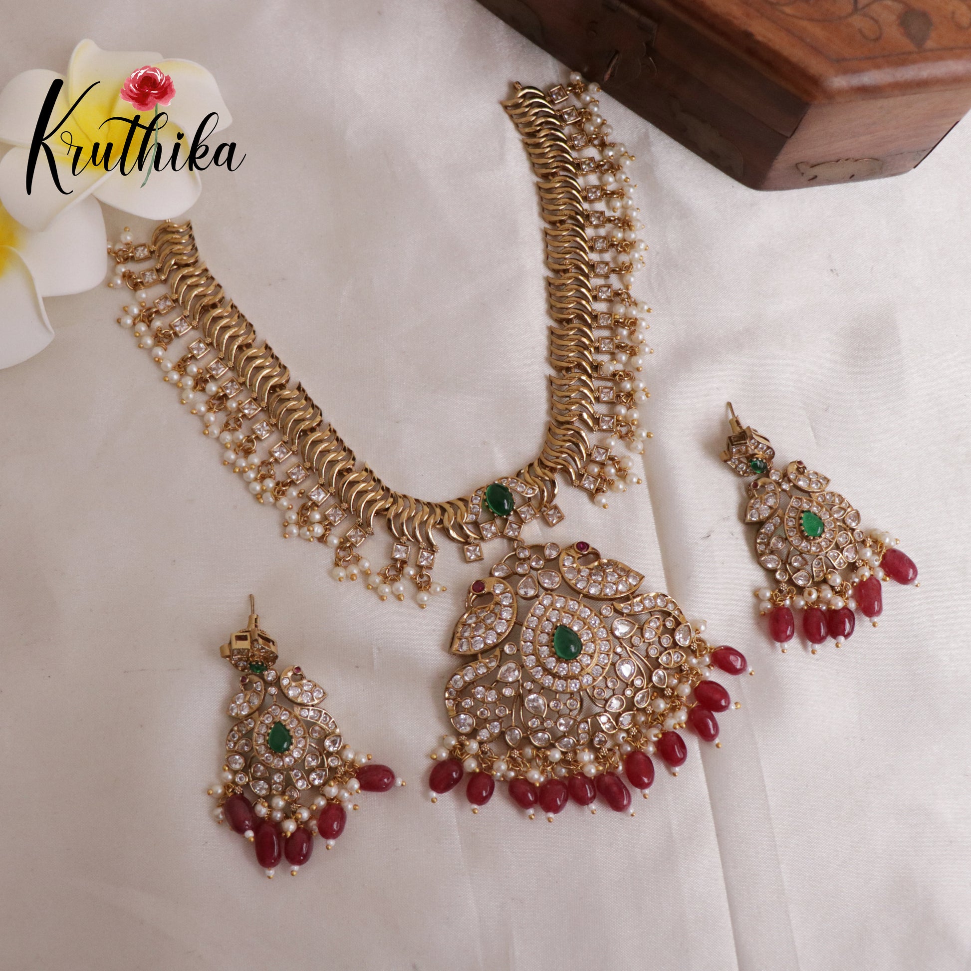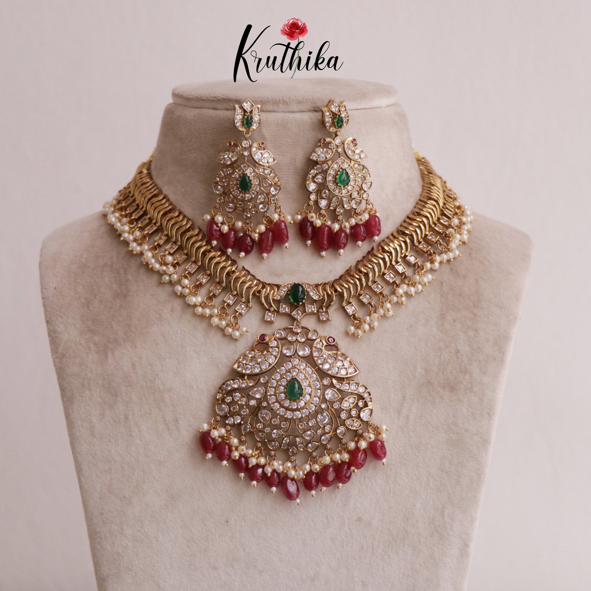 Enhance your style with our stunning, Grand Precook jadau Necklace, paired perfectly with matching earrings. Crafted with high-quality stones & beads, this set combines timeless elegance with a modern touch. Ideal for special occasions or adding a touch of glamour to your look.