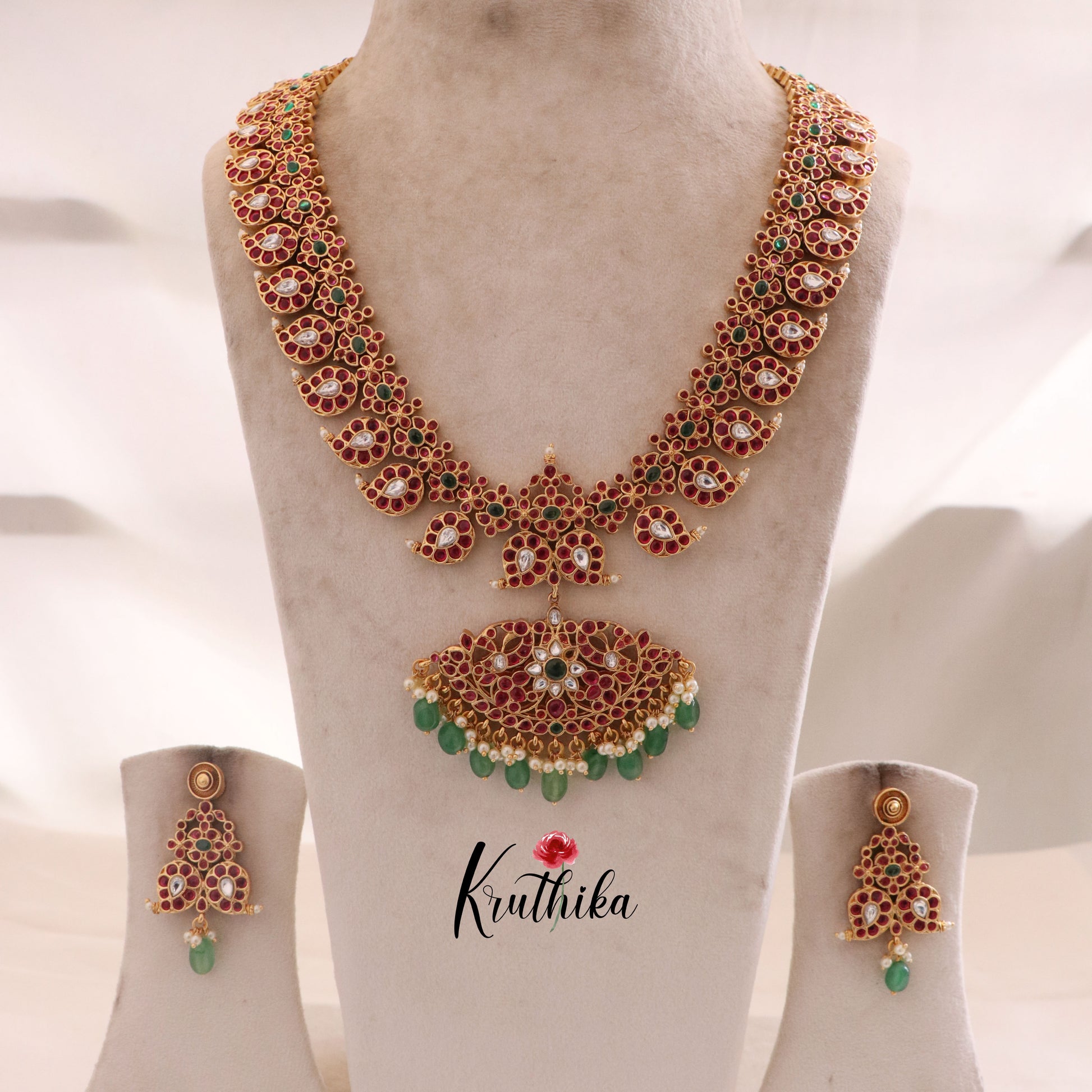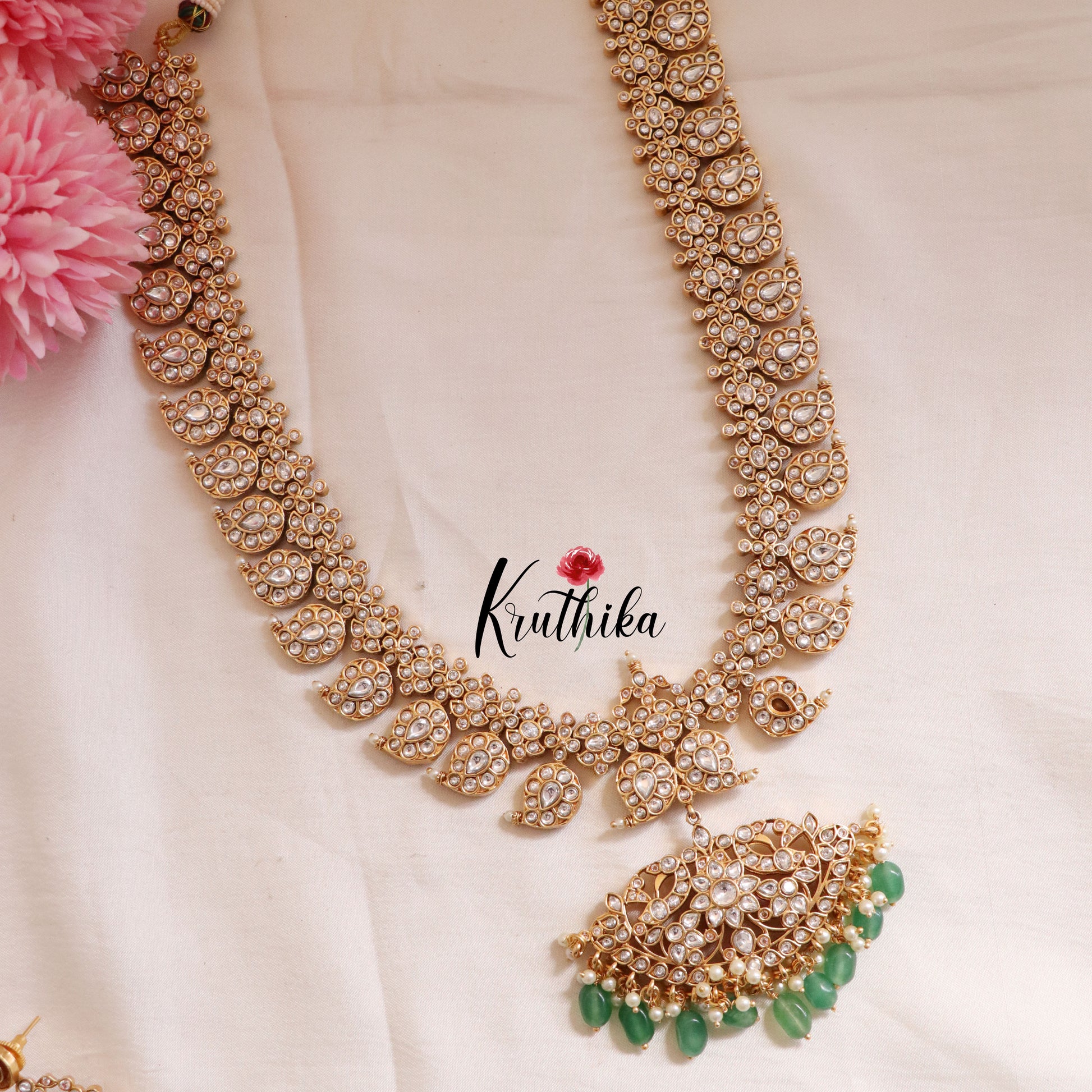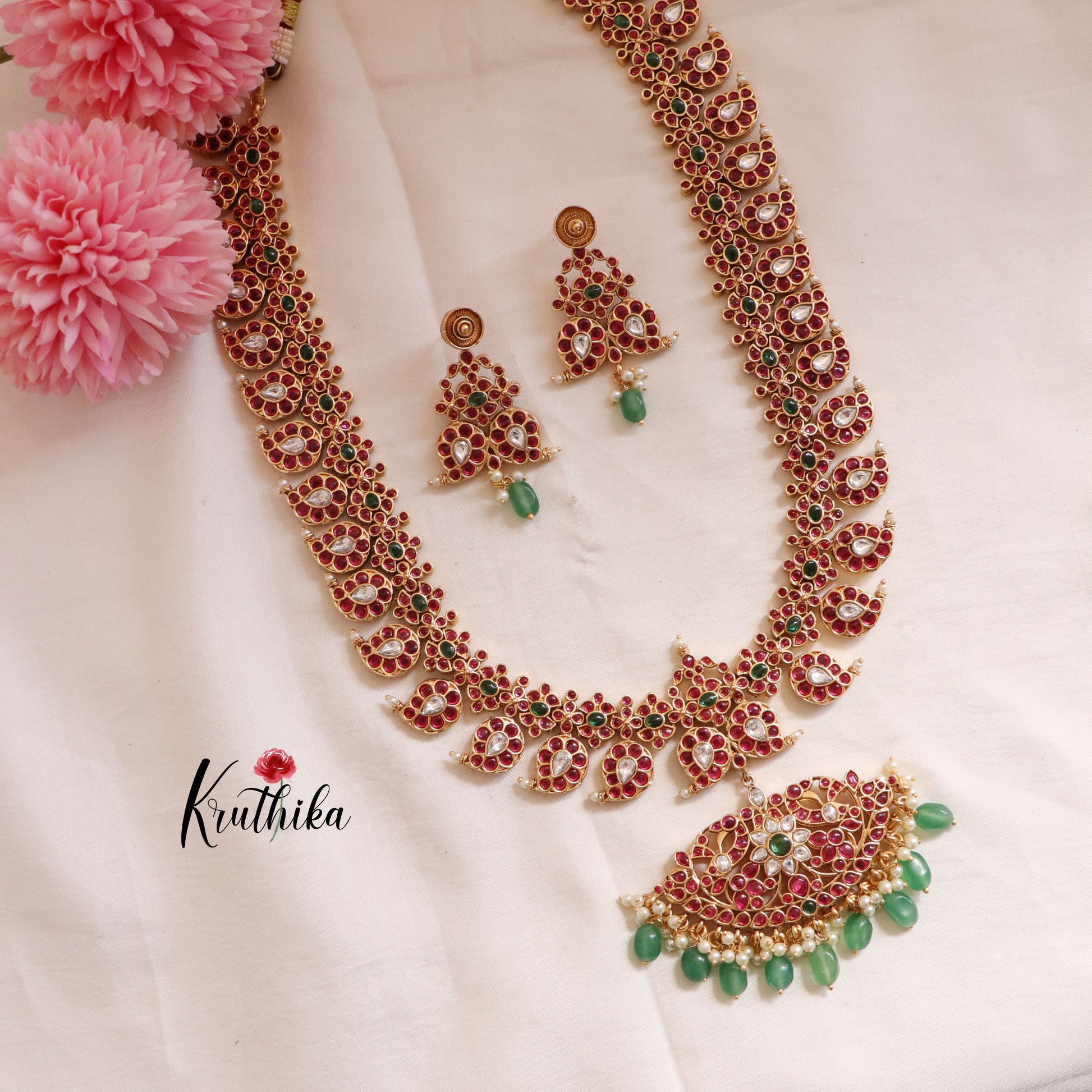 Pre order-Grand Premium Mango Kemp 2 in 1 Reversible haaram -Green Beads LH715- 15 to 20 days