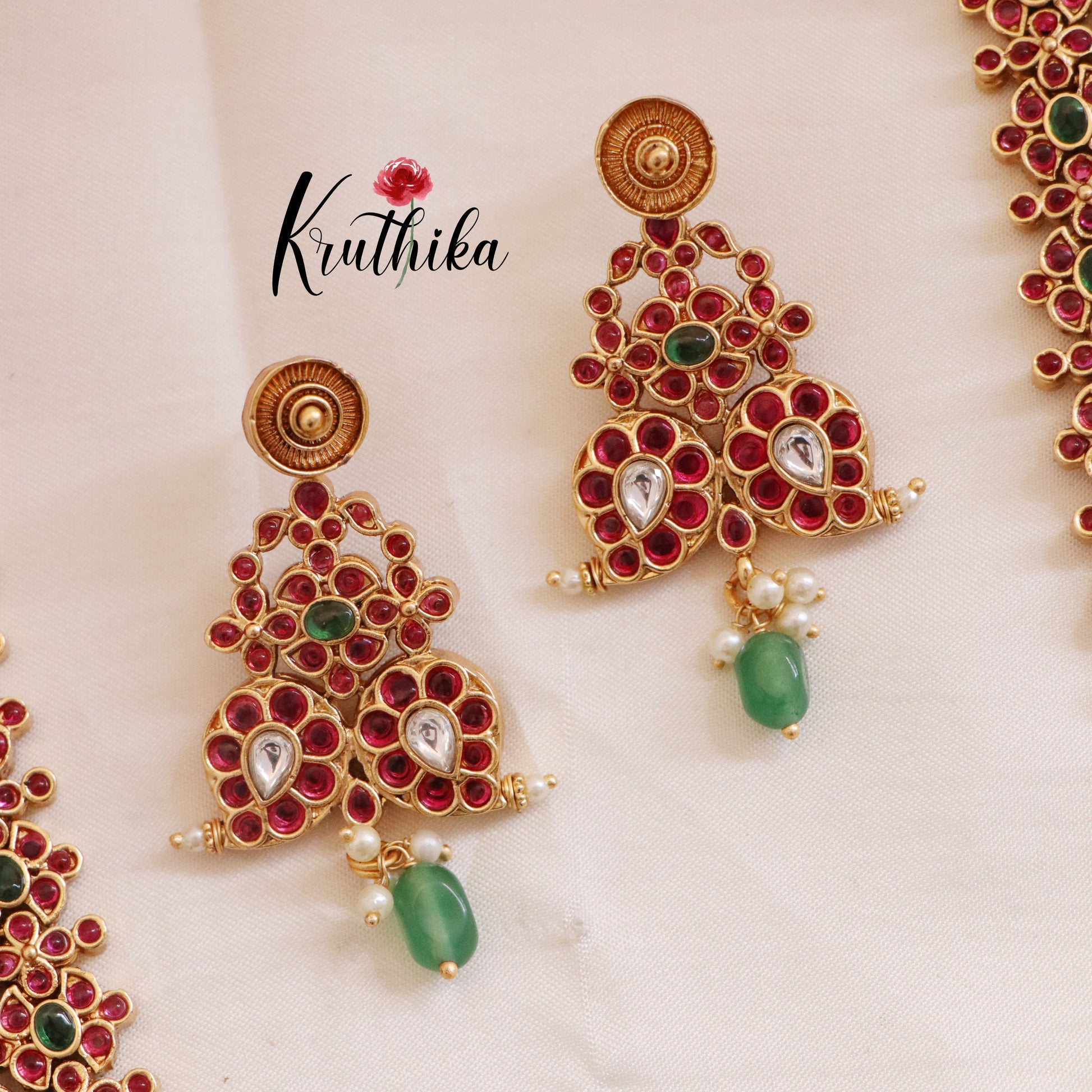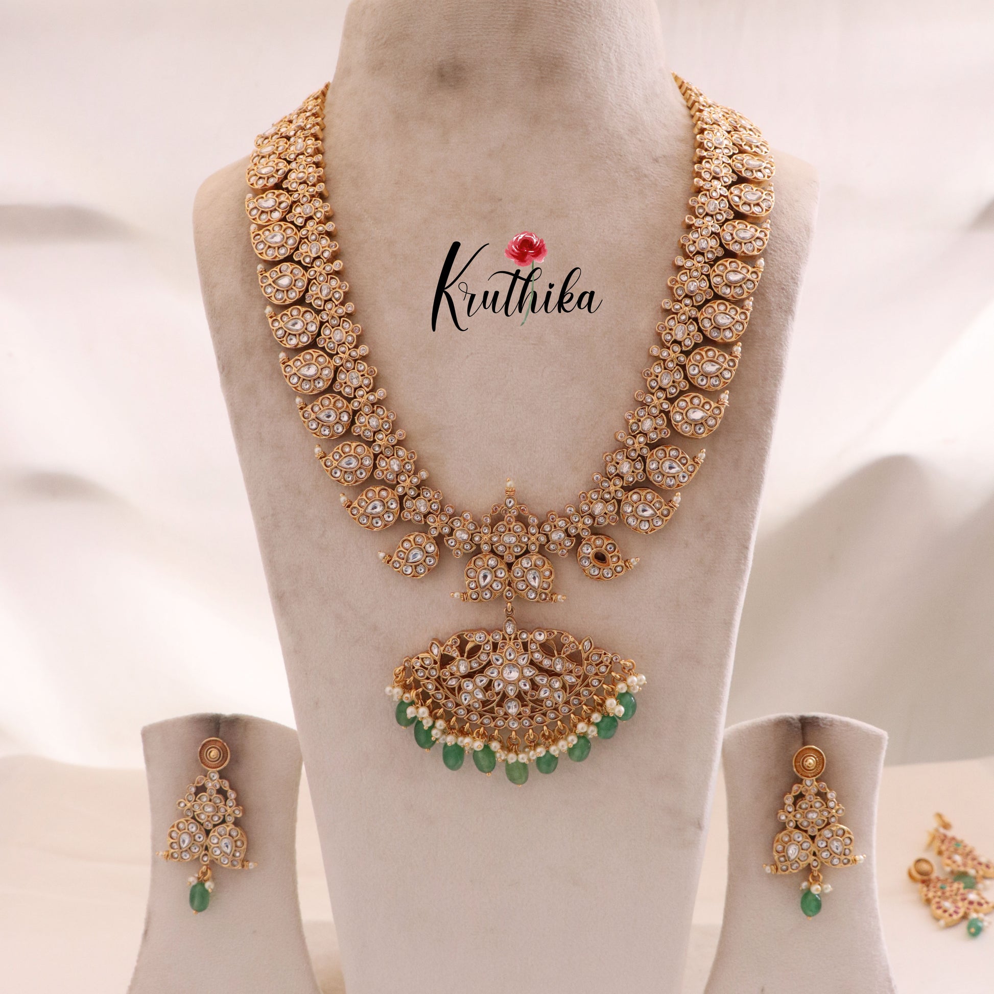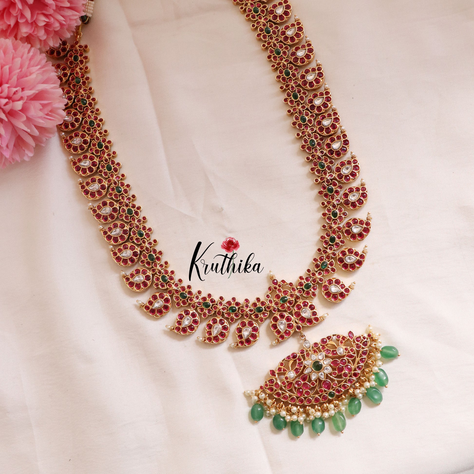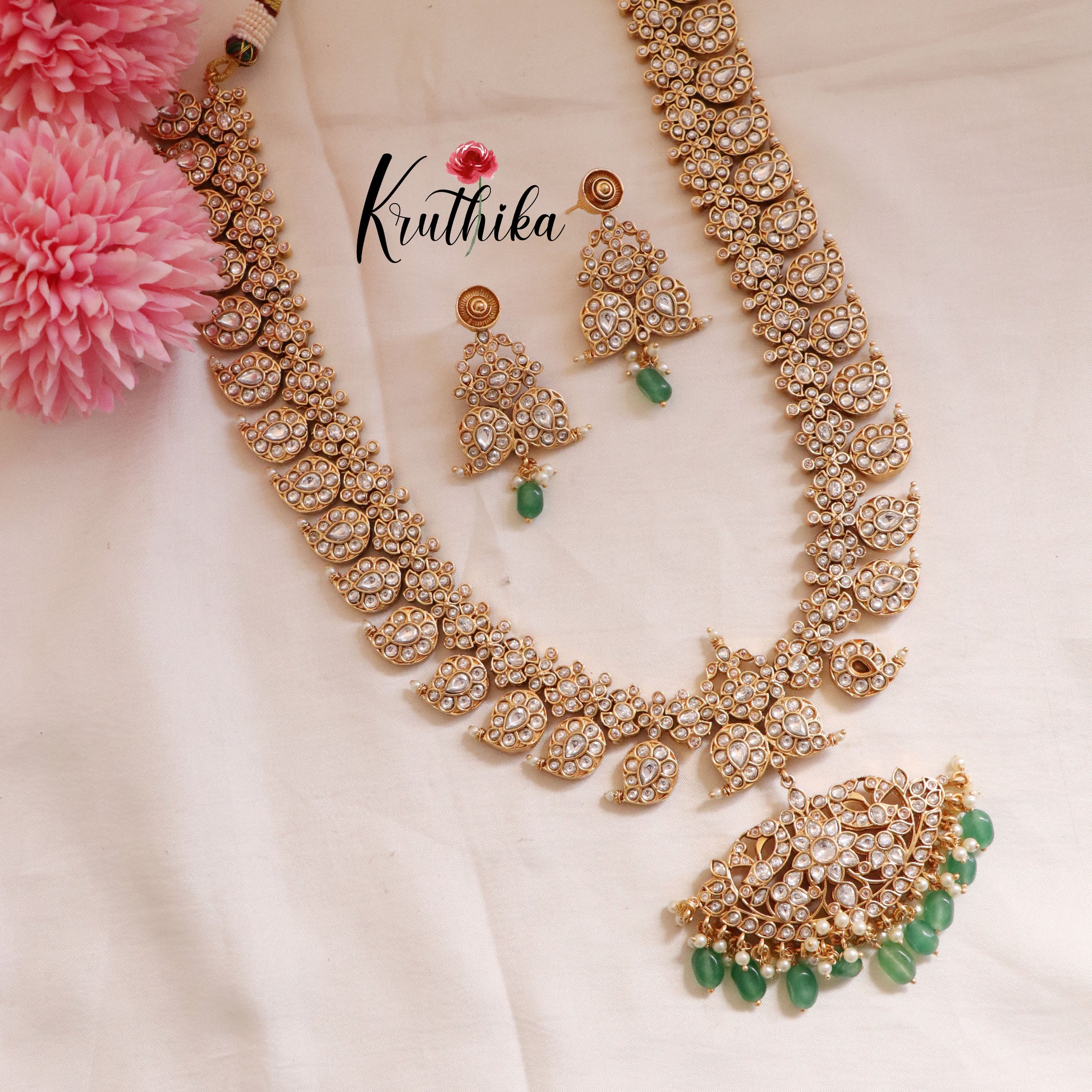 Pre order-Grand Premium Mango Kemp 2 in 1 Reversible haaram -Green Beads LH715- 15 to 20 days