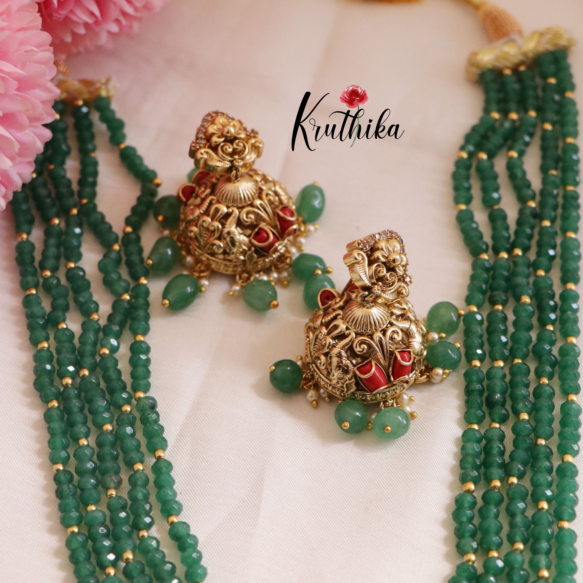 Grand Premium crystal Beads Lakshmi Peacock Haaram with Corals LH721