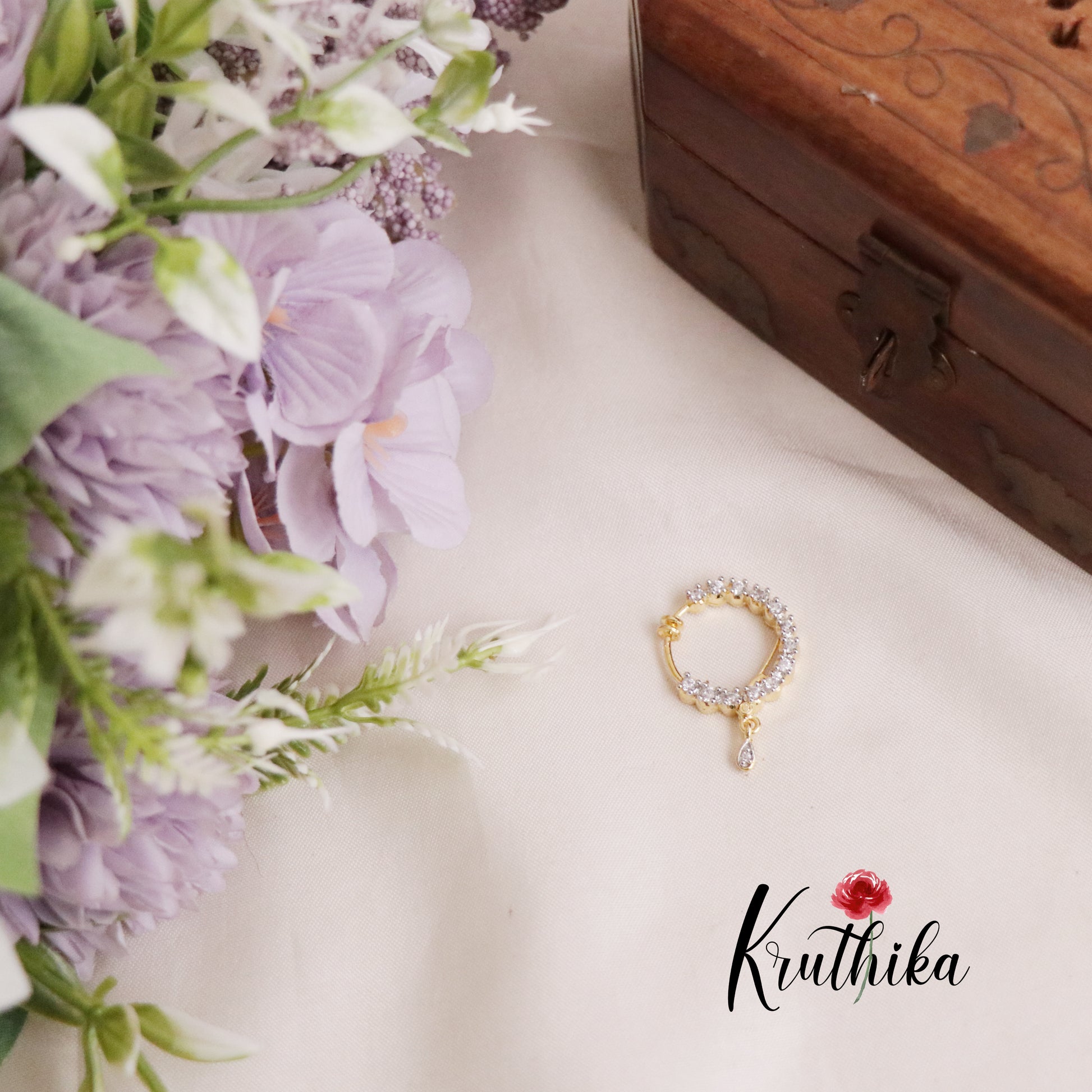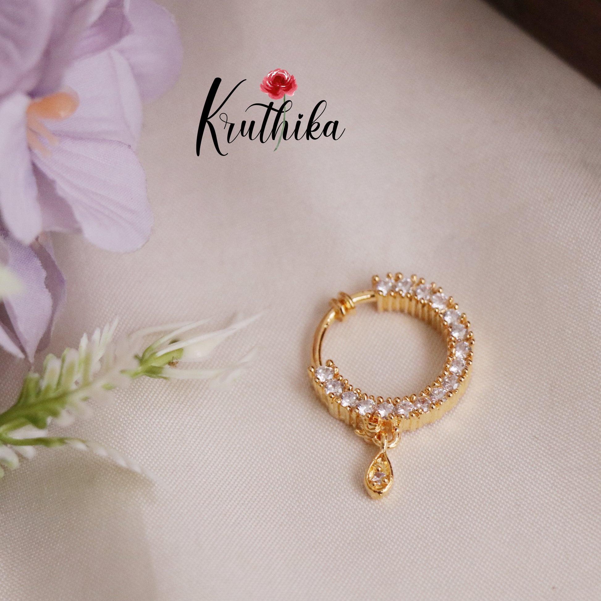 A traditional nose ring, or Nath, with a screw design combines cultural elegance with contemporary convenience. Crafted from high-quality metal, it features intricate detailing, often adorned with CZ stones or filigree patterns. The screw mechanism ensures a secure fit, making it easy to wear while adding a timeless charm to any look. Perfect for festive occasions or everyday elegance, this piece embodies tradition and style.